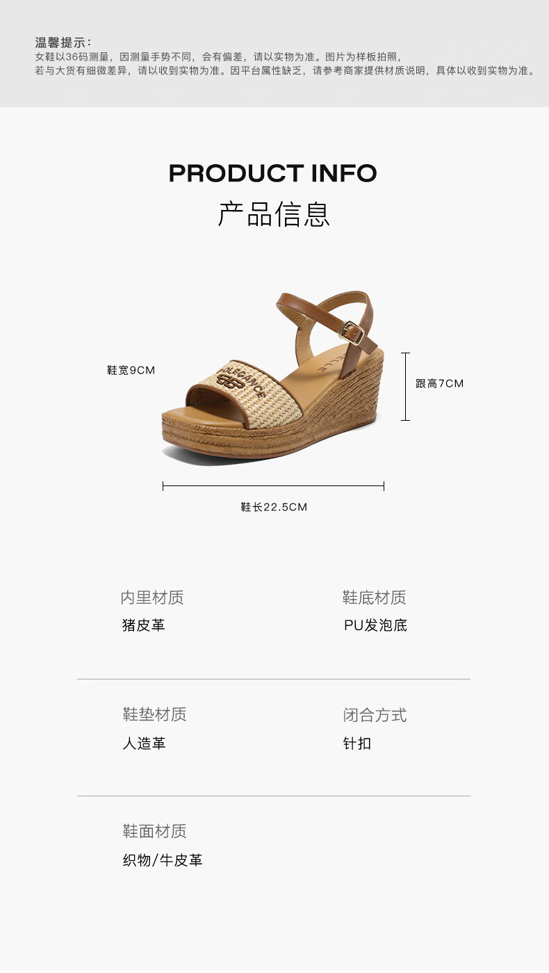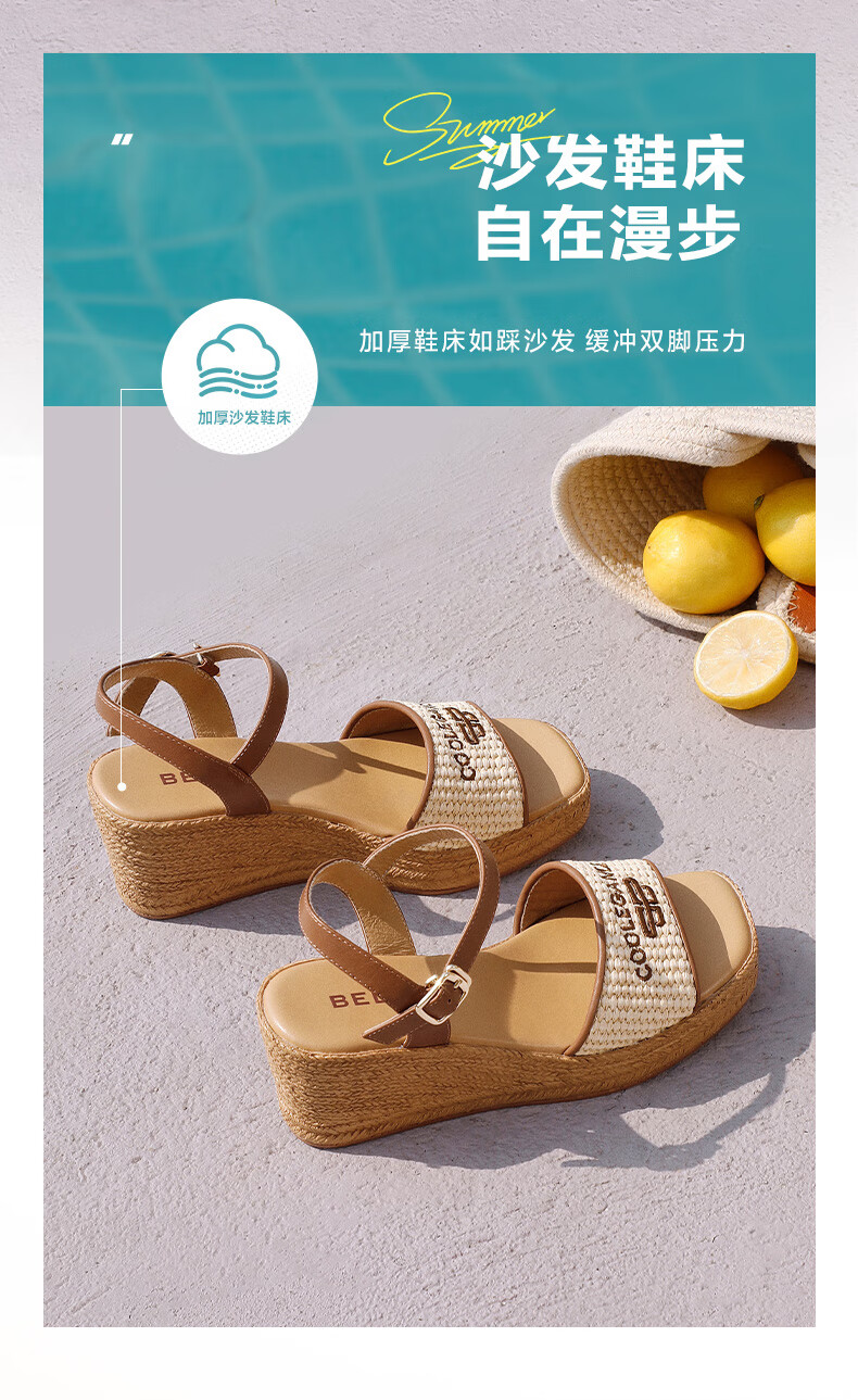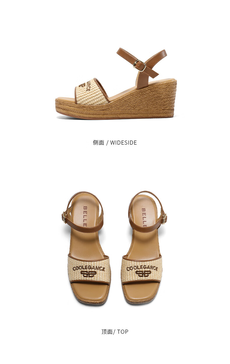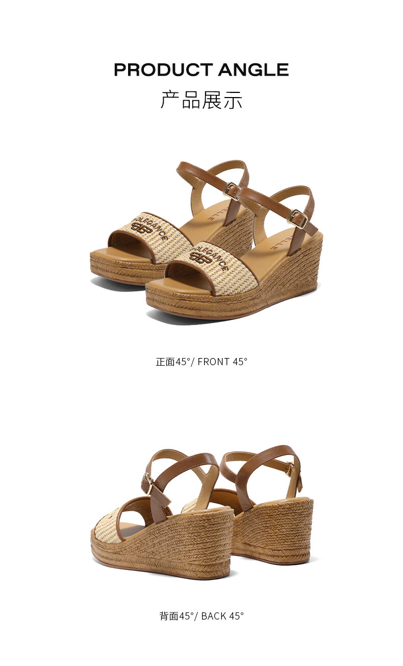 Belle Braided Resort Style Casual Sandals Women's Shopping Mall Thick-soled Wedge Sandals D6J1DBL5 Apricot 36 (230mm)