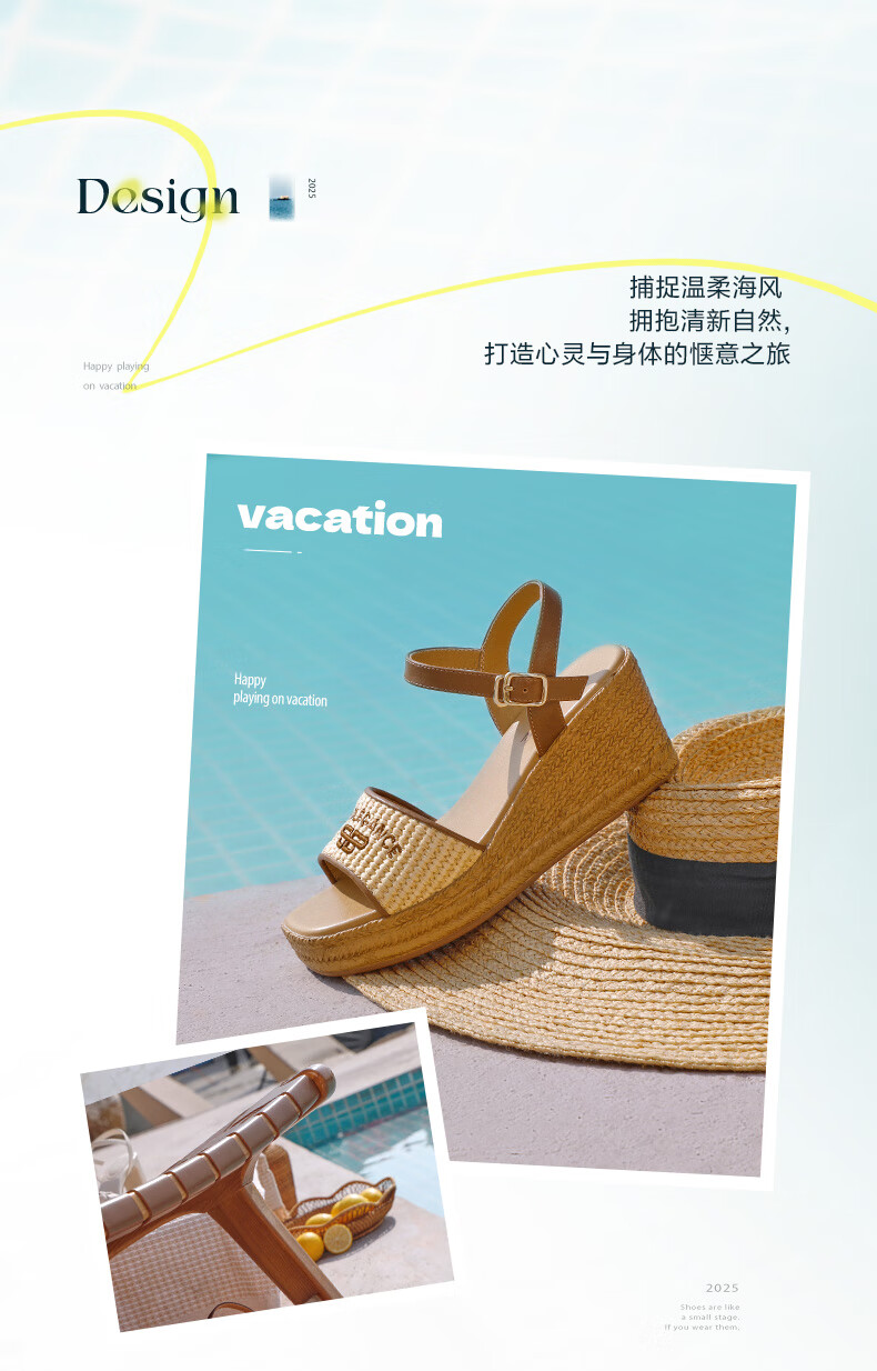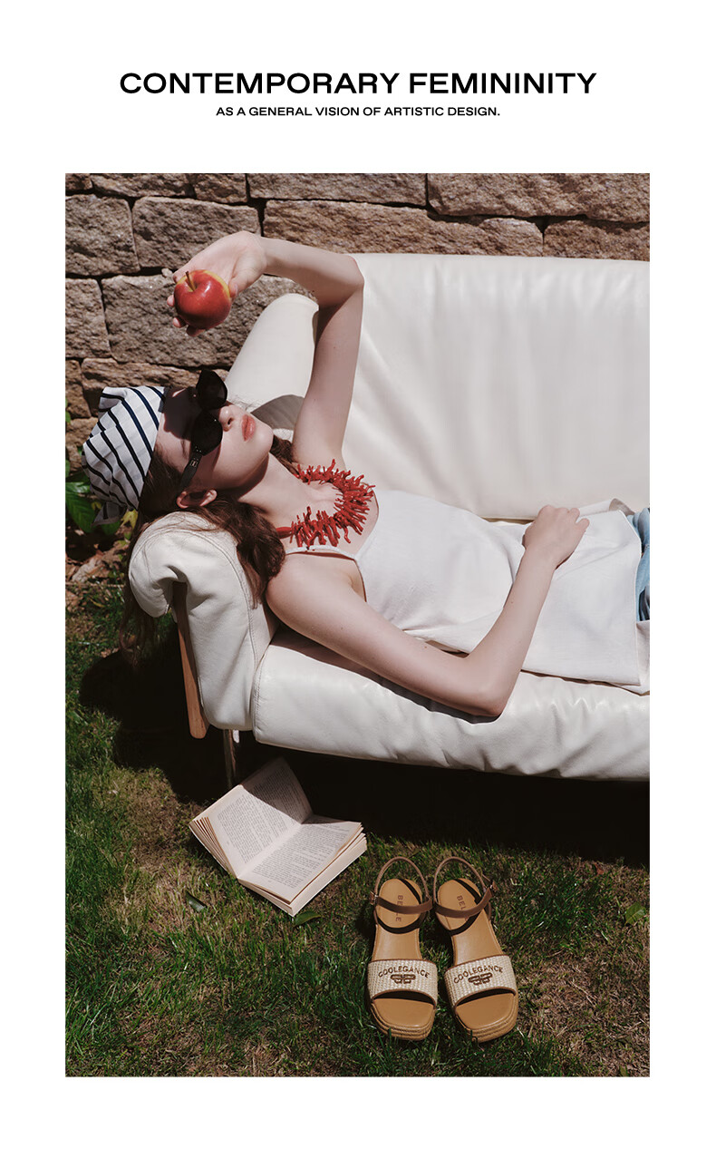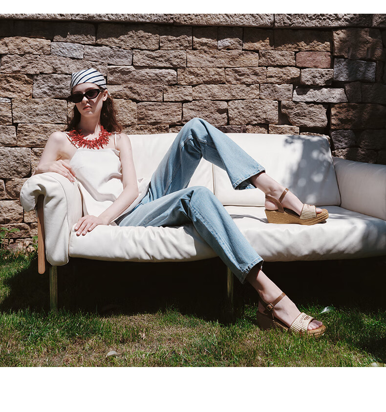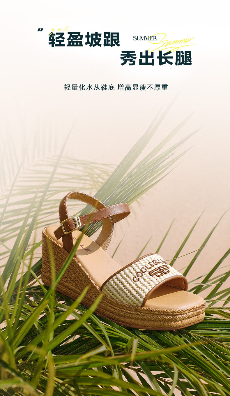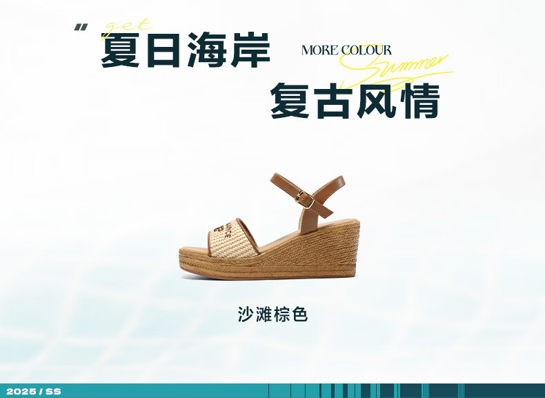 Belle Braided Resort Style Casual Sandals Women's Shopping Mall Thick-soled Wedge Sandals D6J1DBL5 Apricot 36 (230mm)