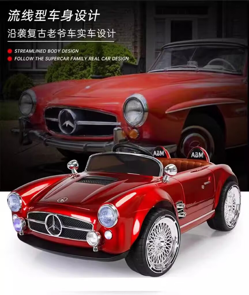 Kang Shuai Aibei Mei Mercedes-Benz retro car boys and girls children's electric car remote control toy car charging electric car can sit on people's birthday gift retro white + 12V7 + dual drive + leather seat + gift bag