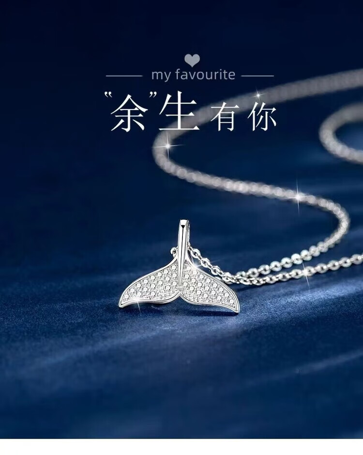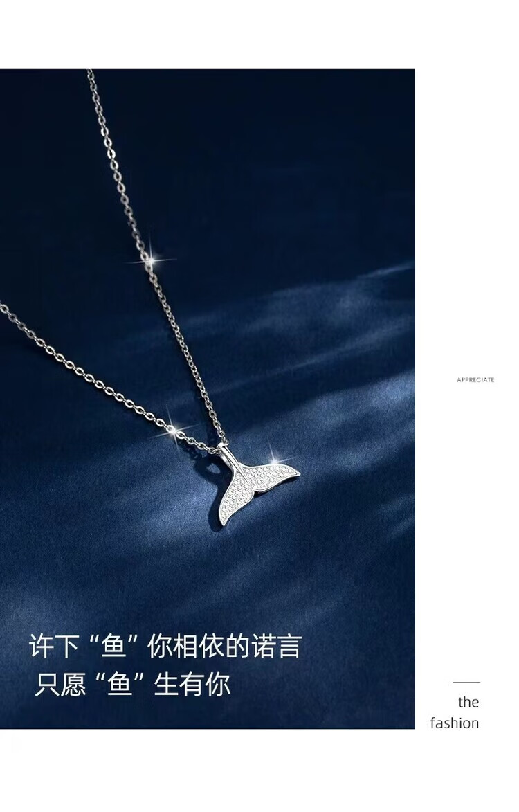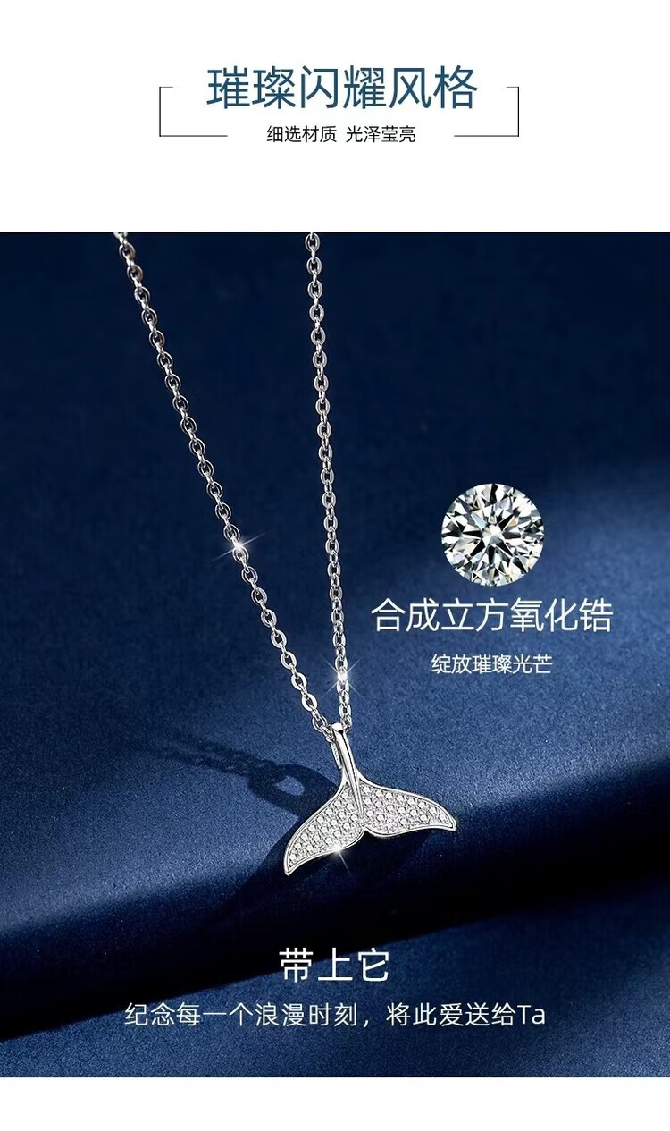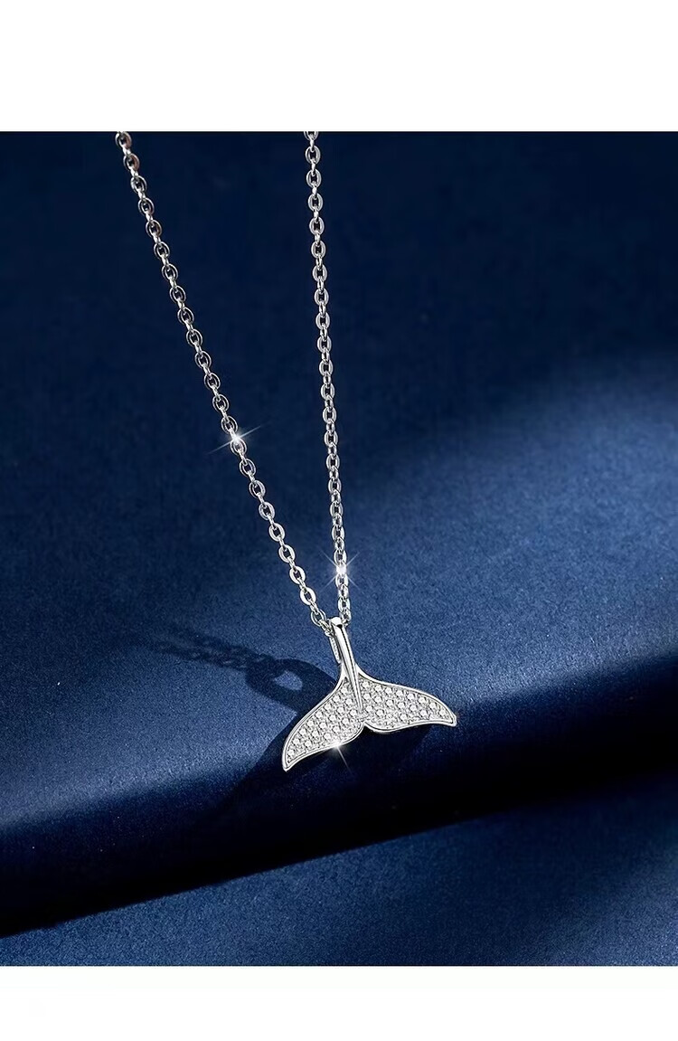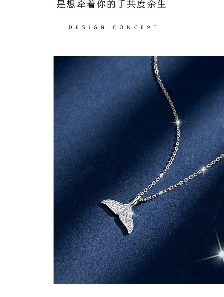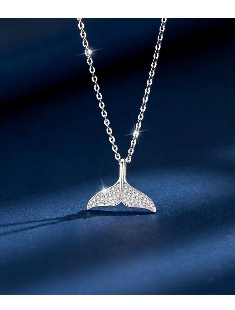 Pt950 Platinum Necklace Mermaid Fish Tail Necklace Girls Clavicle Chain Light Luxury Niche Birthday Gift for Girlfriend Light Luxury Full Diamond Mermaid Tail Necklace