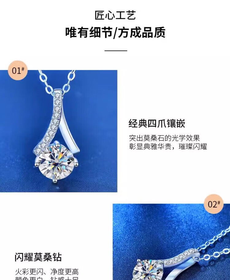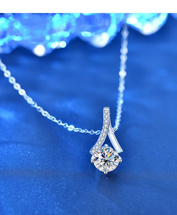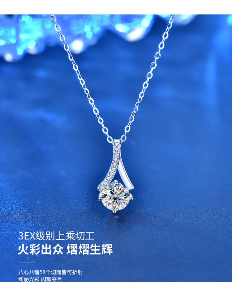 Pt950 platinum herringbone necklace for women 1 carat diamond fashion clavicle accessories moissanite pendant jewelry gift light luxury women's heart 1 carat pendant + O chain