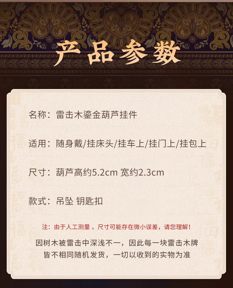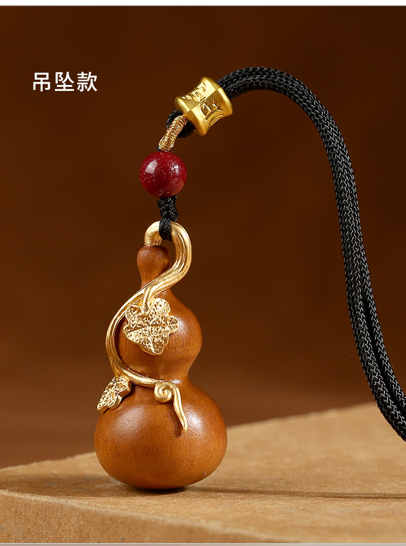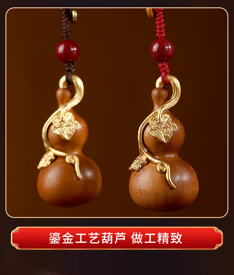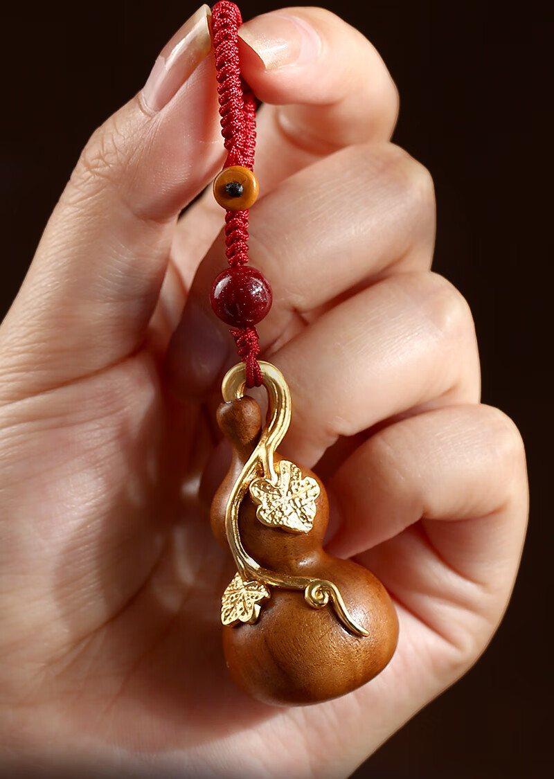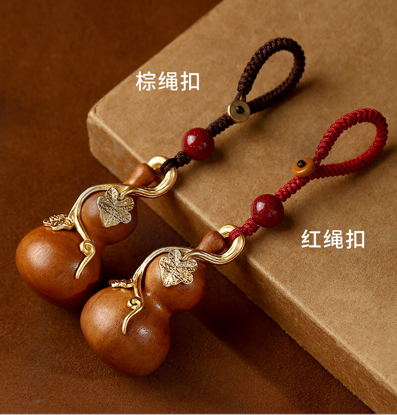 Jinshuitang lightning strike peach wood gourd pendant, natural and authentic lightning strike wood handle piece, car key chain gilt pendant, lightning strike peach wood gourd-red rope key chain