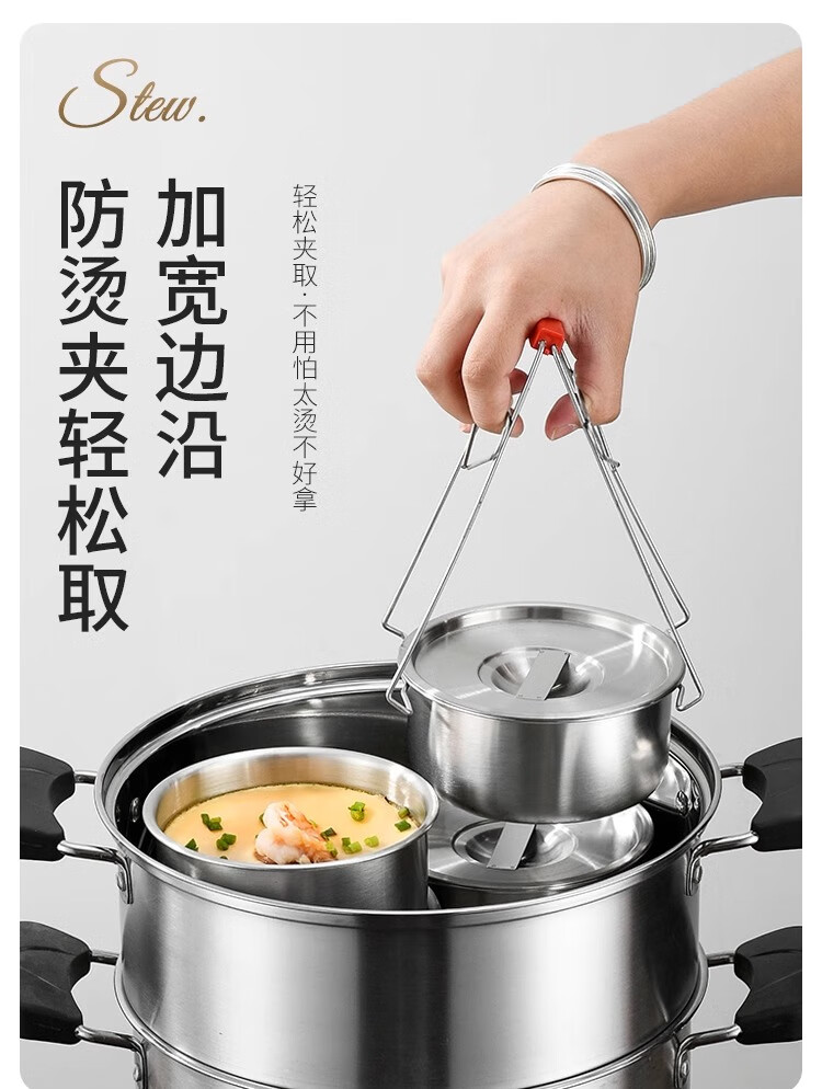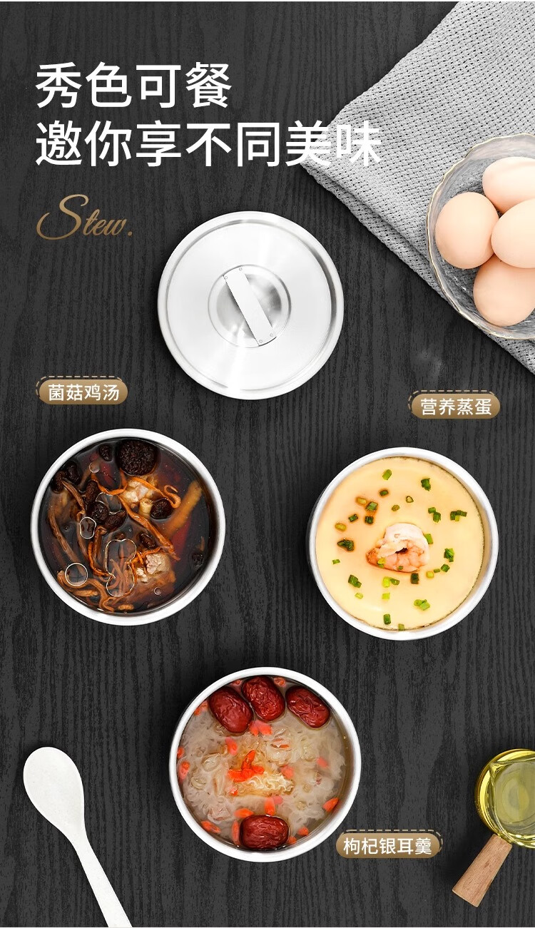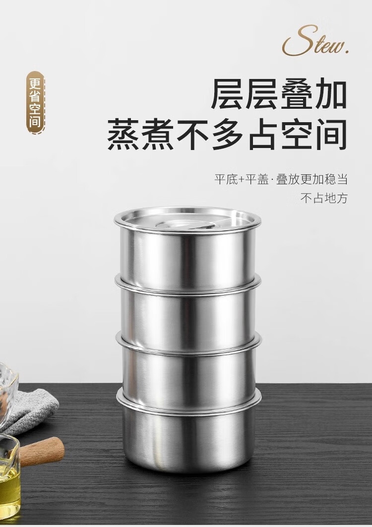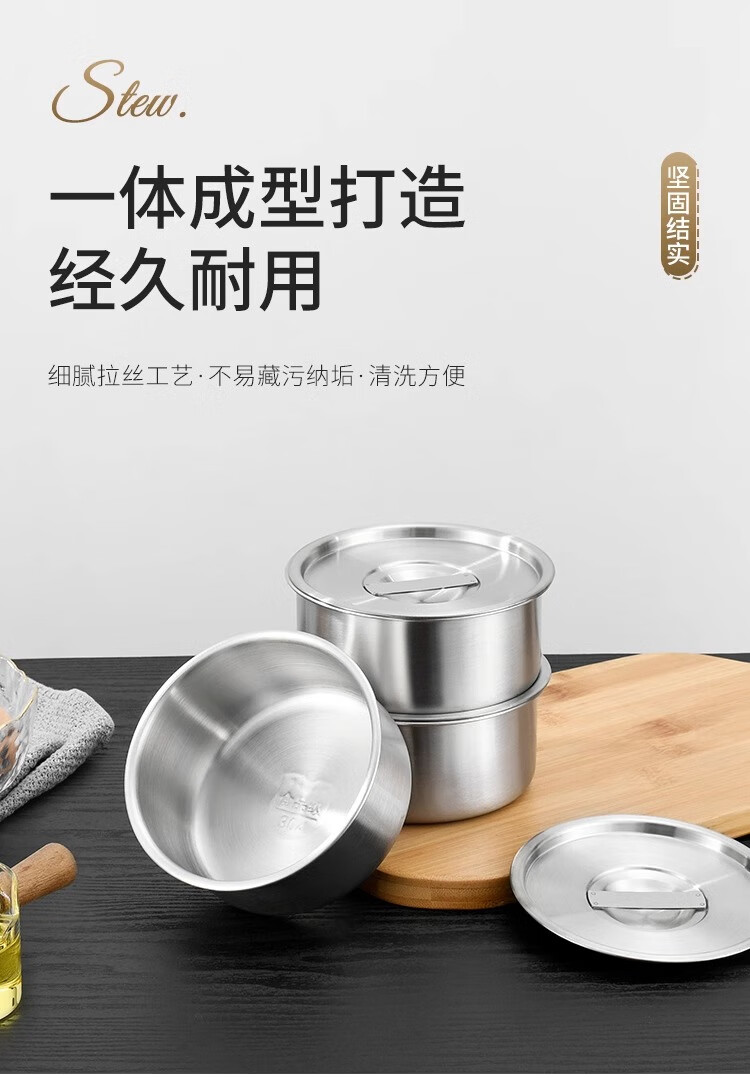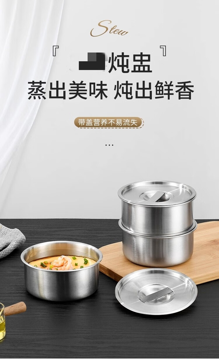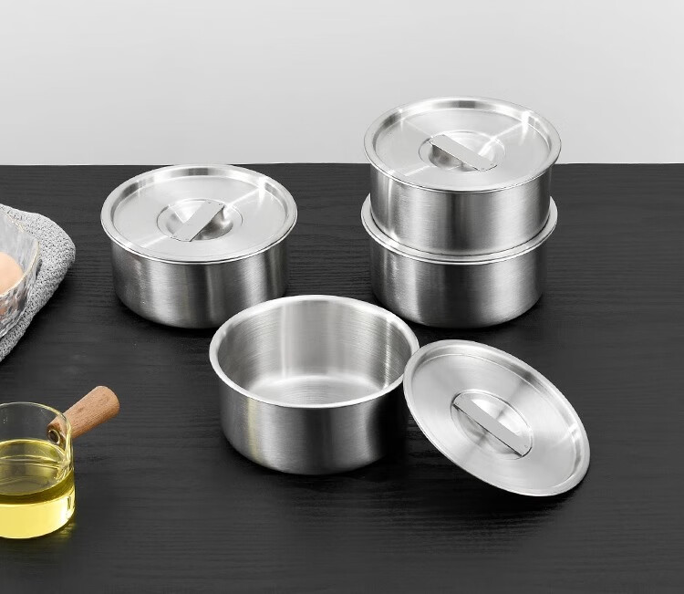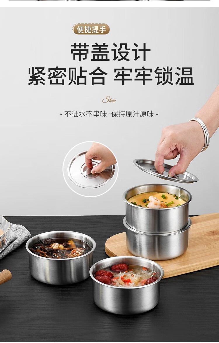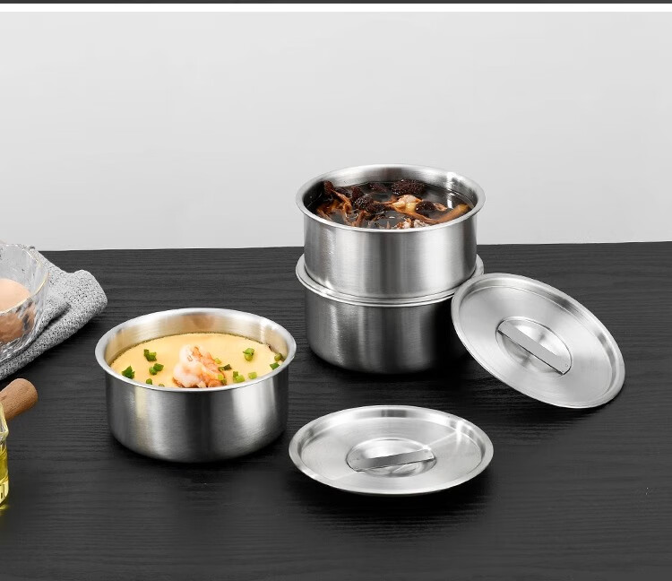 Stainless steel household steamed egg bowl, baby food supplement with lid, special egg custard steaming bowl, household stew pot, 11.5cm stainless steel steaming bowl, 4 pieces