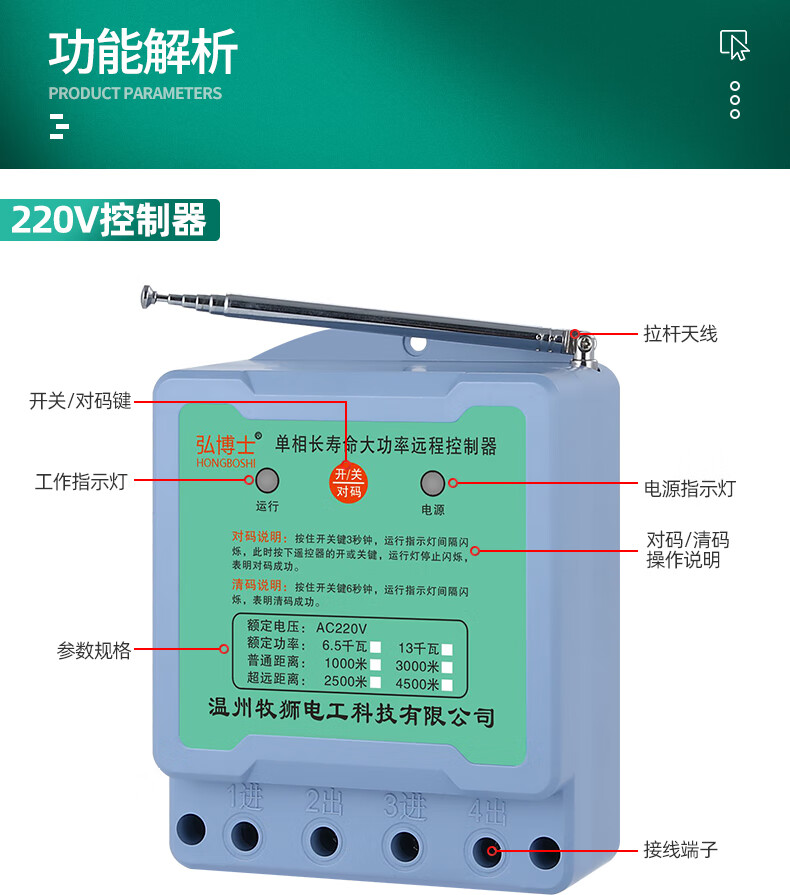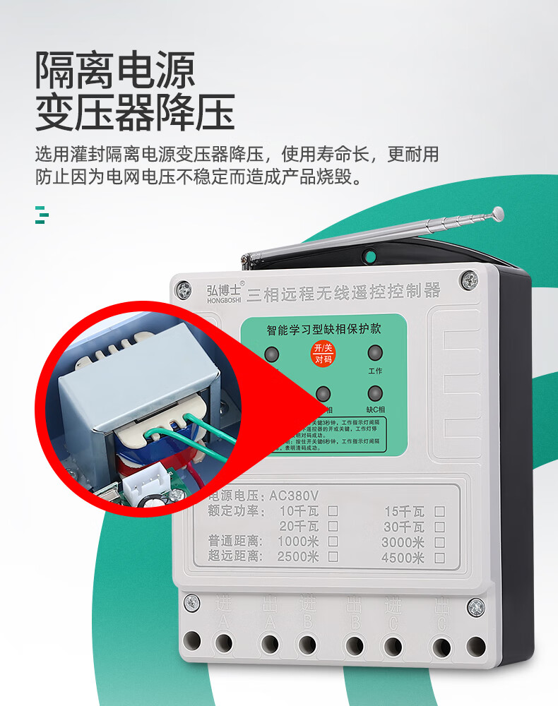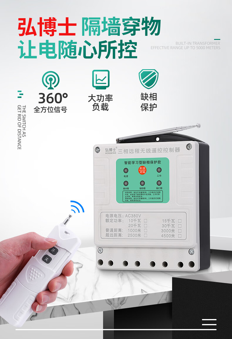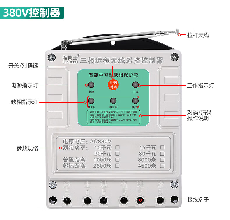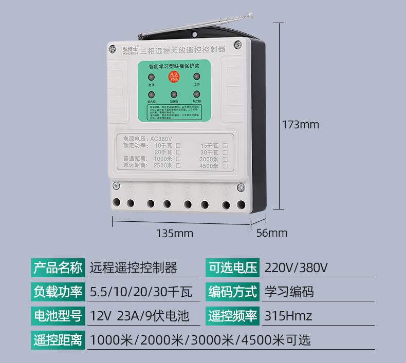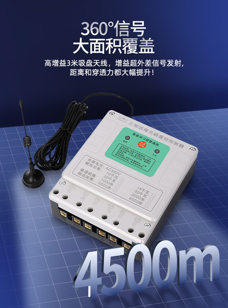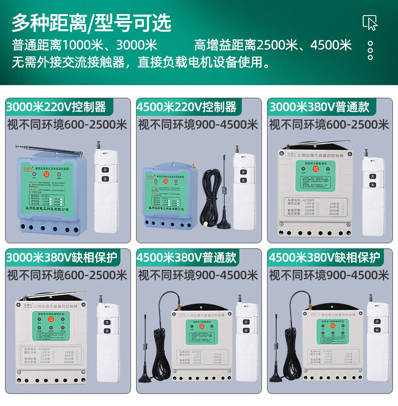 Wireless remote control switch three-phase remote control 380V high-power motor protection water pump intelligent controller 03 models 1000 meters 380V ordinary model 10 kilowatts one remote control