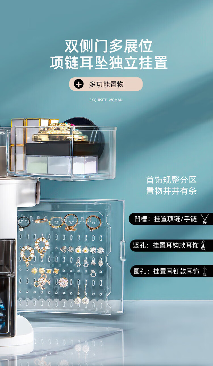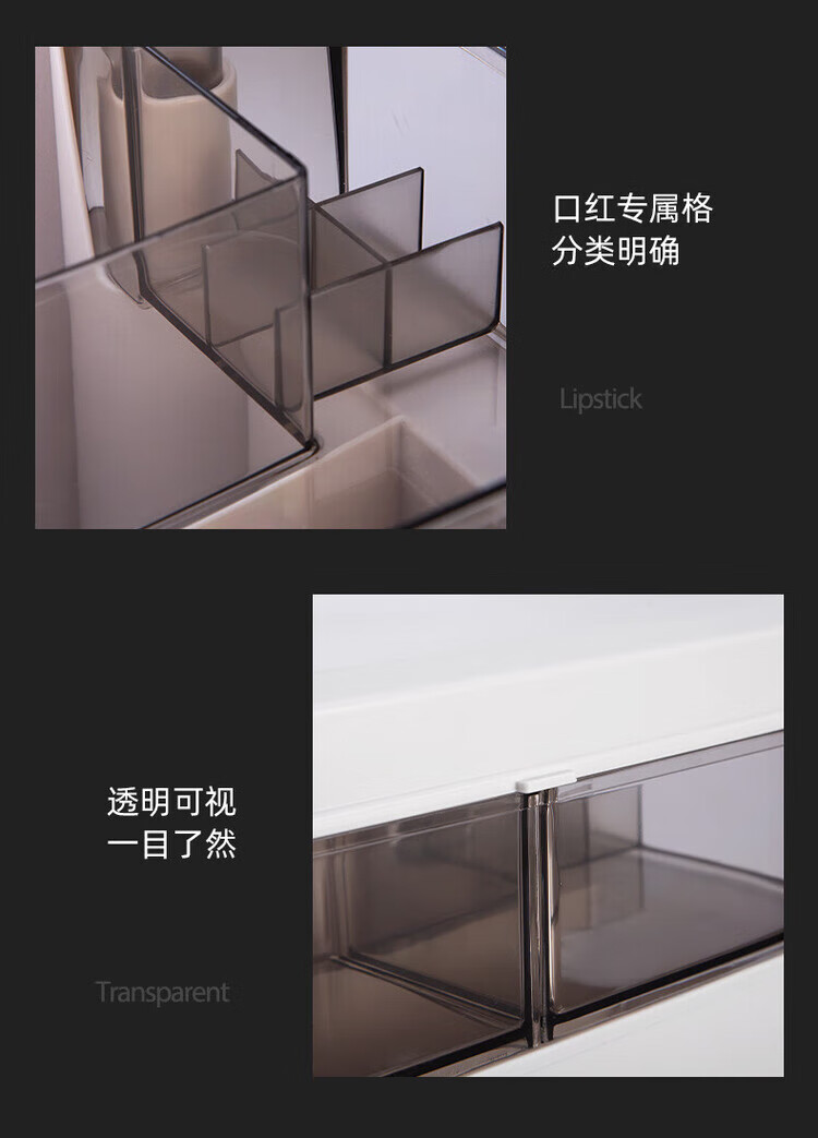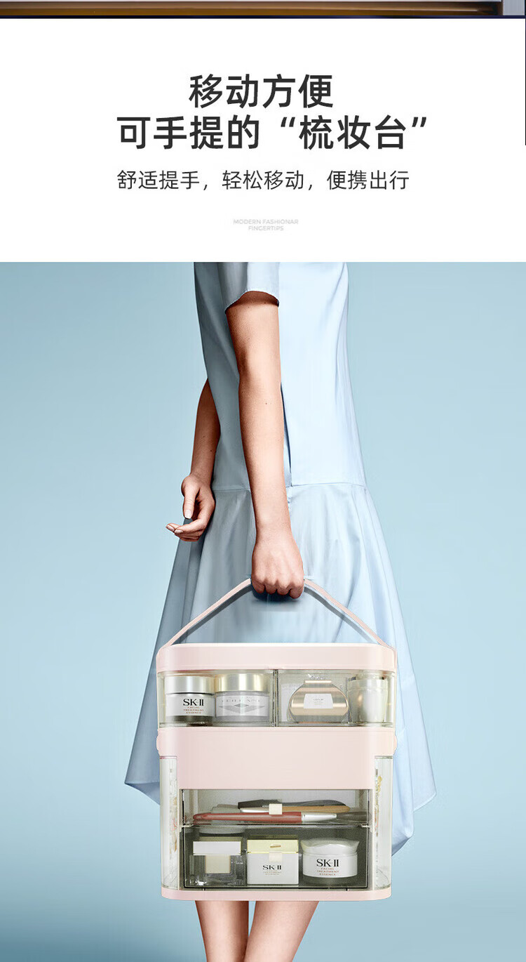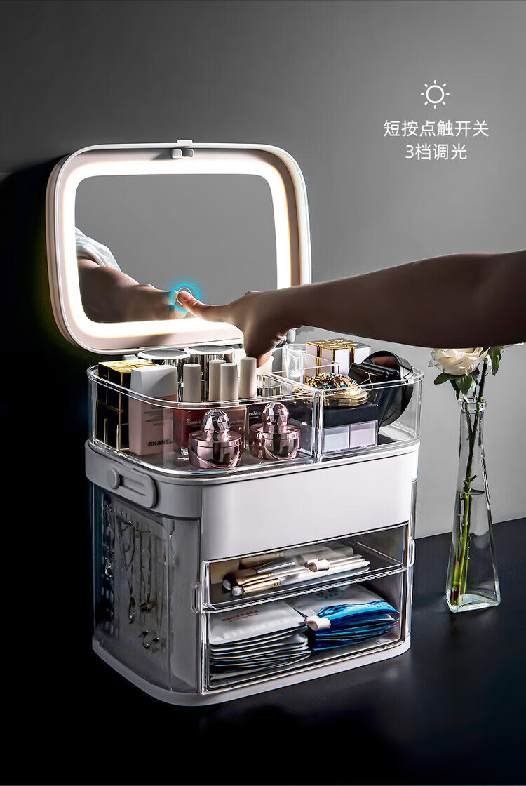 Yunya cosmetics storage box desktop LED light with mirror multi-functional all-in-one dressing table storage rack lipstick storage cabinet makeup storage box LED mirror fan fixed makeup style