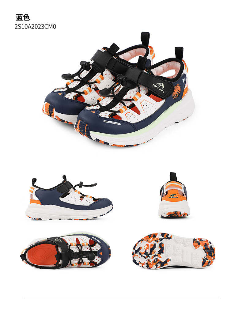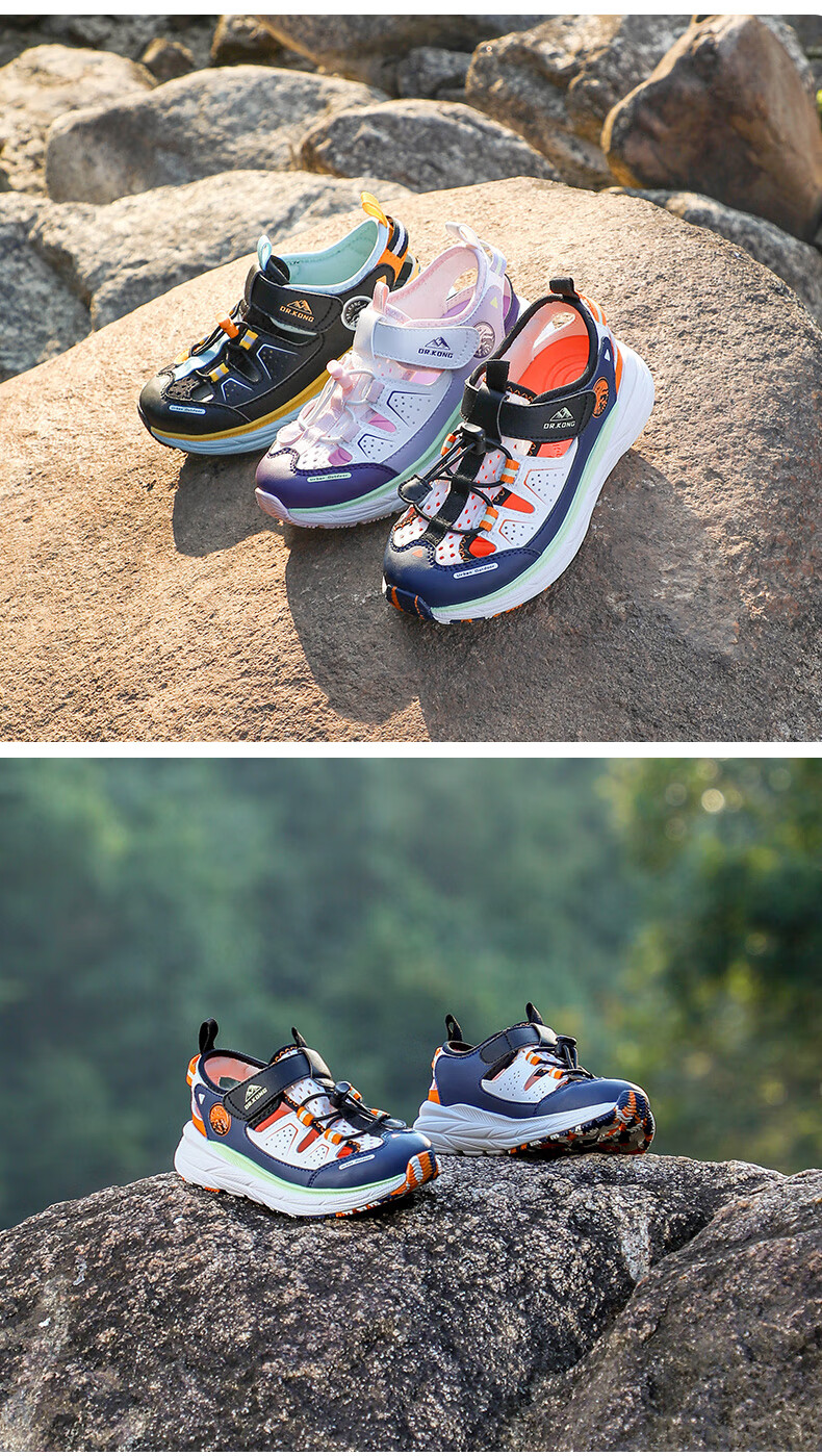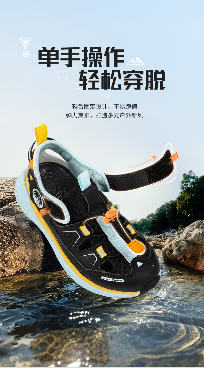 Dr. Jiang's summer breathable casual children's sandals for boys and girls, medium and large children's Velcro outdoor lightweight children's shoes, black, size 31, foot length approximately 19.2-19.8