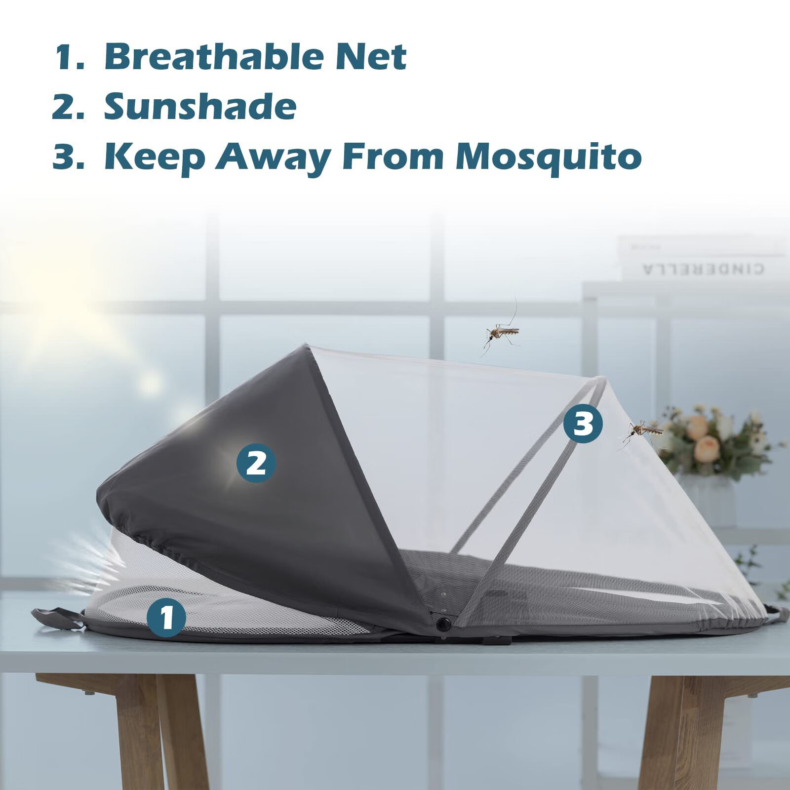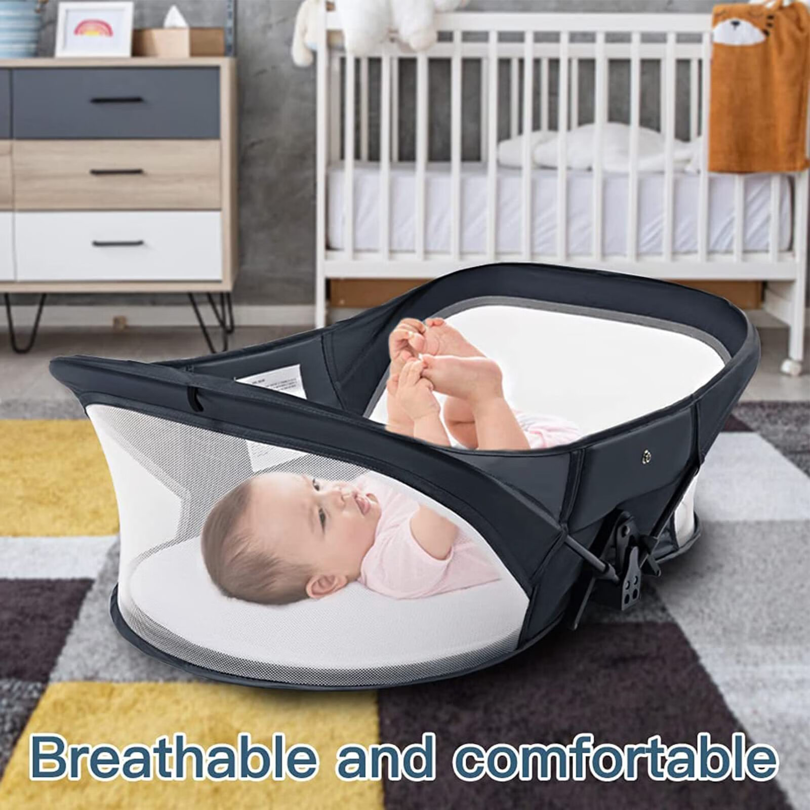 Habik Portable Bed-in-Bed Baby Crib Foldable Newborn Sleeping Bed Mobile Bionic Womb Bed Standard Model - Anti-pressure Bed-in-Bed - Navy Blue - Mattress + Mosquito Net