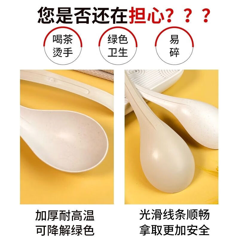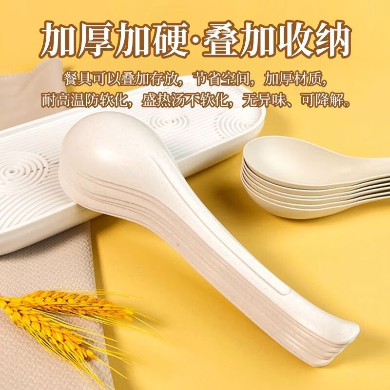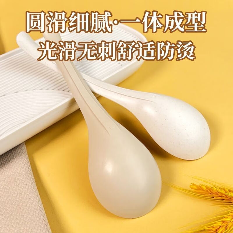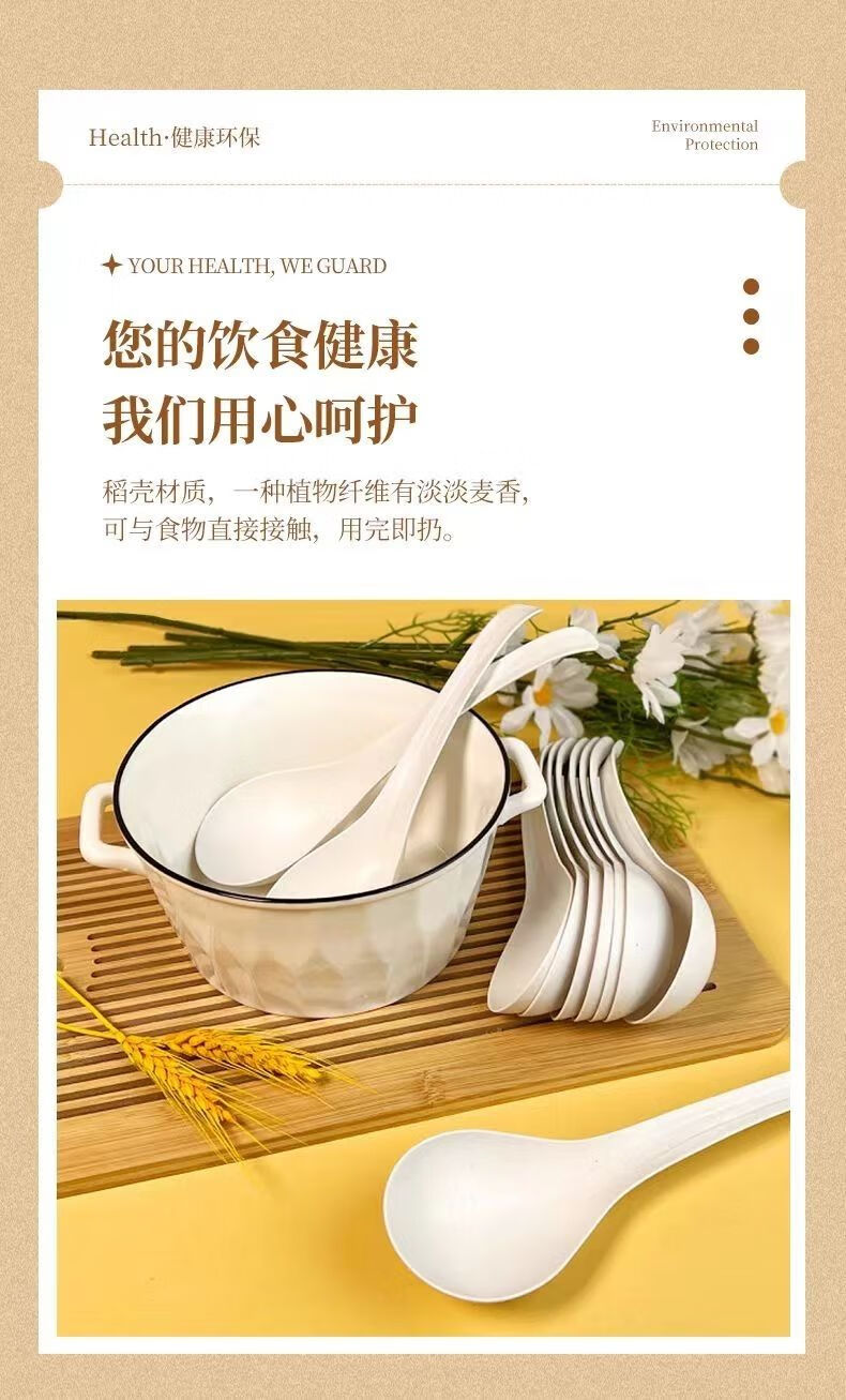 Kangenjia rice husk disposable food-grade long-handled spoon male spoon commercial tableware soup long-handled large spoon high temperature resistant white rice husk large spoon *50 pieces
