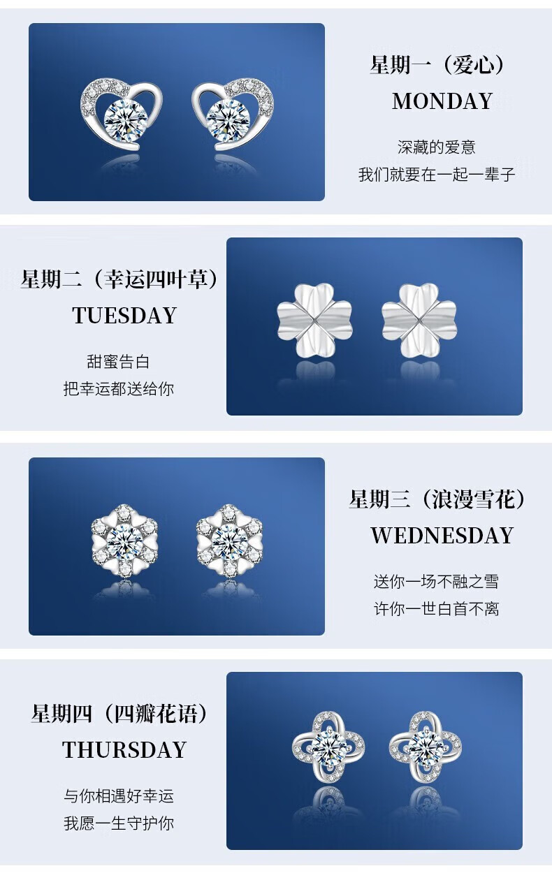 Ji Sifan light luxury one week earrings women's earrings earrings jewelry birthday Valentine's Day anniversary gift for girlfriend and wife sincere week earrings