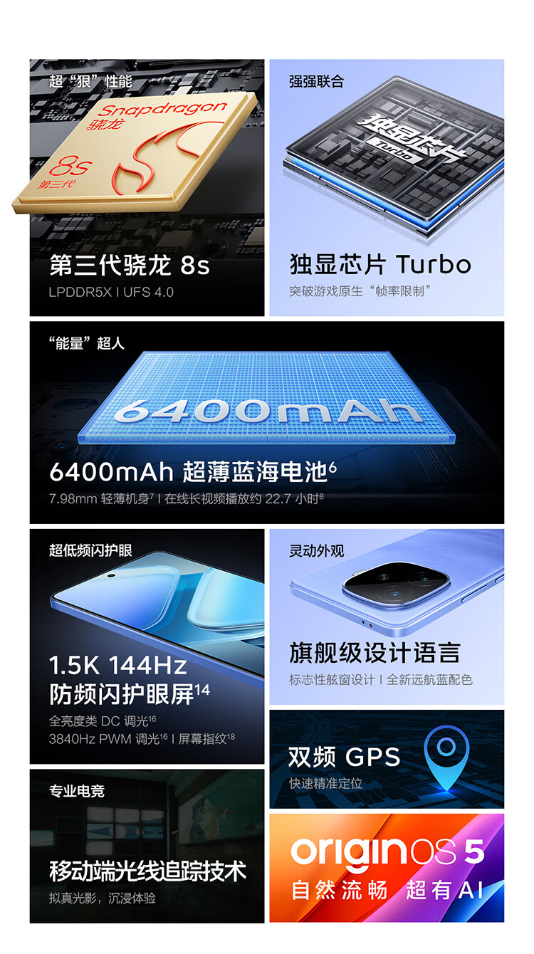 VivoiQOO Z9 Turbo Long Battery Edition Unopened and Unactivated + Nationwide Warranty Third Generation Snapdragon 8s 6400mAh Blue Ocean Battery 144Hz Gaming Phone Z9 Turbo Long Battery Edition-Starlight White 16GB+256GB