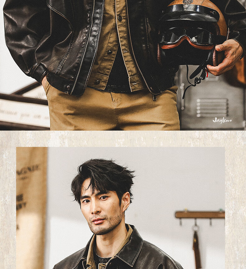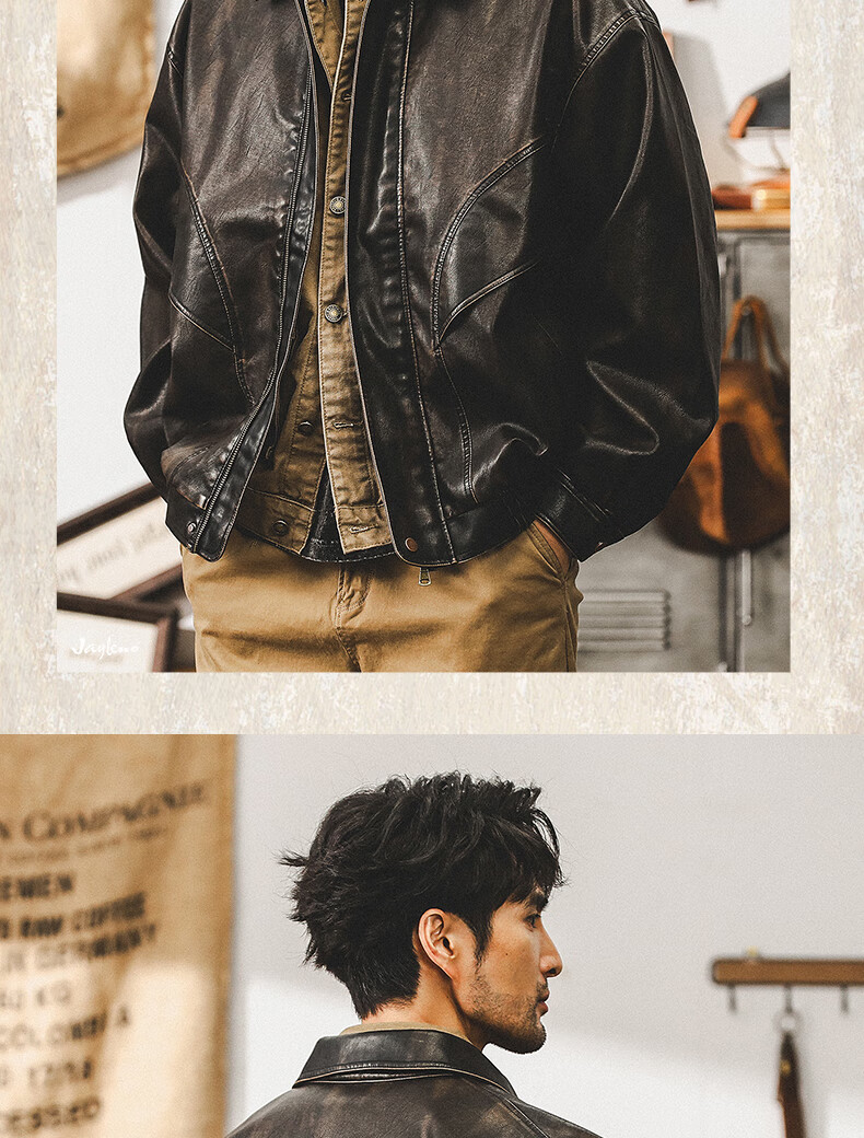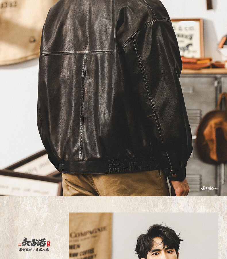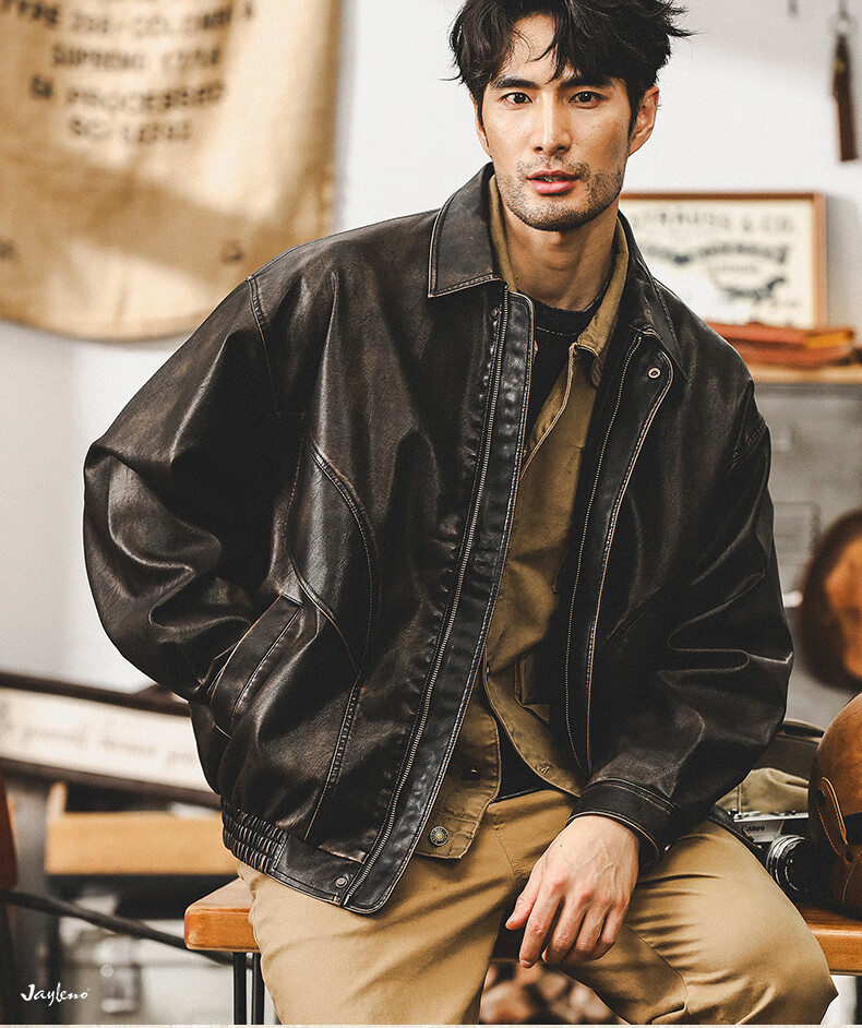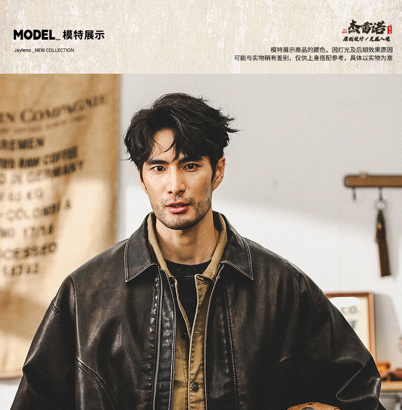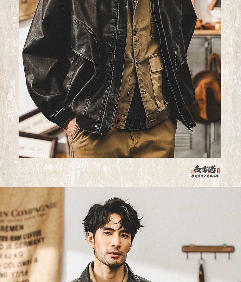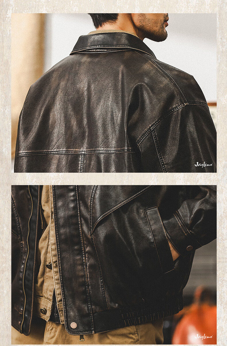 Jay Leno American retro wasteland style soft leather jacket men's spring trendy brand loose handsome tough guy motorcycle work jacket men coffee color M suitable for 100-125 Jin Jin equals 0.5 kg
