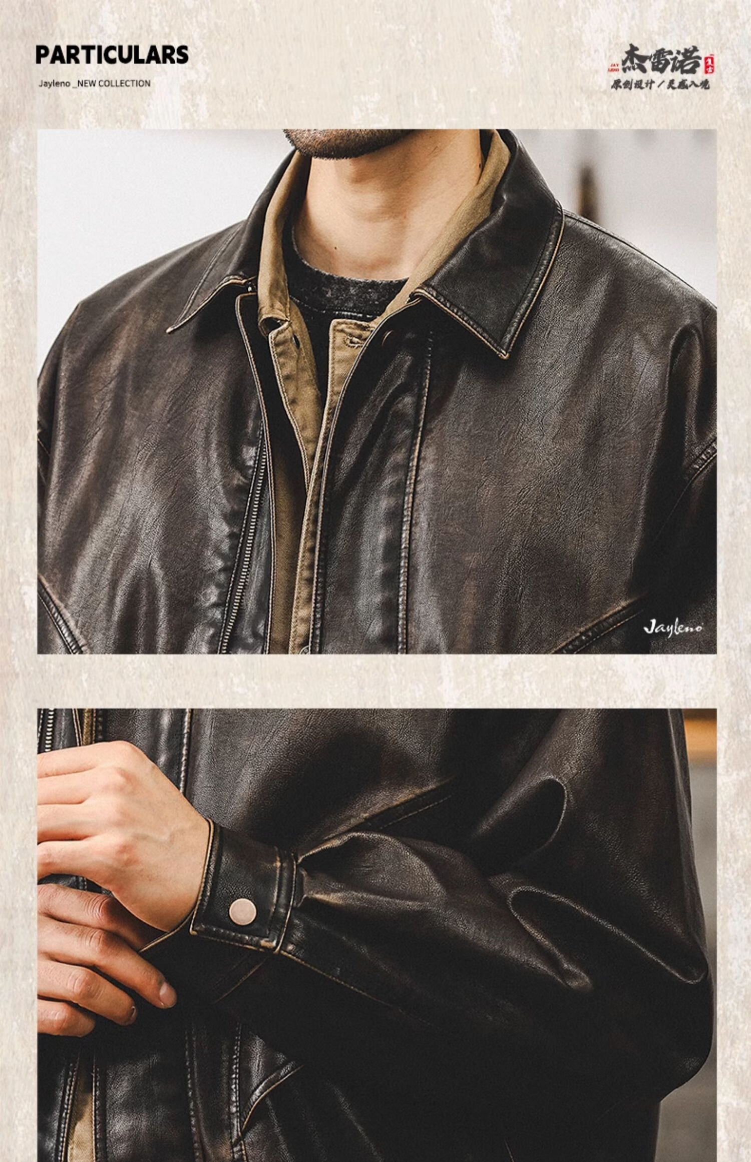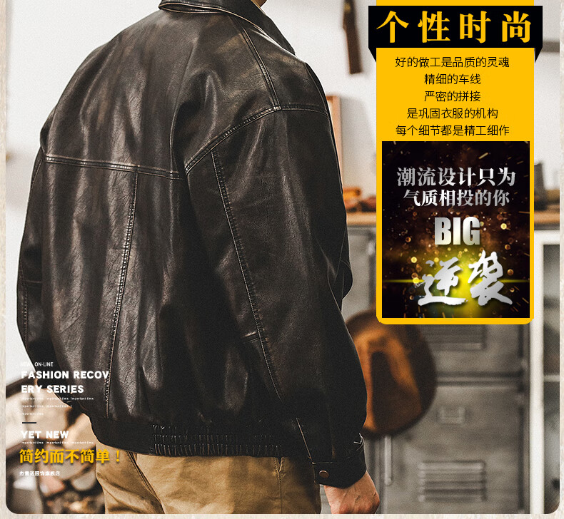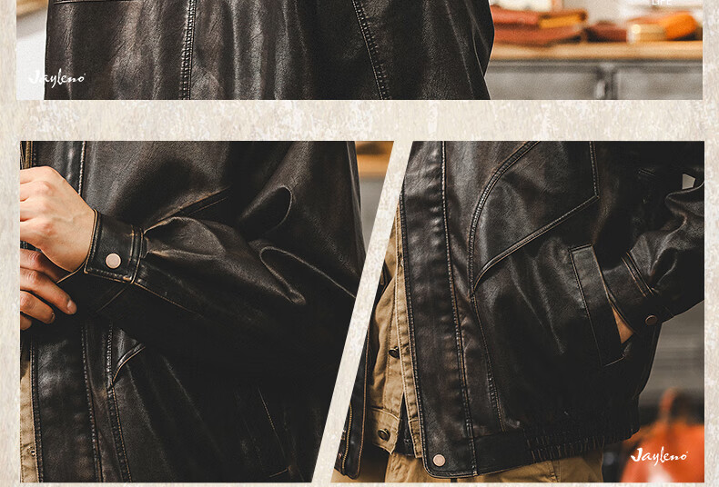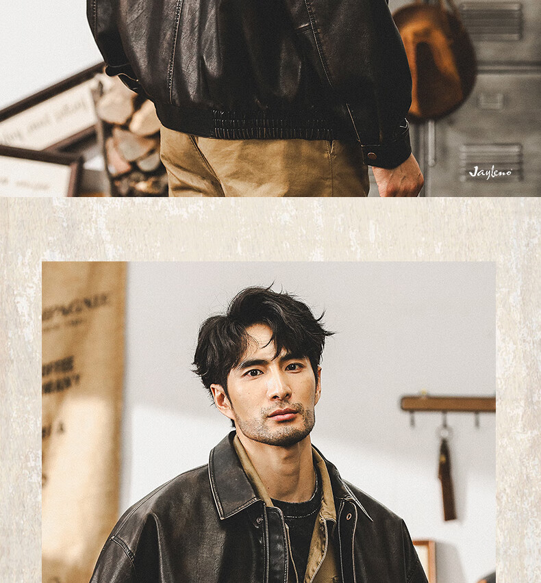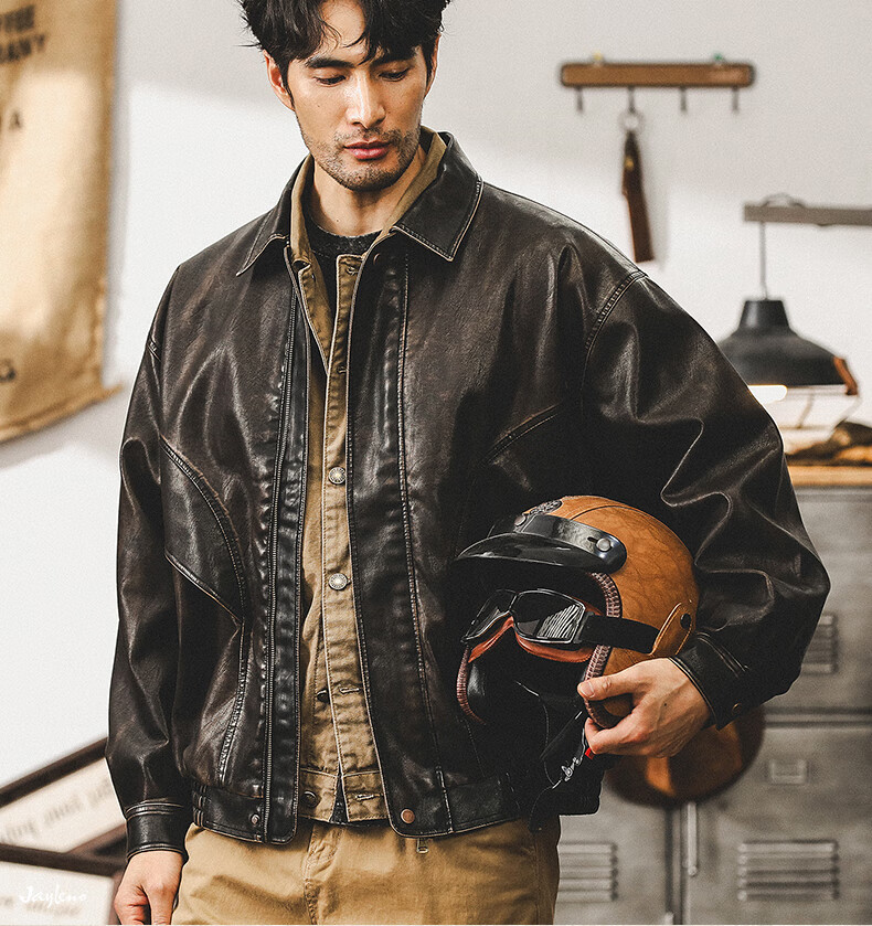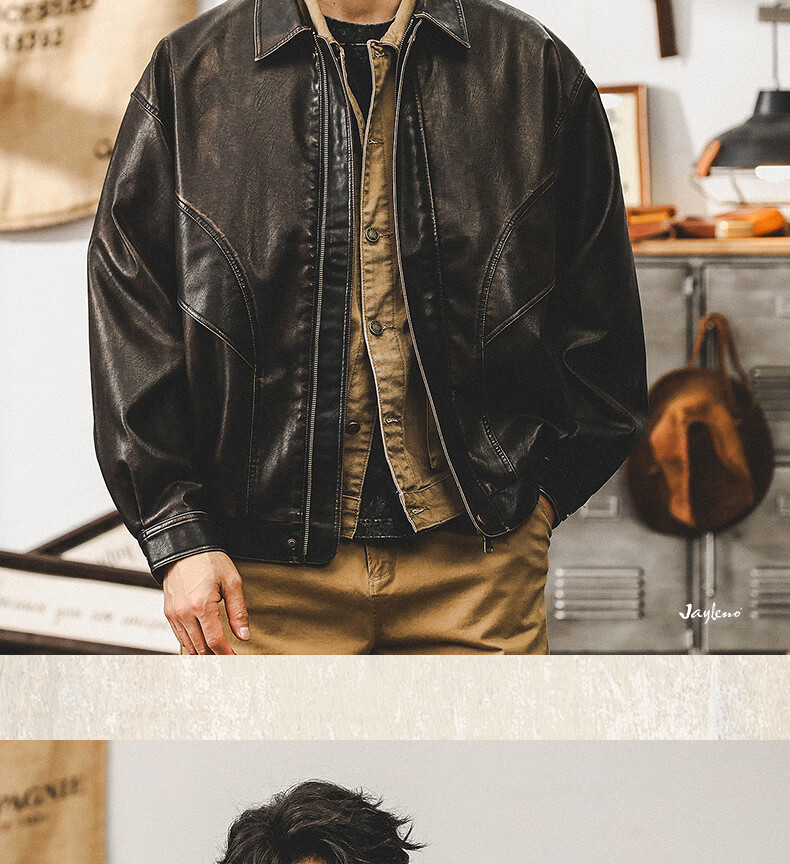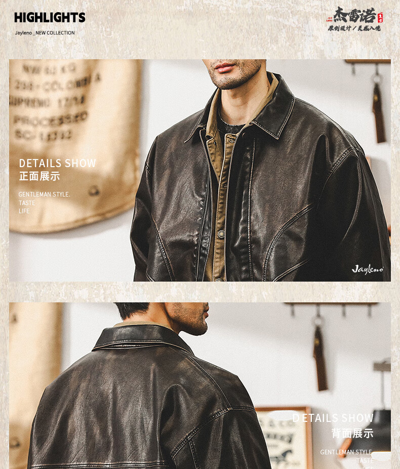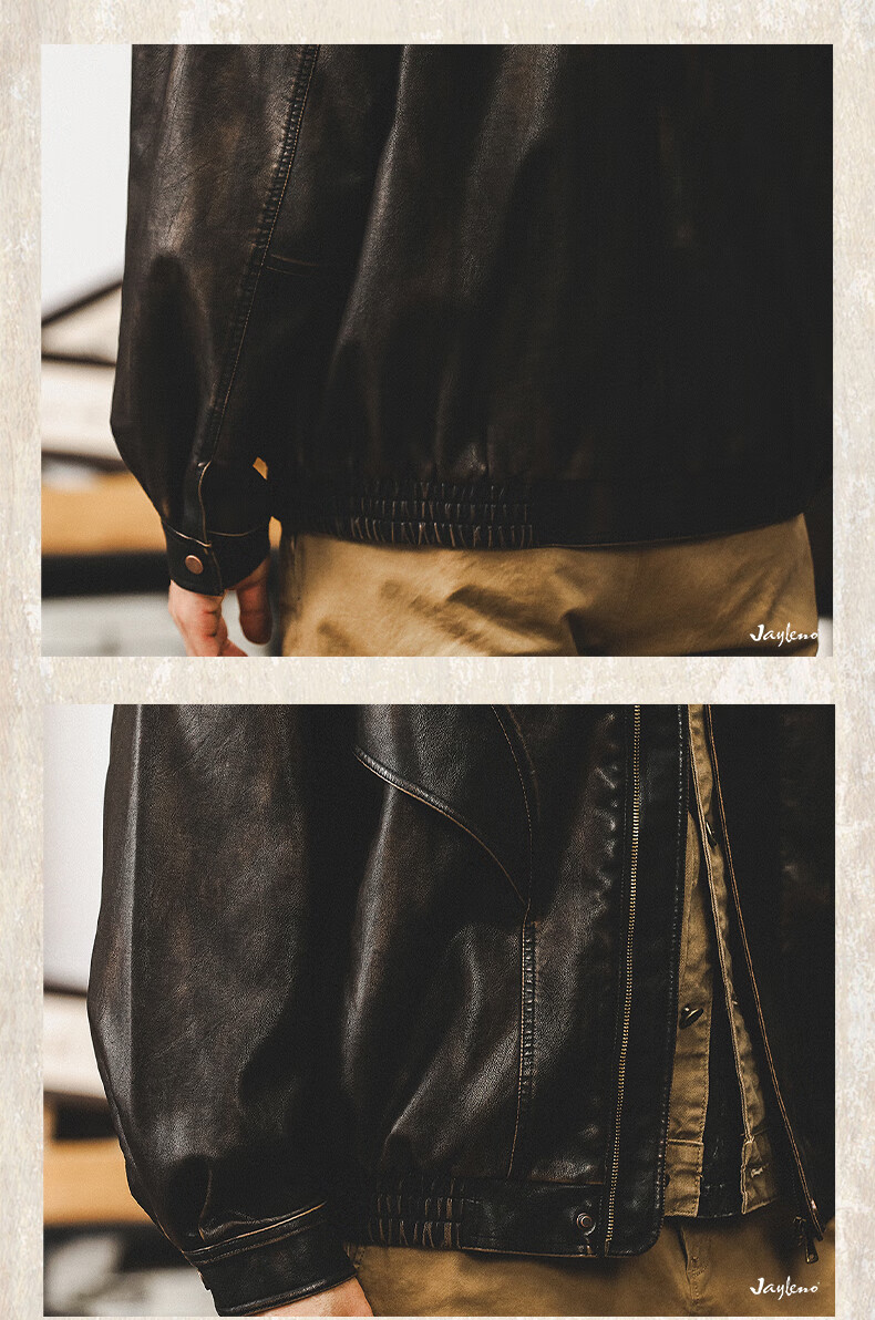 Jay Leno American retro wasteland style soft leather jacket men's spring trendy brand loose handsome tough guy motorcycle work jacket men coffee color M suitable for 100-125 Jin Jin equals 0.5 kg