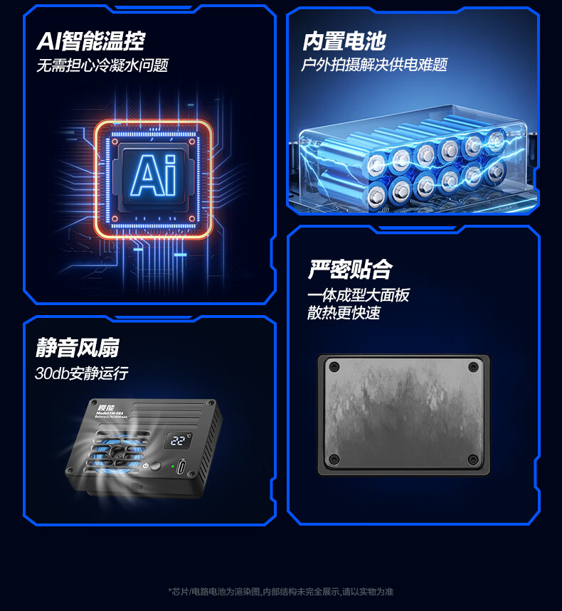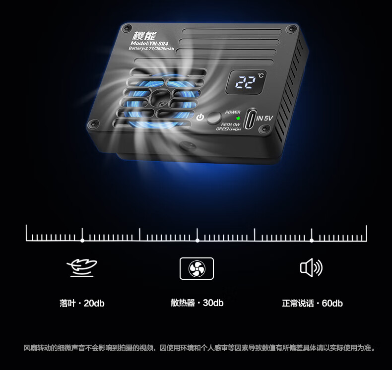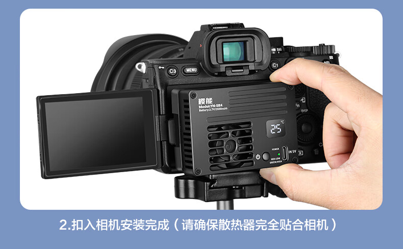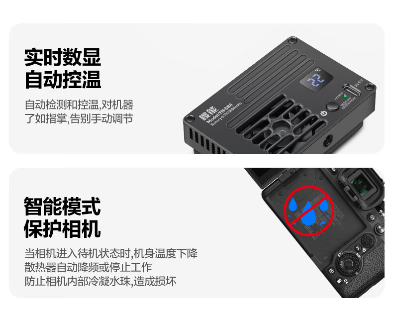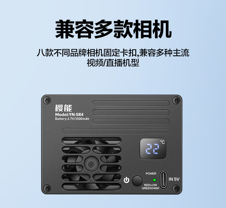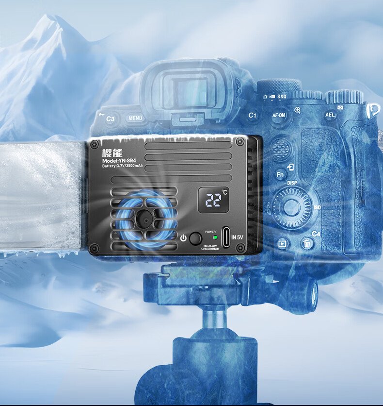 Yingneng camera radiator Sony A7M4/ZVE10/A7S3/A7C2/A6700 Canon R5 micro-SLR live video outdoor shooting semiconductor cooling fan silent cooling semiconductor radiator built-in battery 丨 3 hours of battery life intelligent temperature control 丨 no need to worry about condensation 丨 suitable for outdoor Vlog wedding follow-up shooting