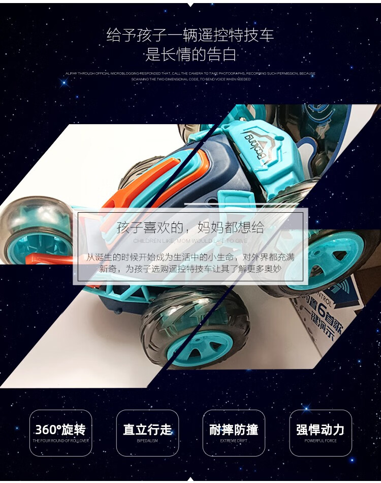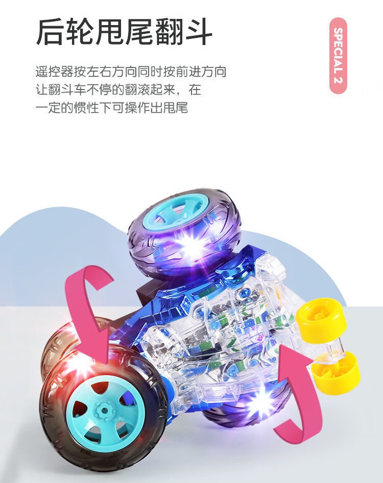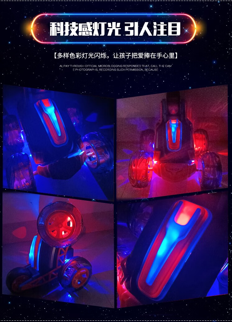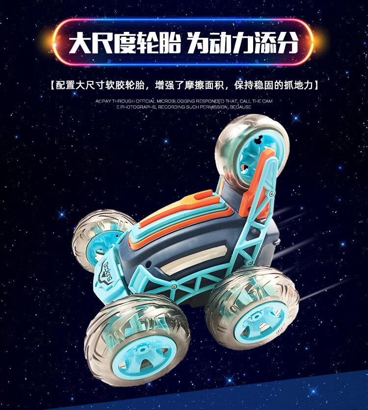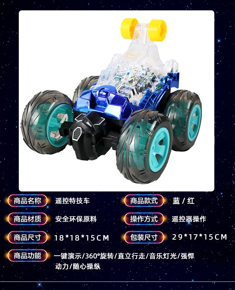 Remote control dump truck stunt roll off-road vehicle rechargeable remote control car children's boy toy racing car deformation 18CM blue light + 6 music small gift box packaging rechargeable + 360 flip + drop resistance