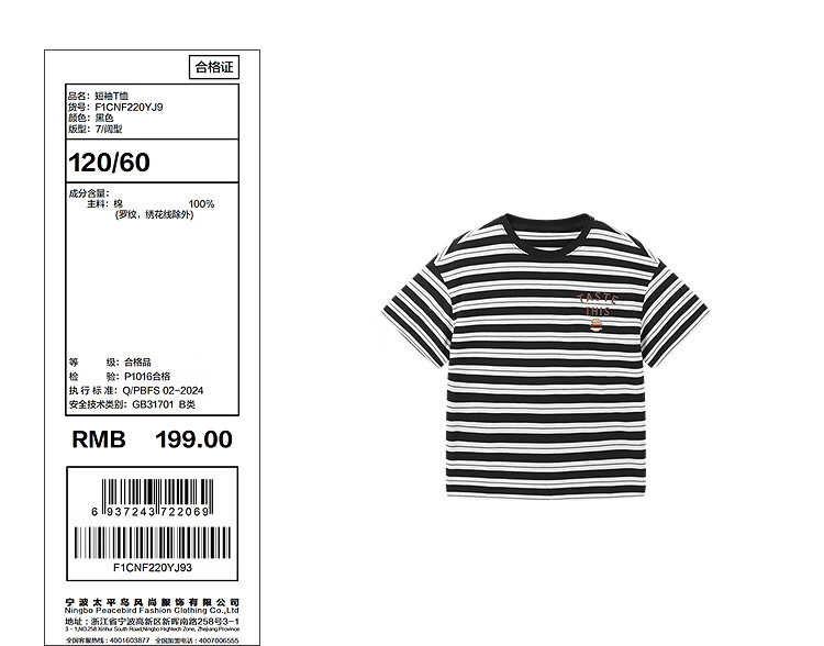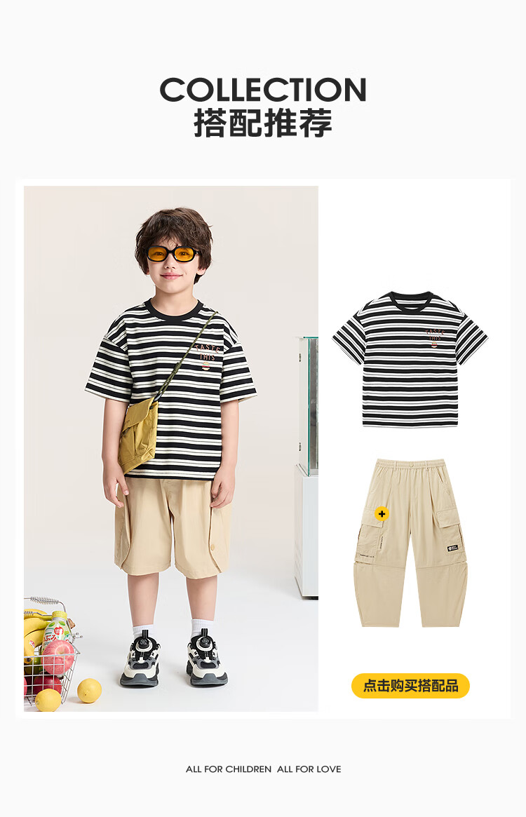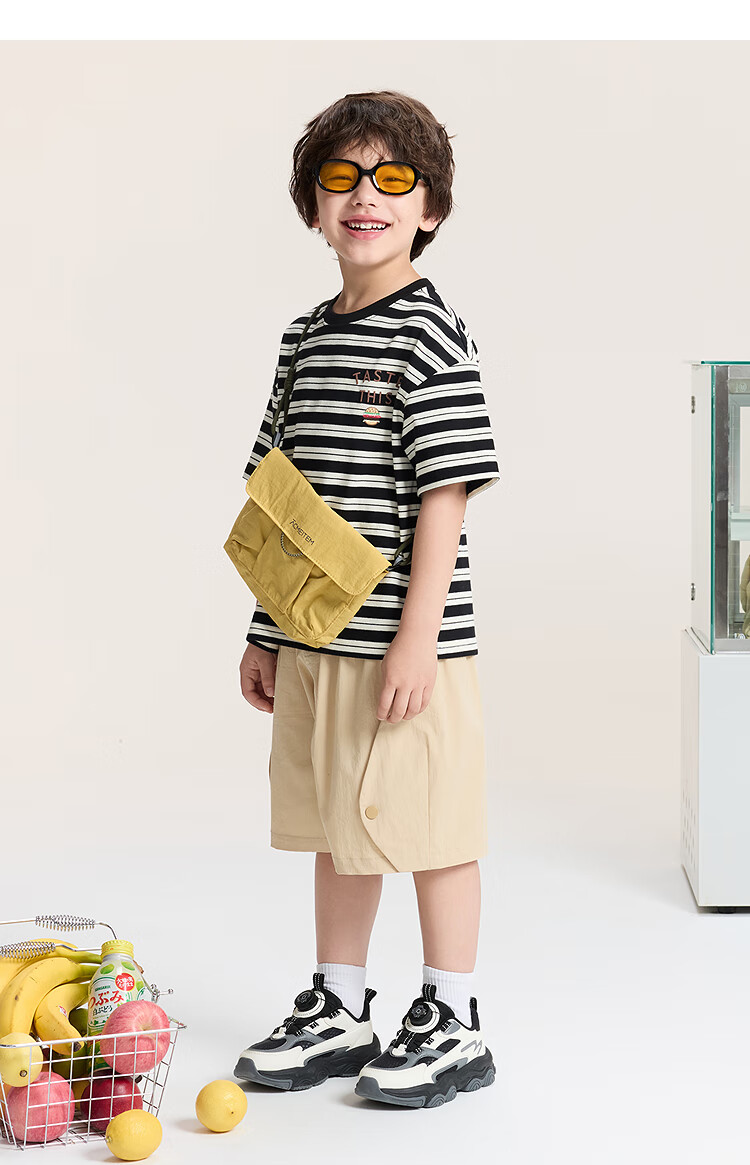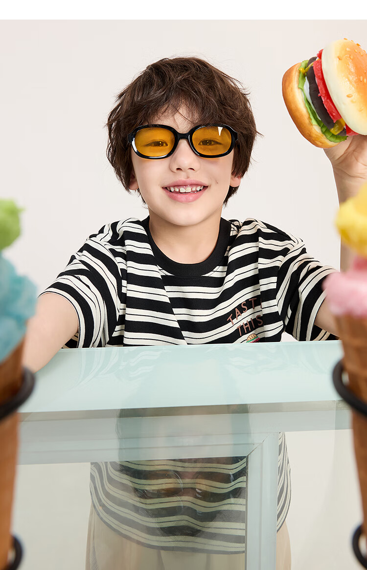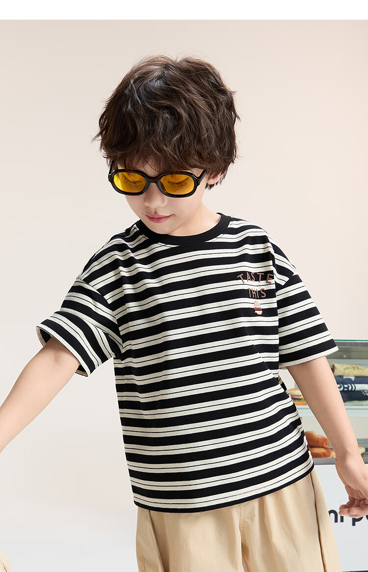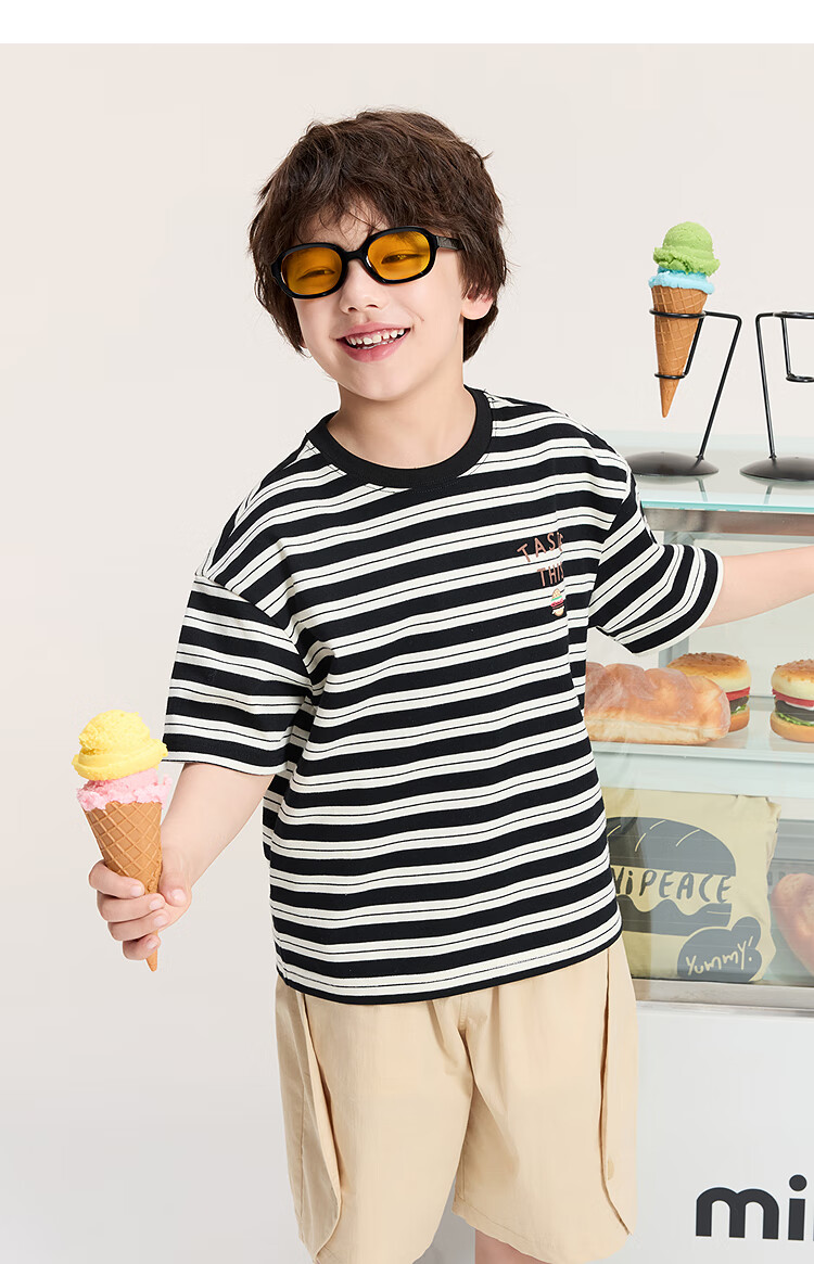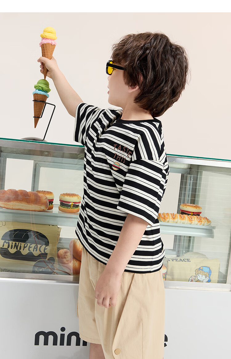 MiniPeace Children's Clothes Xia Xin Boys Short Sleeve T-Shirt F1CNF220Y Black 120