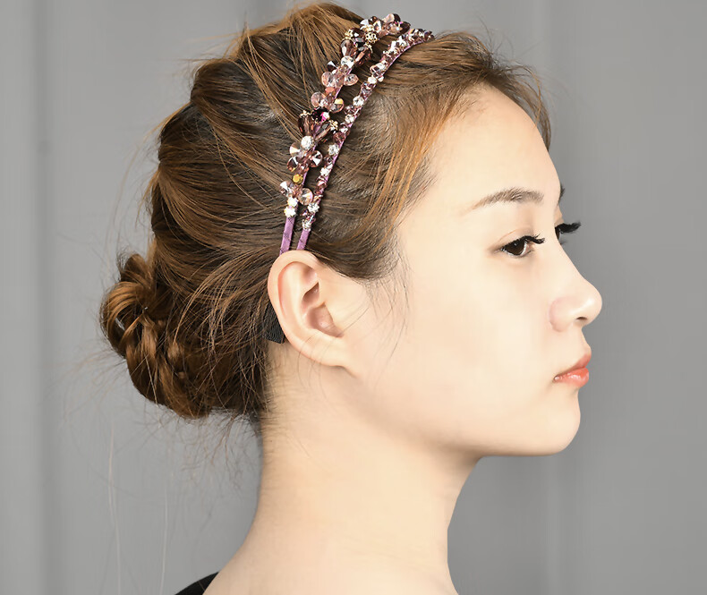 Zuoou headband for women, versatile for going out, 2025 new light luxury temperament, Korean crystal high-end headband, baroque hairpin, purple