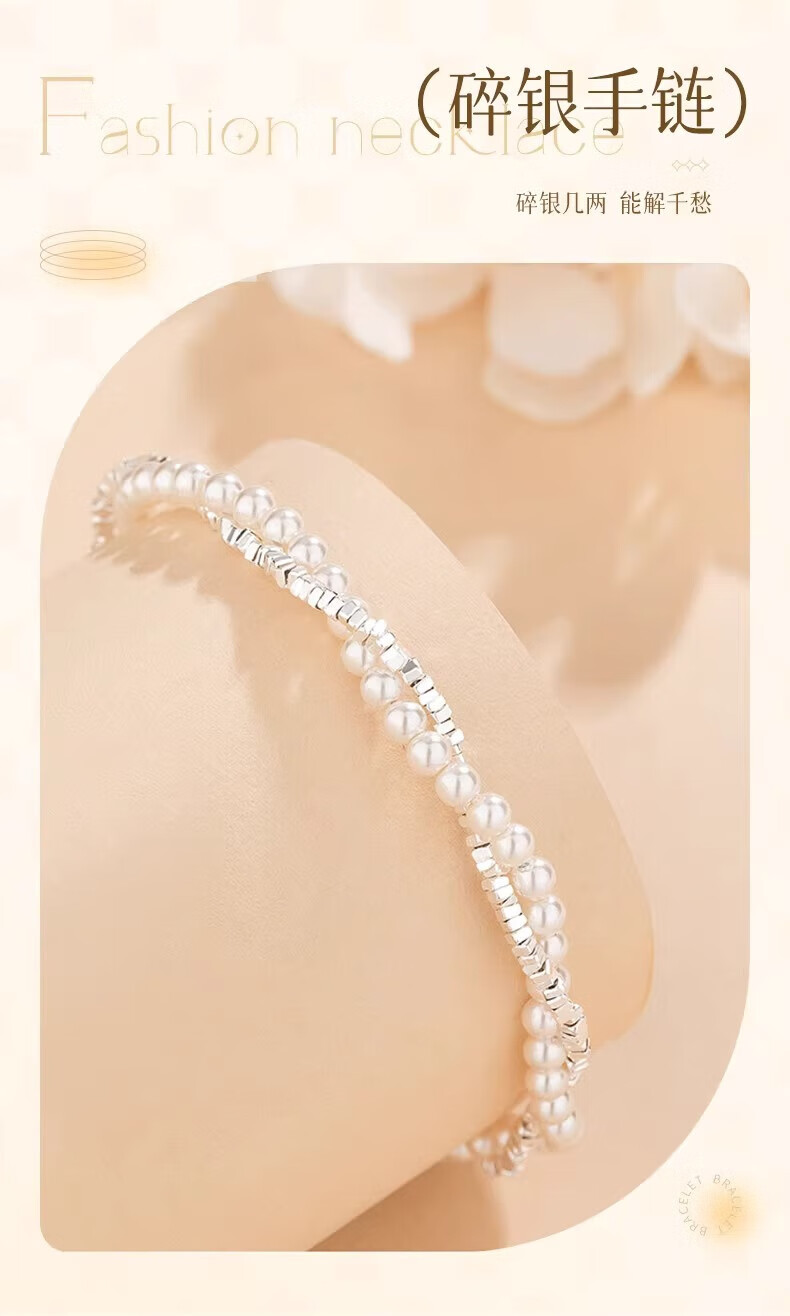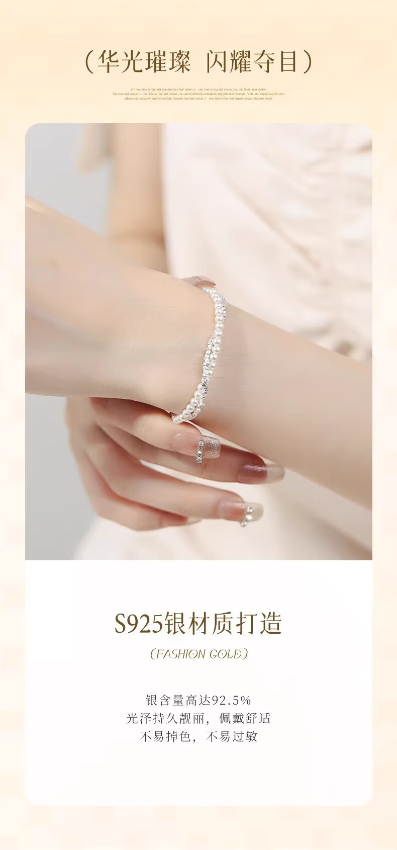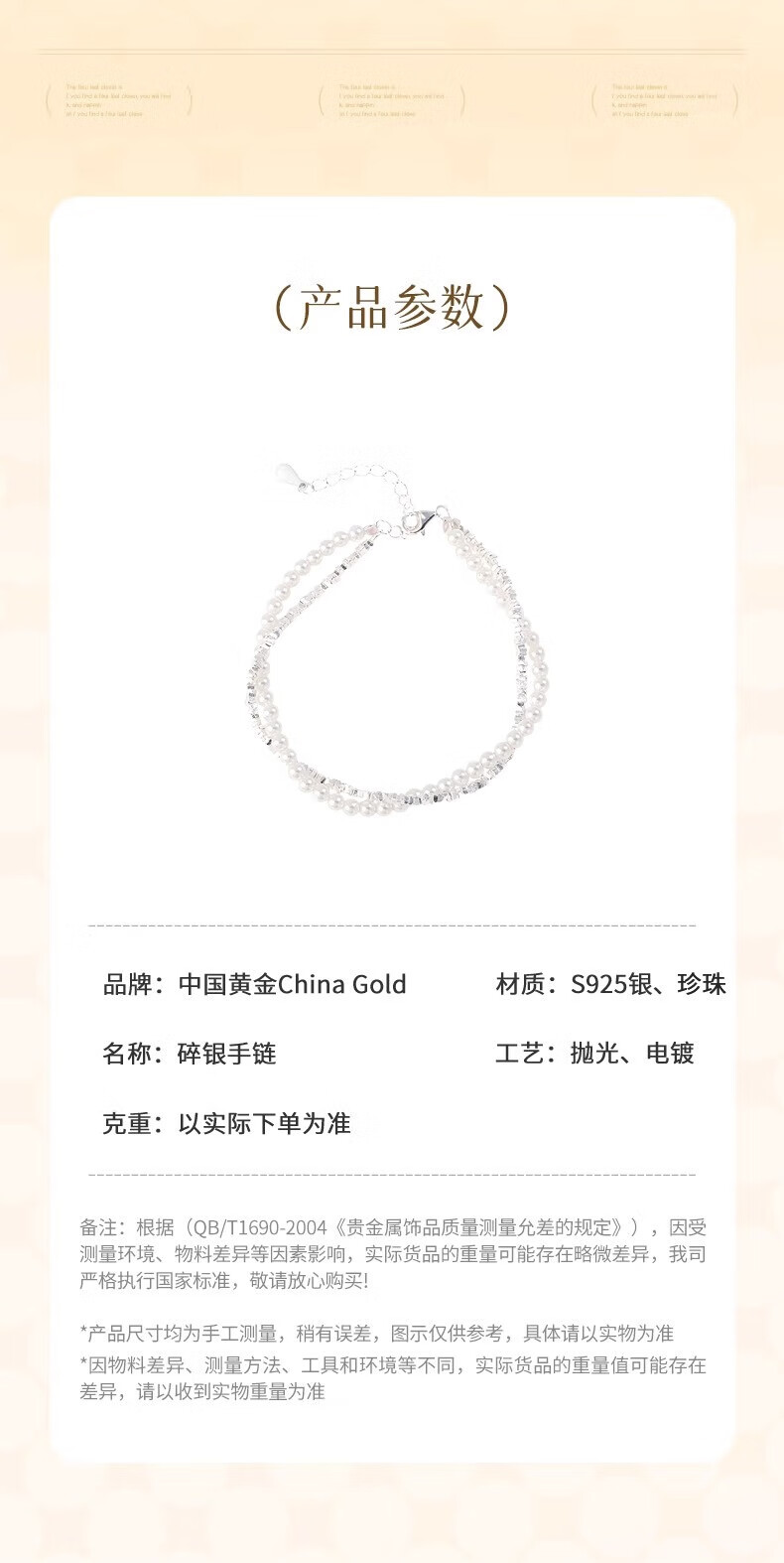 China Gold (CHINA GOLD) Pearl Bracelet Women's Broken Silver Bracelet Light Luxurious Broken Silver Bracelet Christmas Practical Birthday Gift for Girlfriend Send Girlfriend* Pearl Broken Silver Bracelet Brand Gift Box