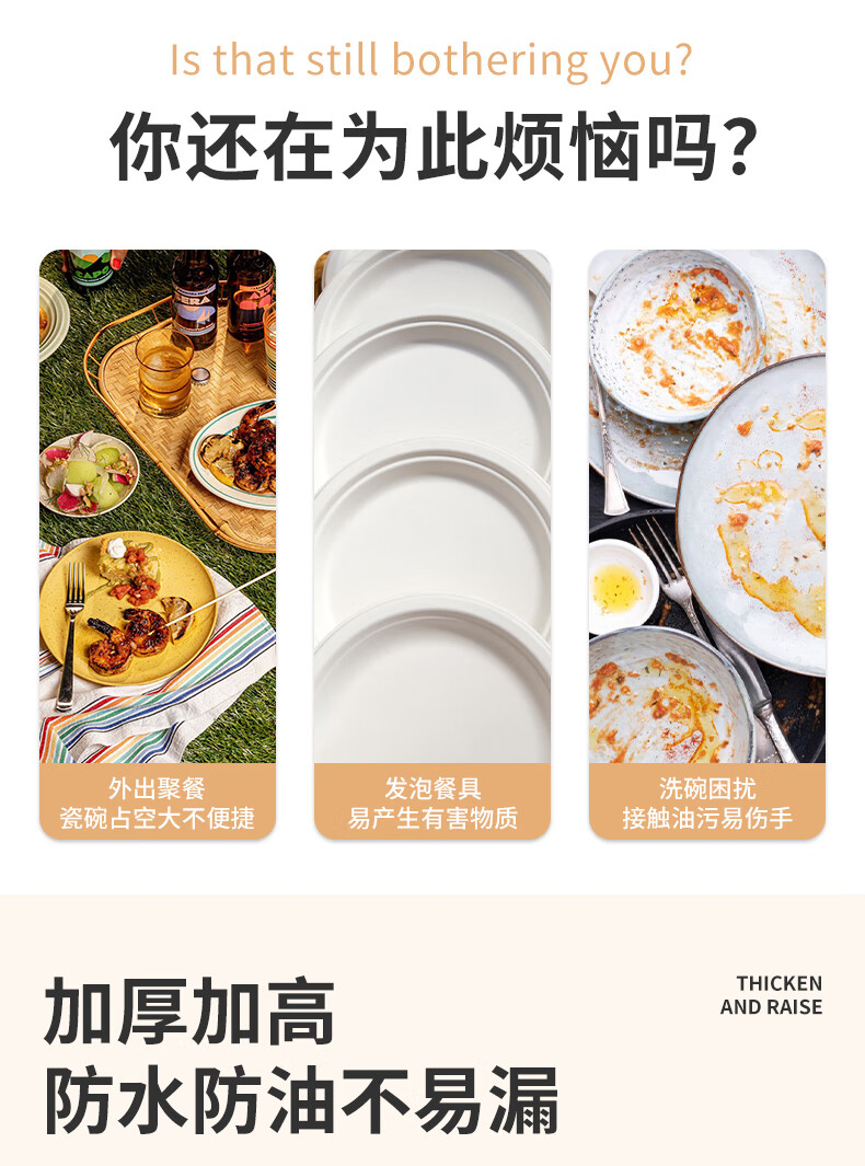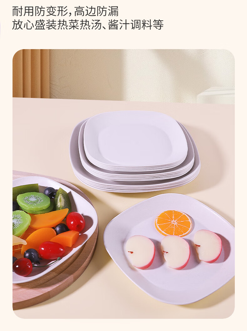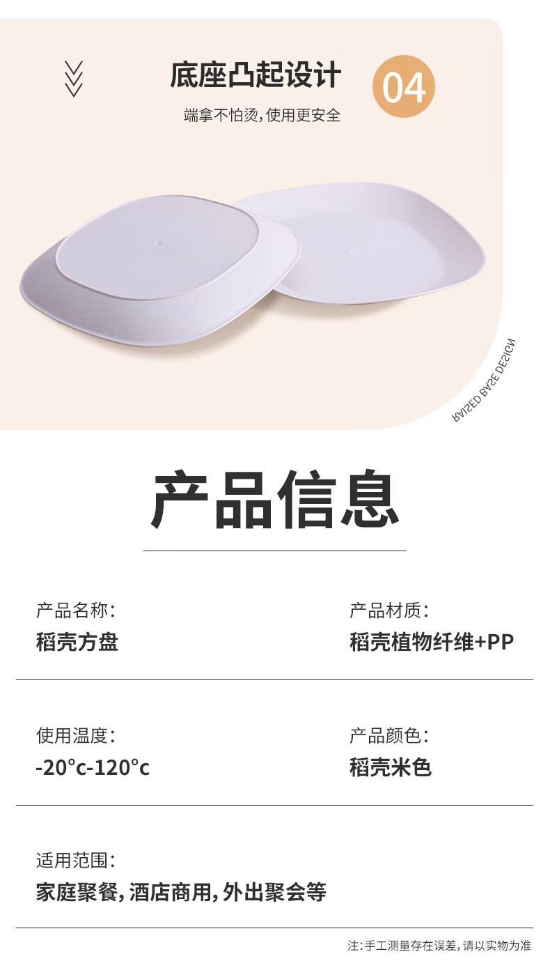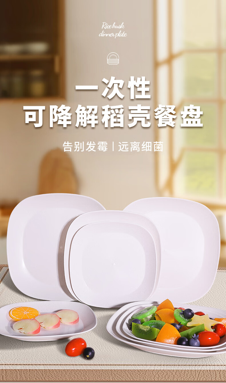 Rice husk disposable dinner plate square biodegradable thickened waterproof and oil-proof barbecue fruit disc camping picnic set 20 square plates