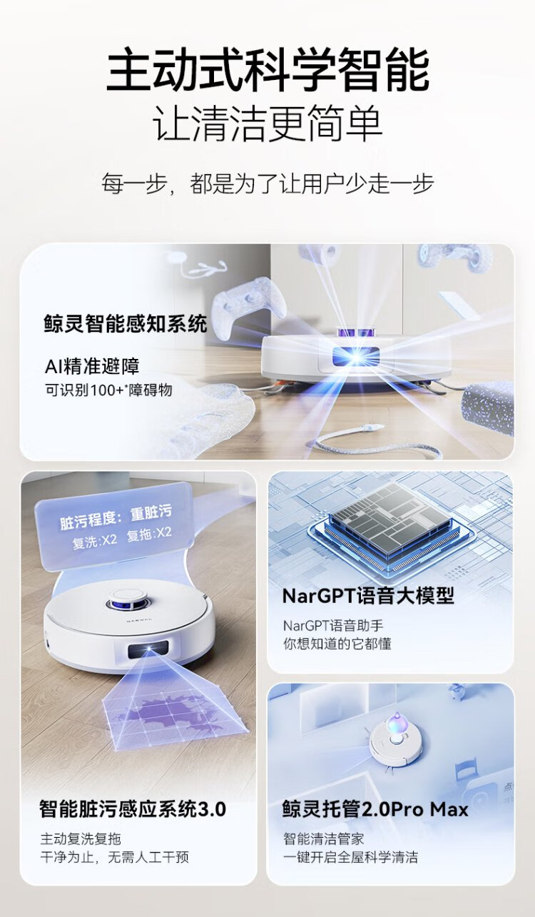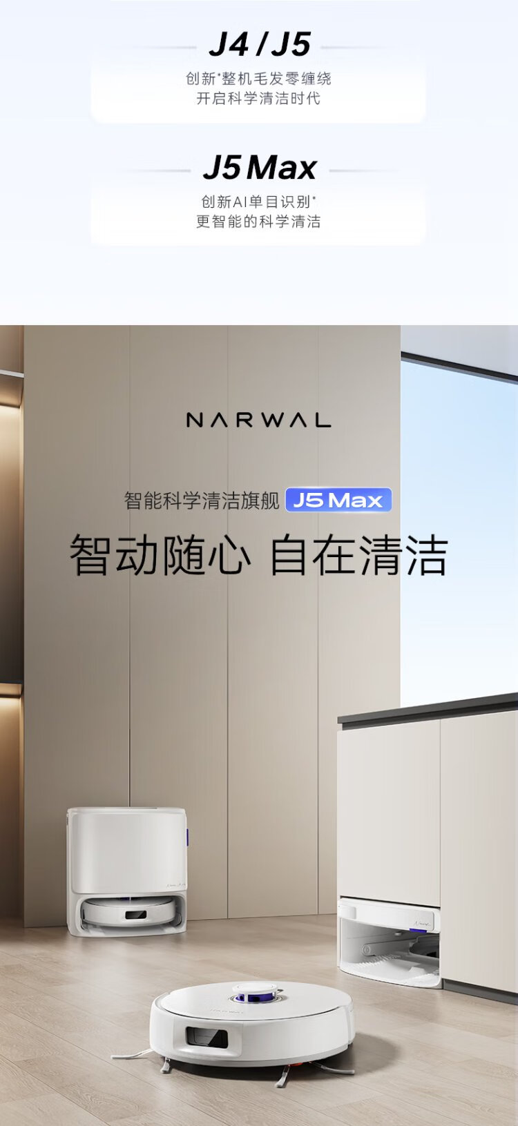NARWAL sweeping robot J5Max Intelligent sweeping and mopping all-in-one robot Sweeping and mopping in one, automatic cleaning, bionic hand extension for mopping, 0 winding, fully automatic floor mopping machine, new upgrade J5Max-water tank version