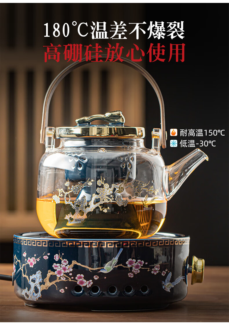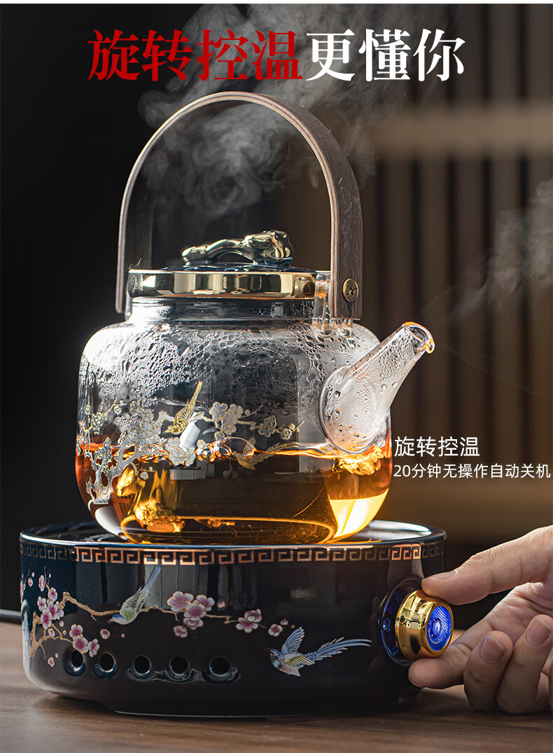 Miaopule high-end electric ceramic stove for tea making around the stove, glass tea making kettle, tea set, fully automatic for home use - square stove set - Jiqing Electrical appliances have a one-year warranty