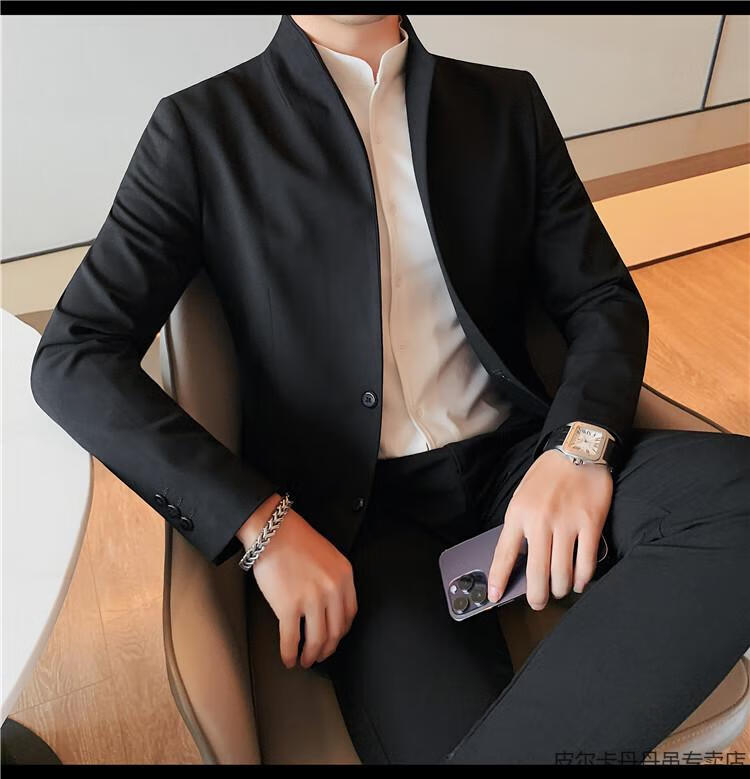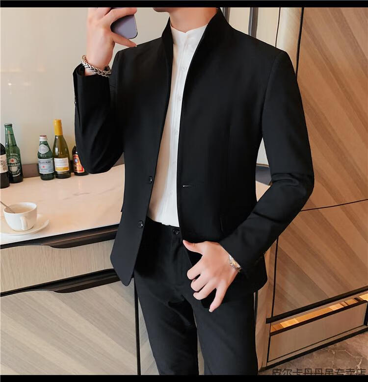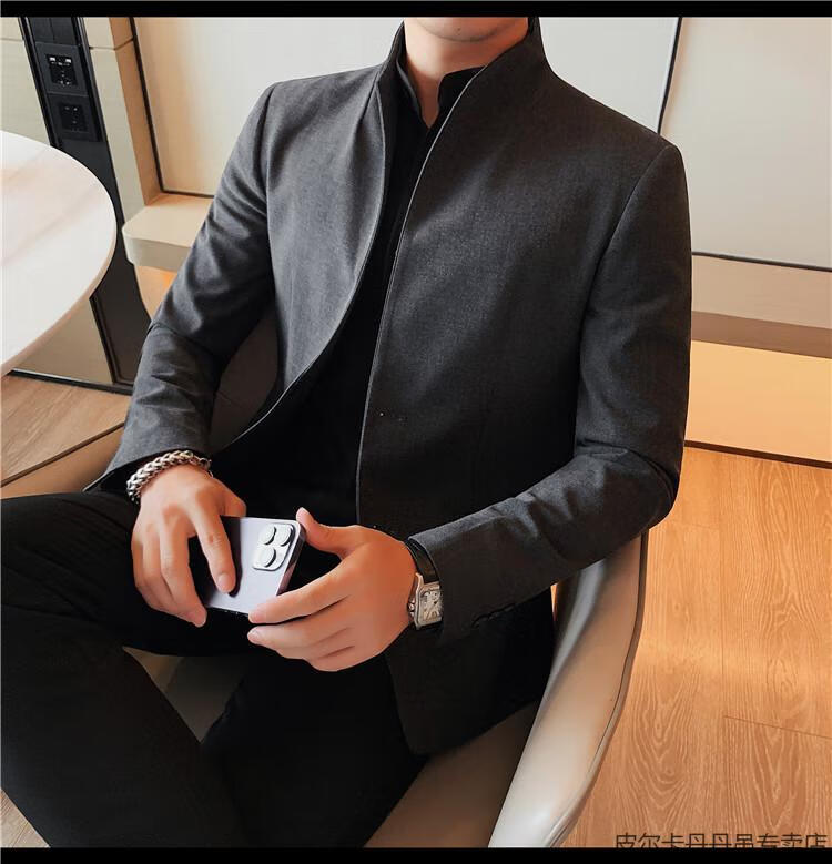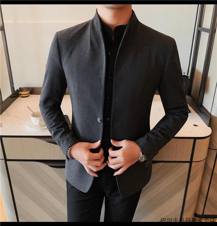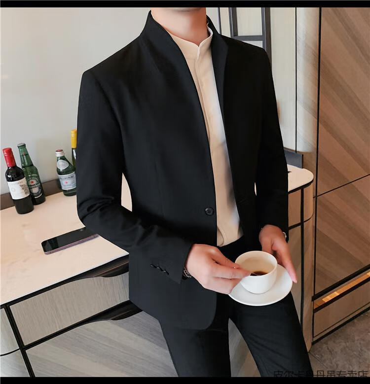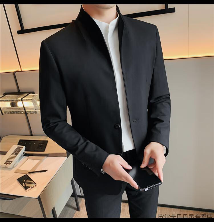 Pierre Cardin (pierre cardin) new Chinese tunic high-end jacket men's Korean style casual stand collar suit 2025 new improved spring top black XL 125-135Jin Jin is equal to about 0.5 kg