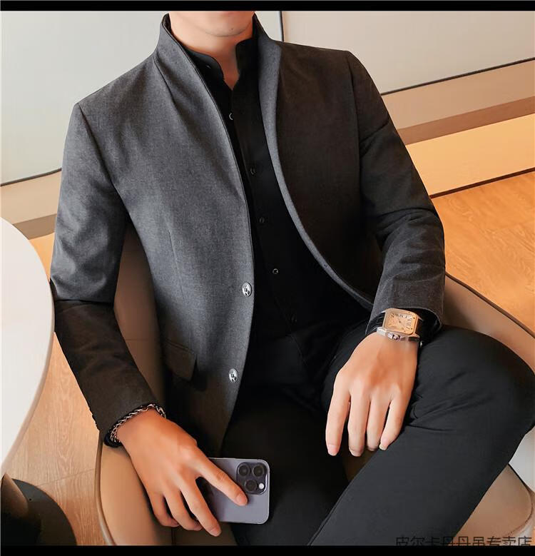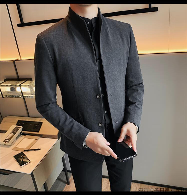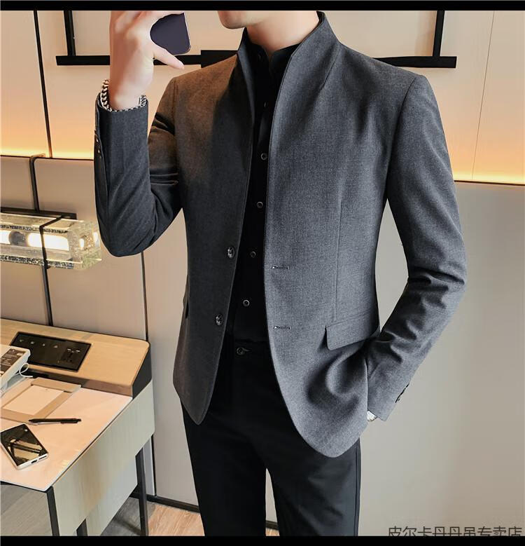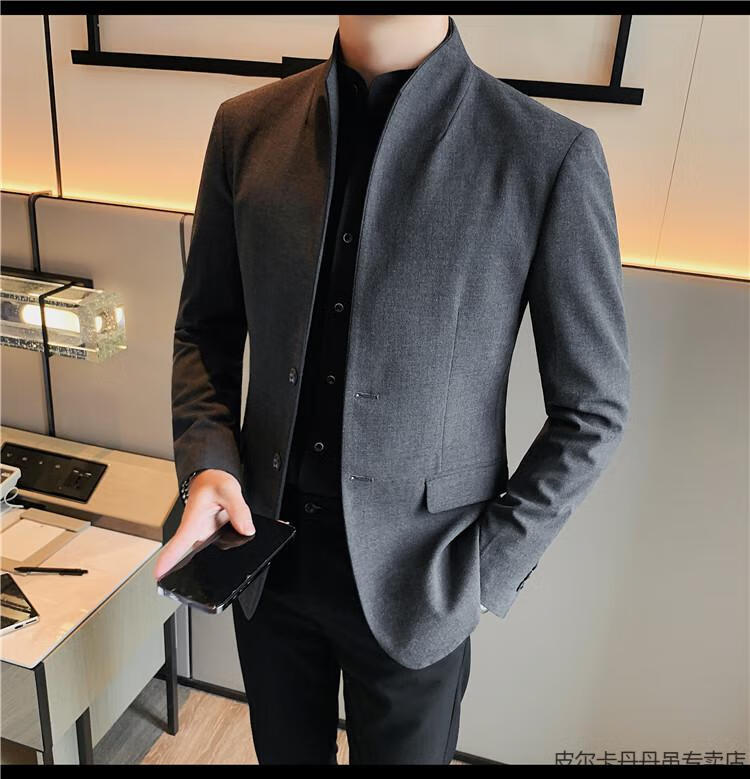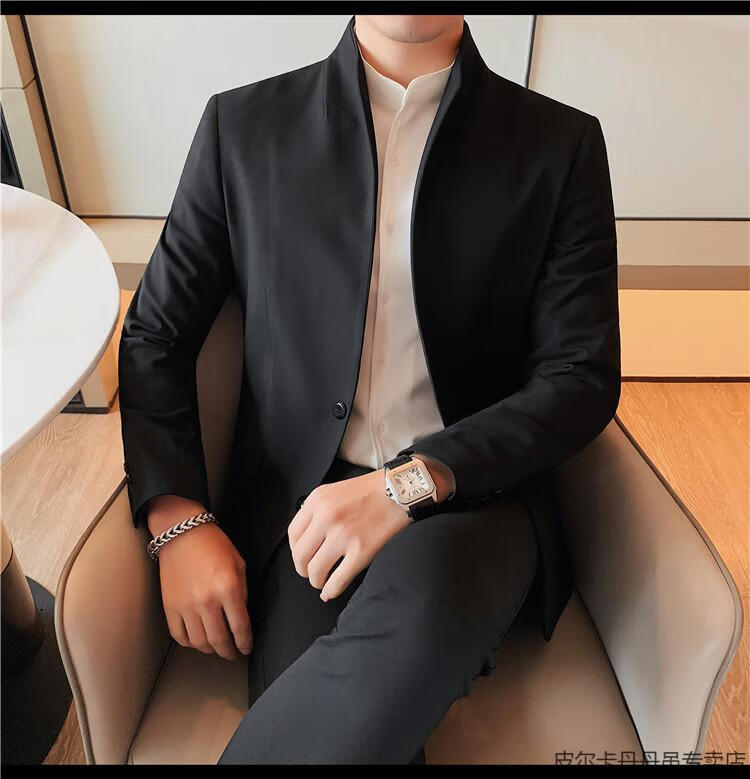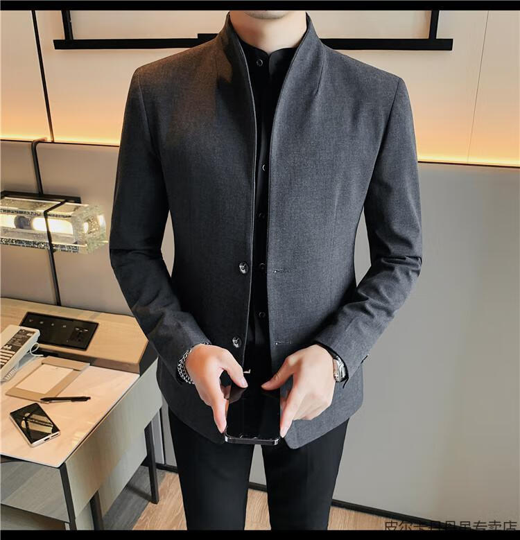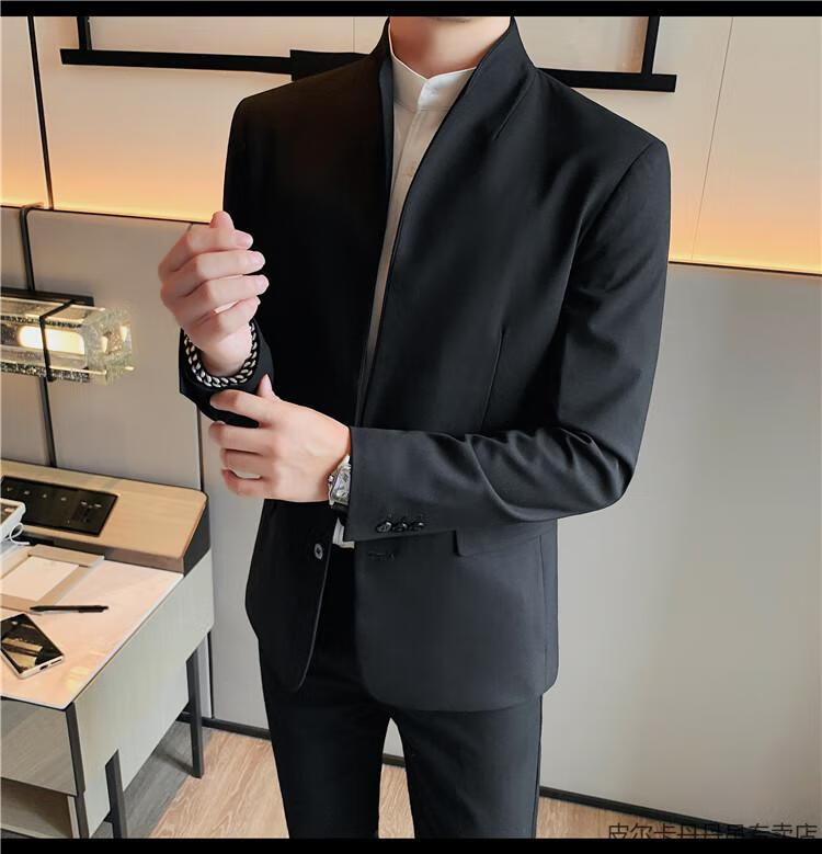 Pierre Cardin (pierre cardin) new Chinese tunic high-end jacket men's Korean style casual stand collar suit 2025 new improved spring top black XL 125-135Jin Jin is equal to about 0.5 kg