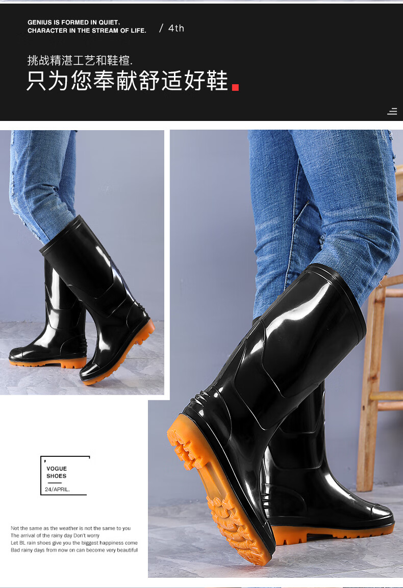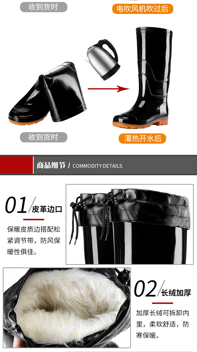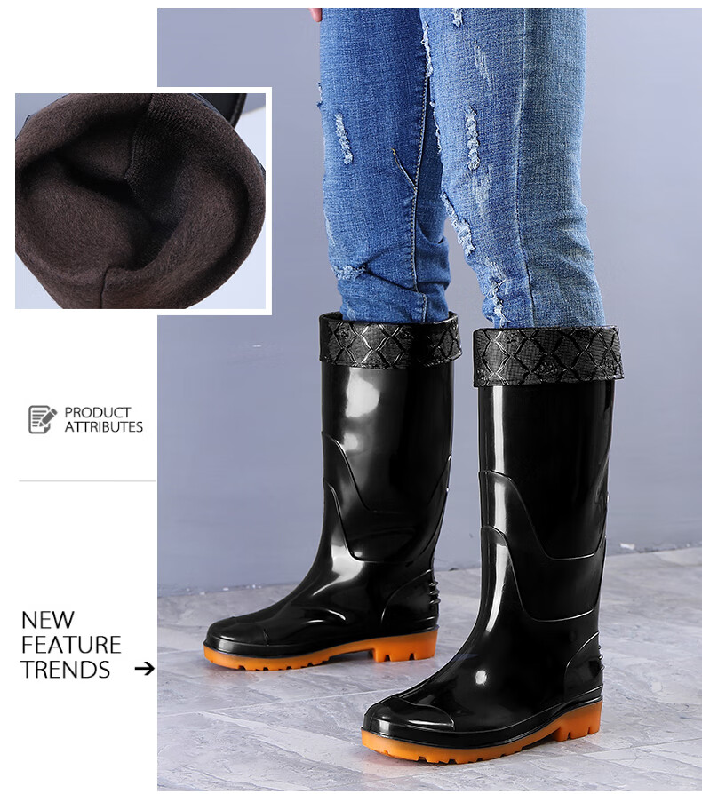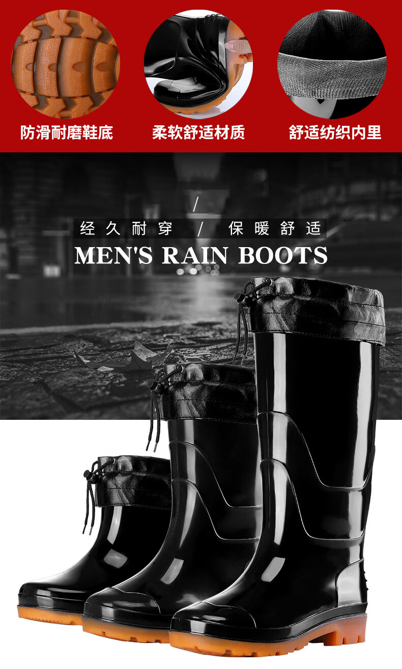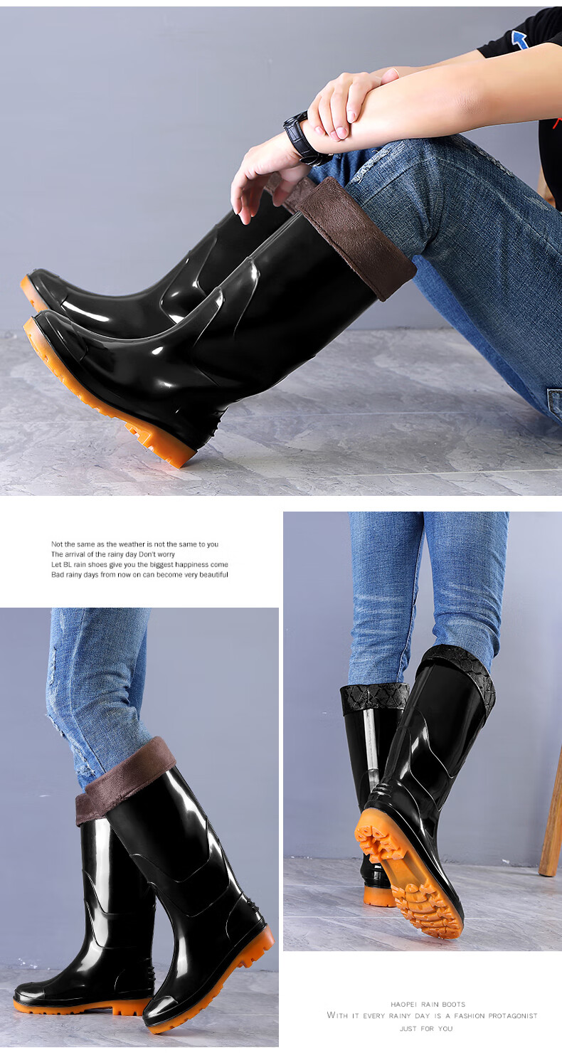 Men's rain boots, non-slip waterproof shoes, men's medium-high rain boots, fishing slip-ons, rubber shoes, water boots, labor protection rain boots, work shoes, P 139, high-tube tendon bottom-thick velvet 41