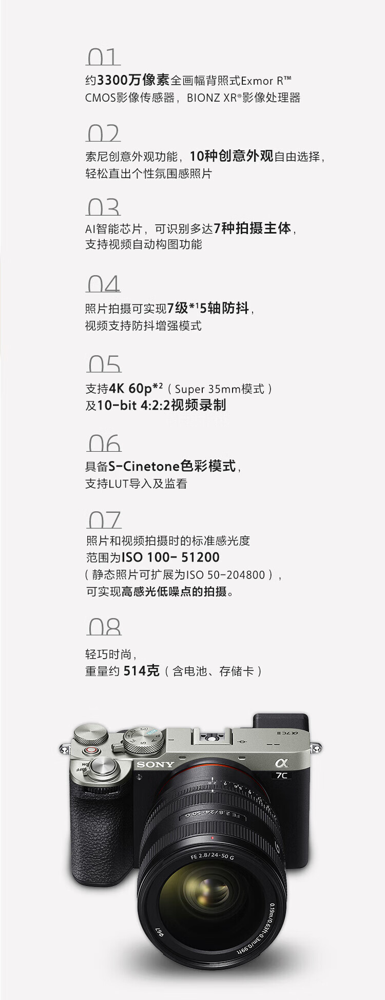 Sony (SONY) Alpha 7C II new generation full-frame dual image small 7 A7C2 A7C second generation A7Cii creative filter 7C2 single body silver official standard leather case + 128G card + battery + holder + bag + film