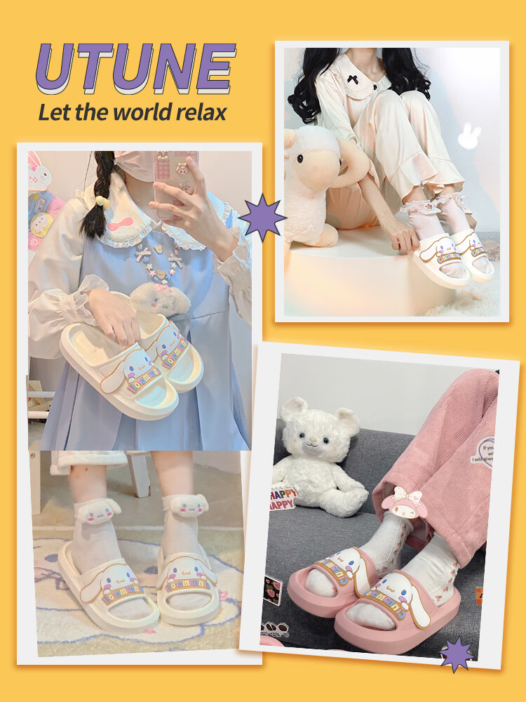 Youdiao Cinnamon Dog Sandals Summer Women's Cute Big Ear Youdiao Home Indoor Sanrio Children's Student Dormitory Cream White (Big Eared Dog Three-dimensional Style) 35-36 (