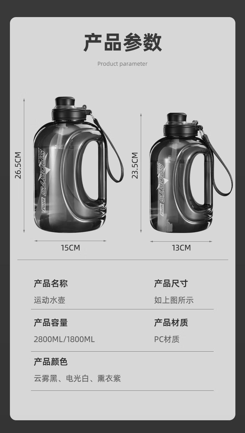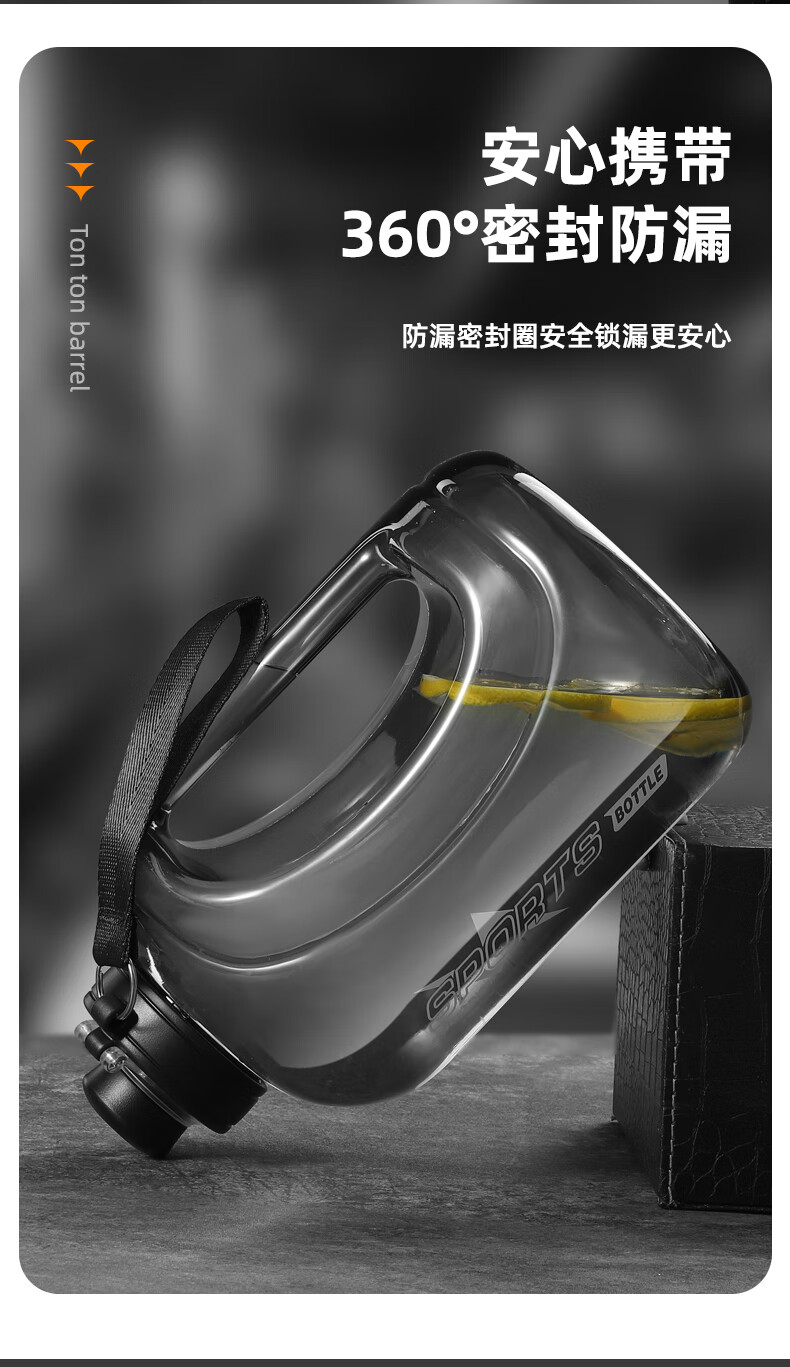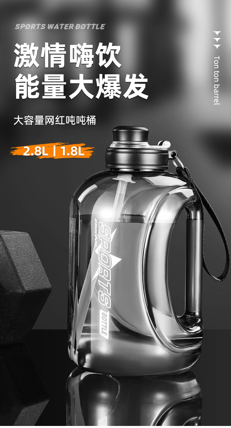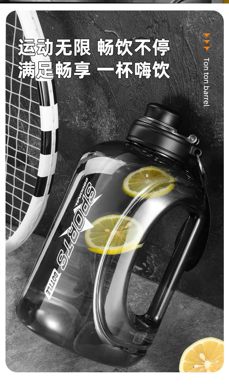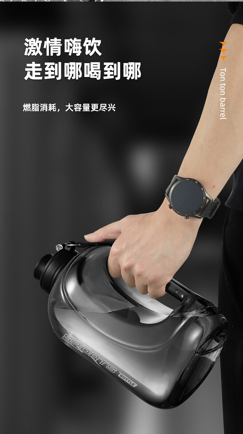 Glosome super large capacity ton ton ton ton bucket men's sports fitness high temperature resistant large kettle portable outdoor tea cup space cup obsidian black 1800ml