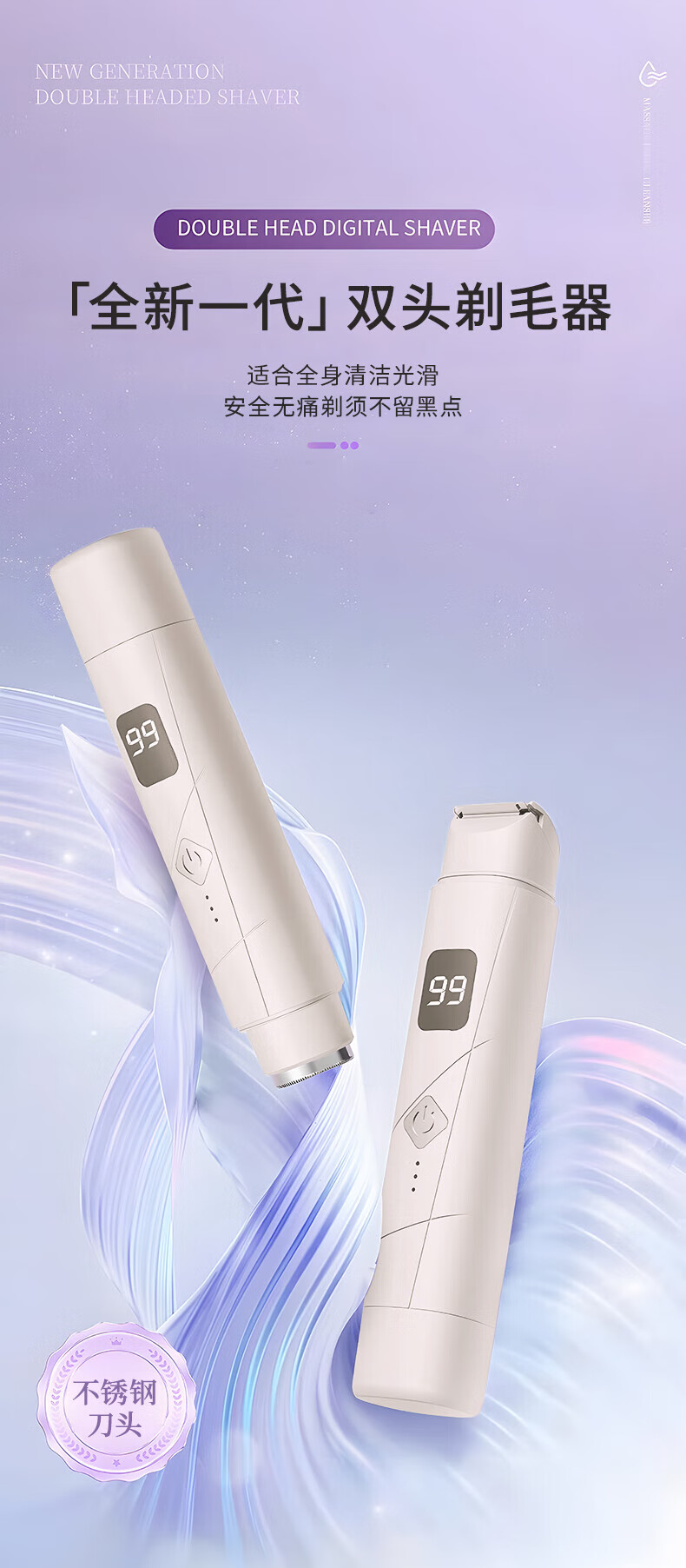 RASW German brand vaginal shaver private parts electric shaver double-headed shaver washable leg hair armpit hair bikini private double-headed male and female vaginal shaver