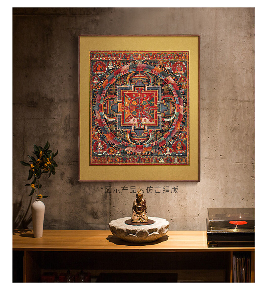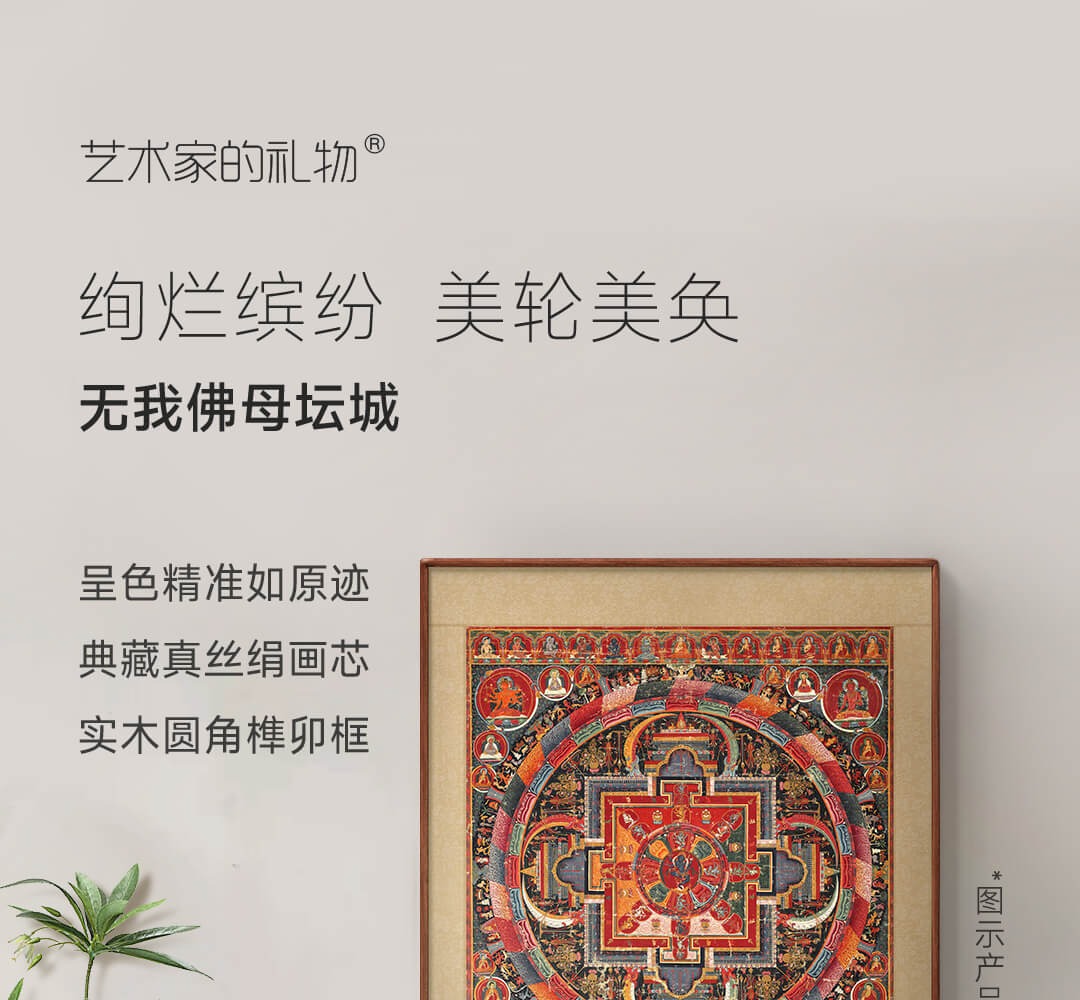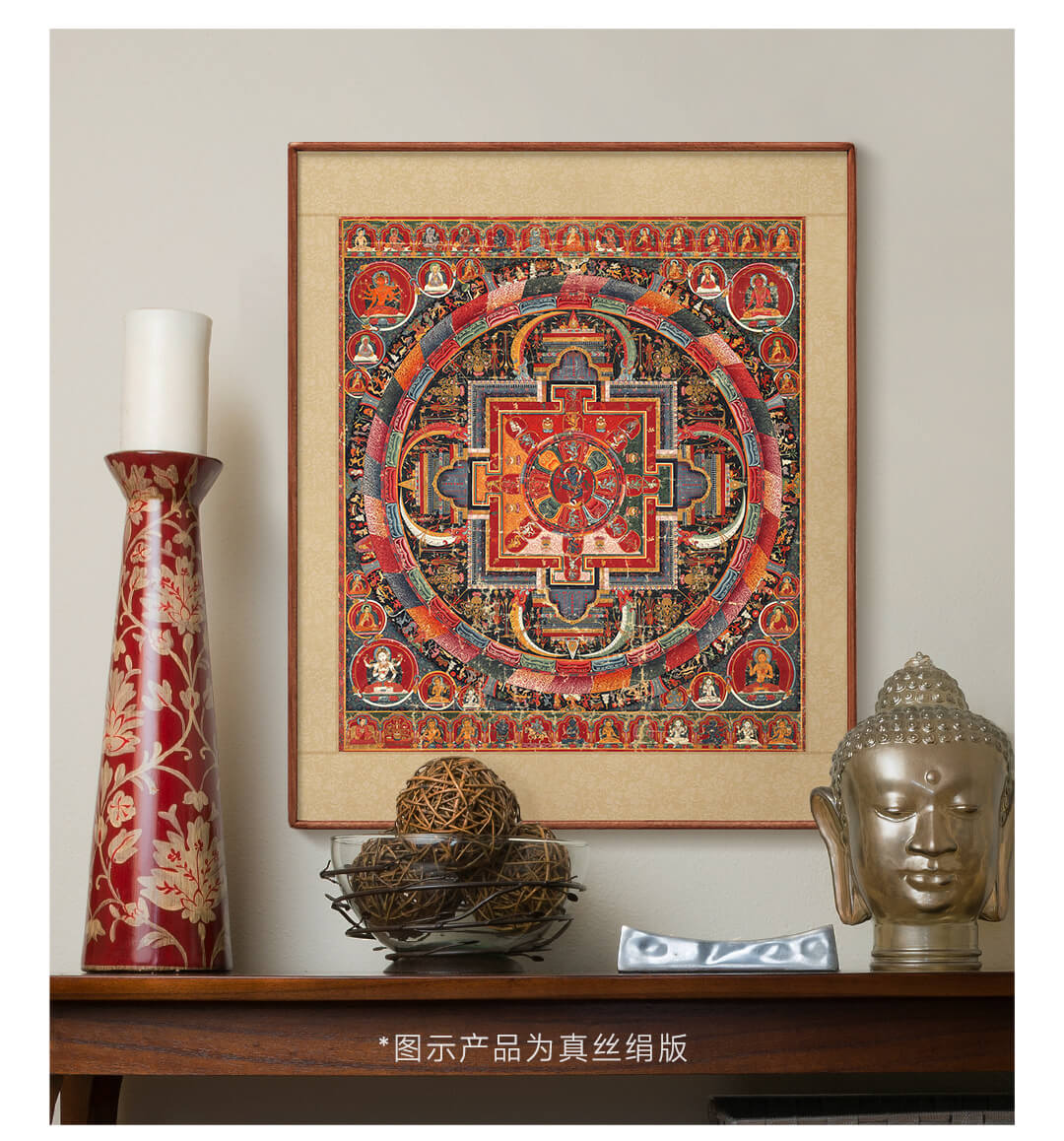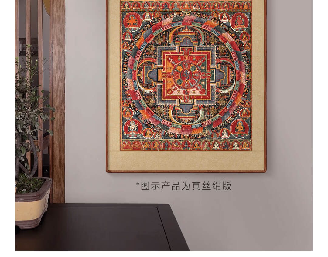 Artist's Gift Yuan Dynasty Thangka Selfless Buddha Mother Mandala Prints Living Room Decoration Paintings Buddhist Hall Paintings Study Hanging Paintings Ancient Style Murals Antique Silk Print - Size M 70*58cm
