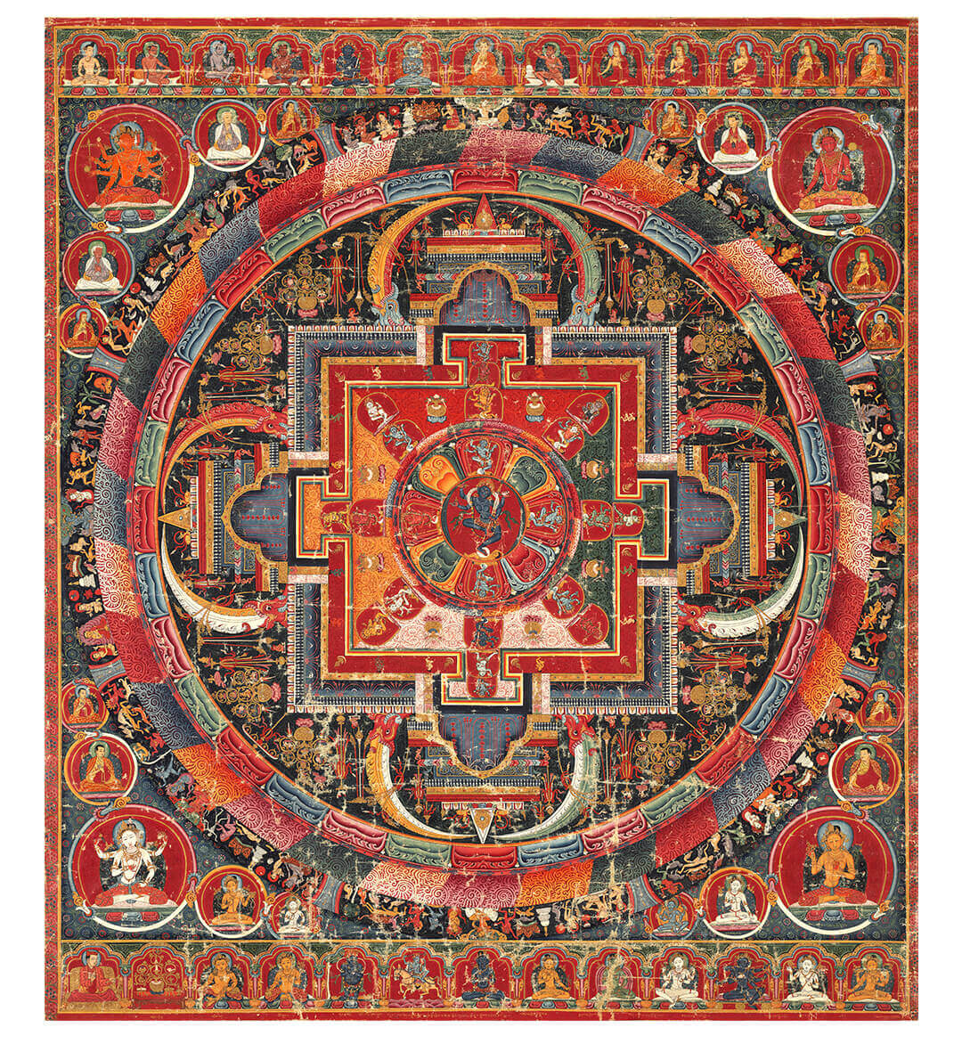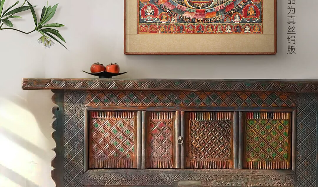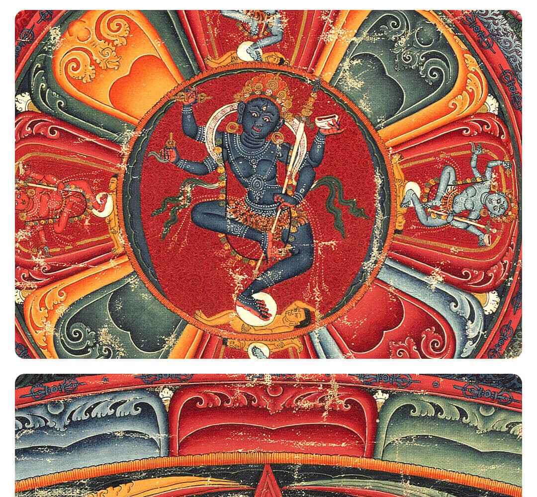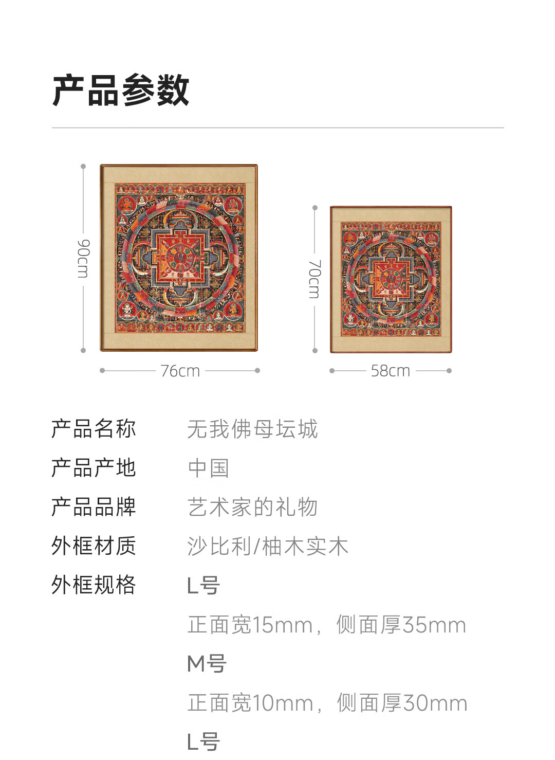 Artist's Gift Yuan Dynasty Thangka Selfless Buddha Mother Mandala Prints Living Room Decoration Paintings Buddhist Hall Paintings Study Hanging Paintings Ancient Style Murals Antique Silk Print - Size M 70*58cm