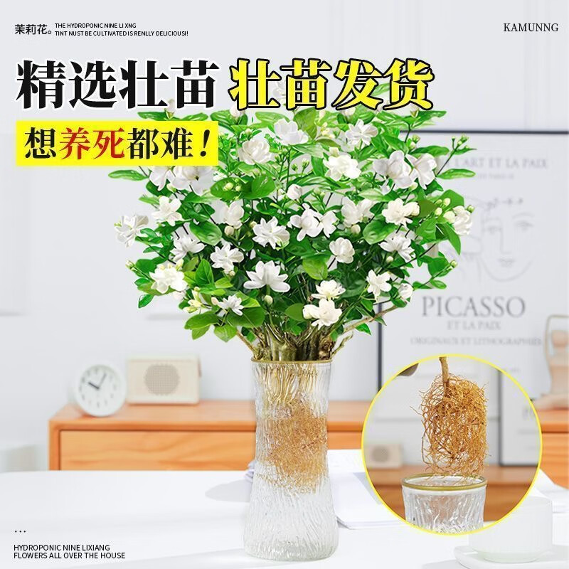 Purify the air, potted jasmine with strong fragrance, indoor hydroponics, repellent mosquitoes, good for growing green plants and flowers in all seasons, recommended model, 15 days of fragrance, 6 jasmines, more fragrant than perfume, blooming in all seasons, mosquito repellent, strong fragrance, A-grade jasmine