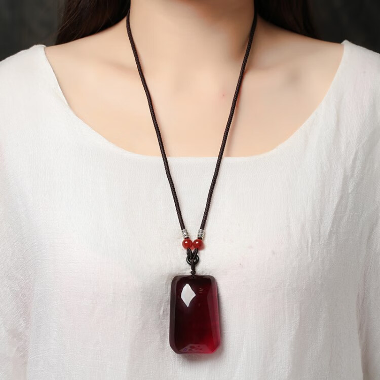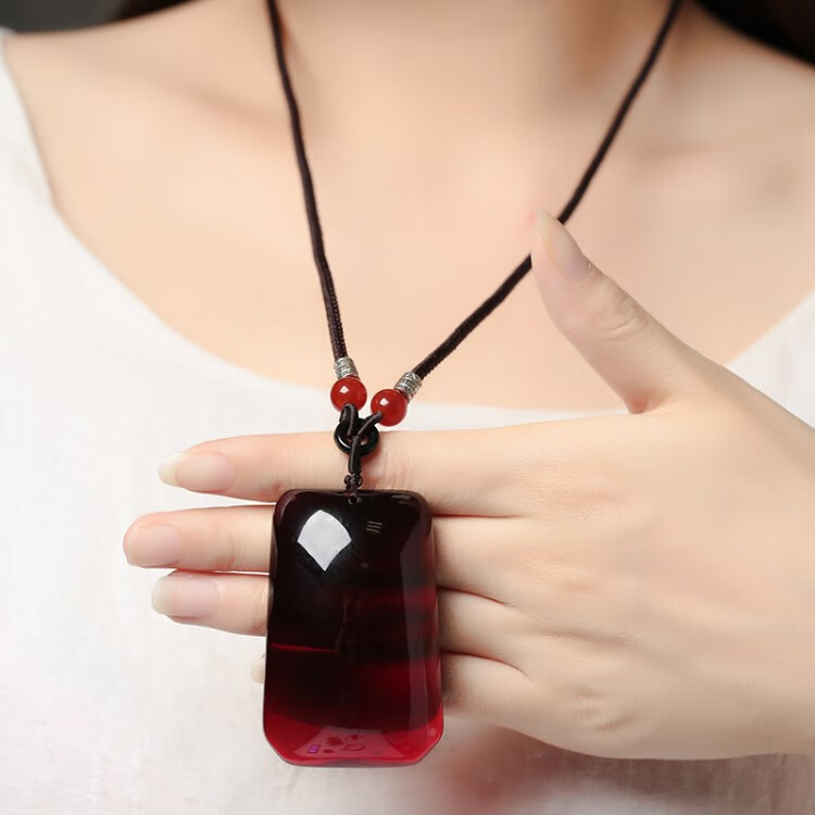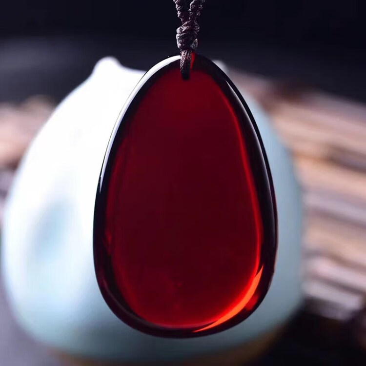 Olevo Baltic Sea blood amber beeswax Wushi brand water droplet blood amber pendant wine red necklace for men and women A type