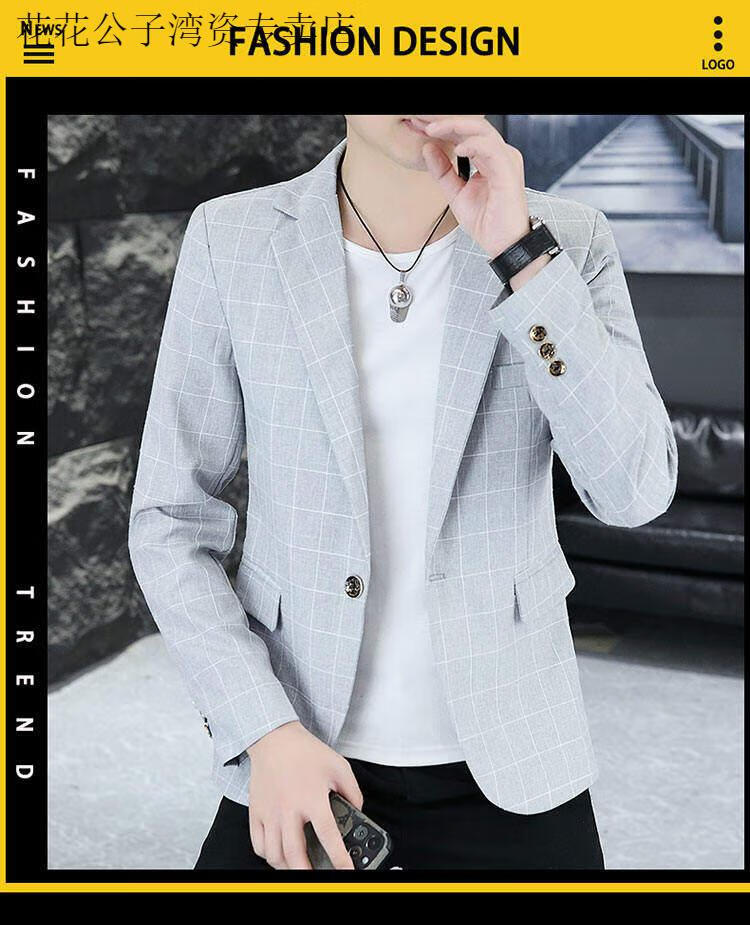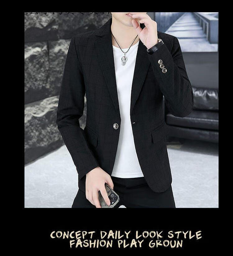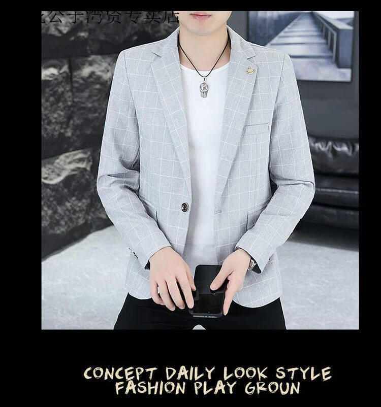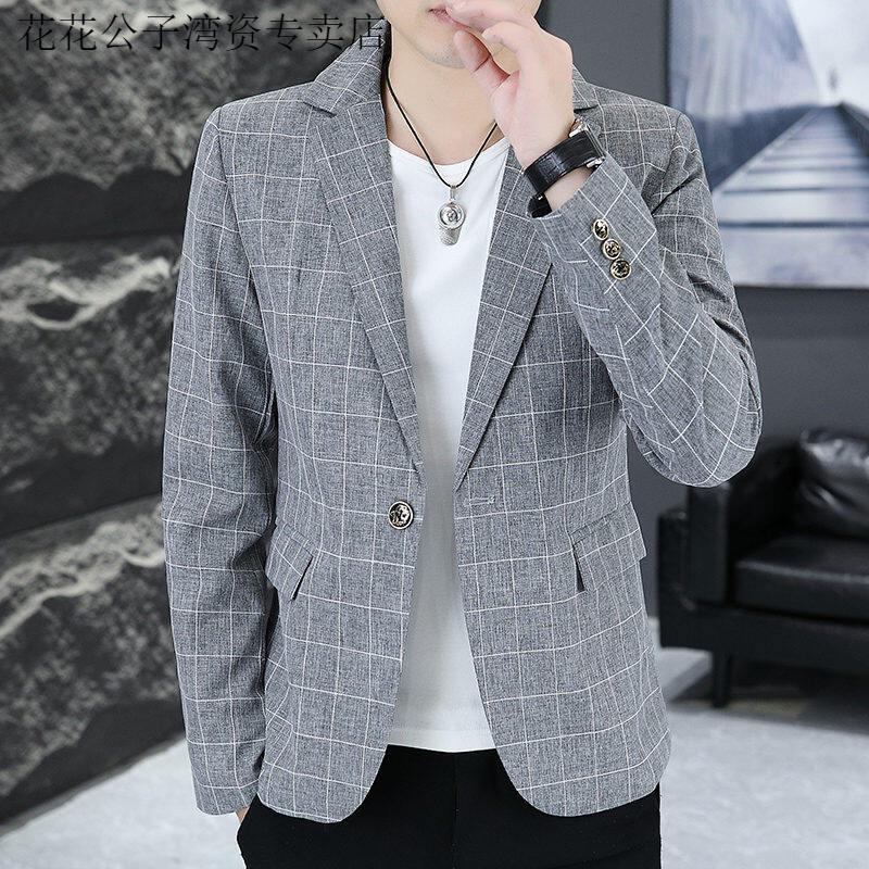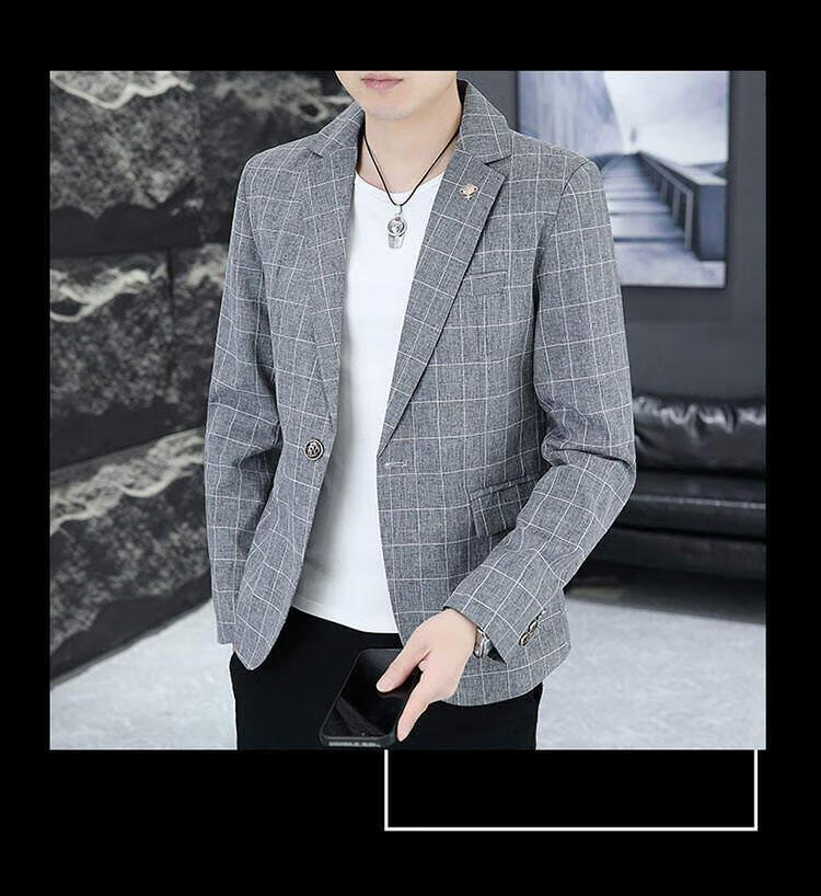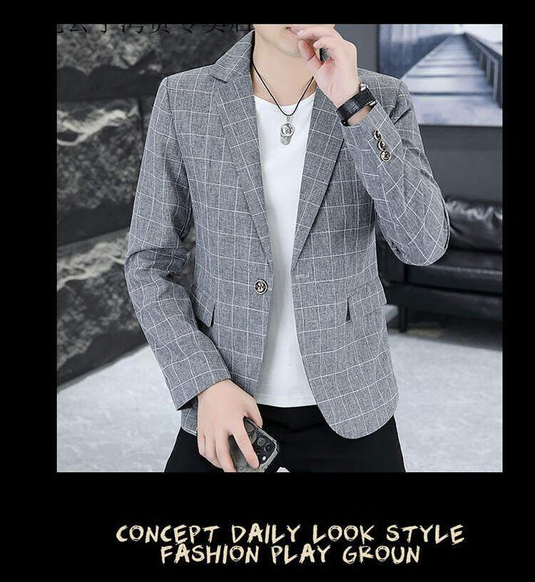 Playboy (PLAYBOY) Plaid Suit Men's Korean Style Trendy Handsome Casual Jacket New Spring Korean Style Personalized Small Suit Outer Clothes XF8815 Dark Gray L (105-120Jin Jin equals 0.5 kg)