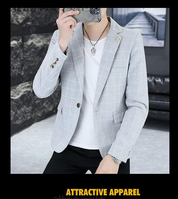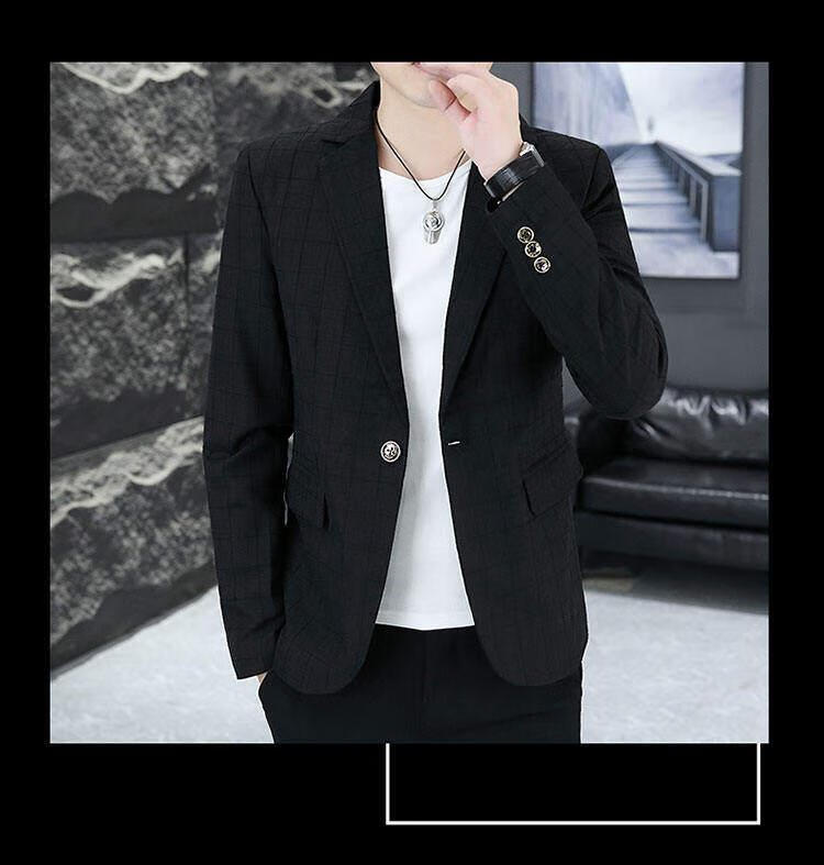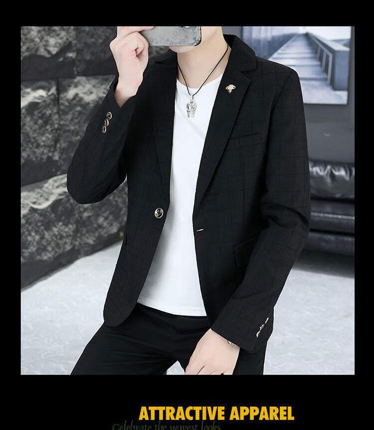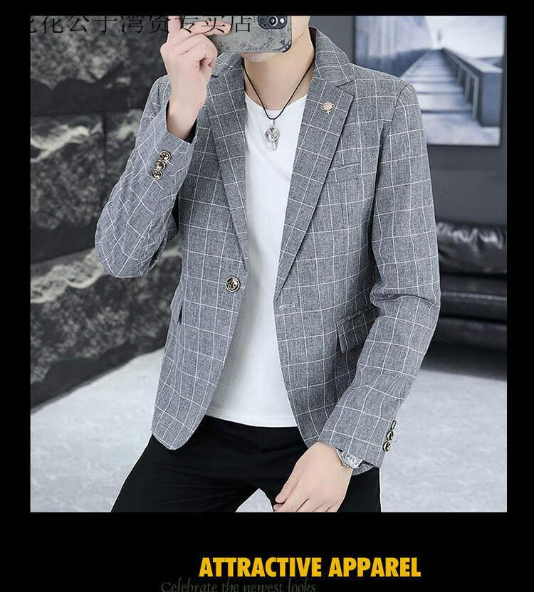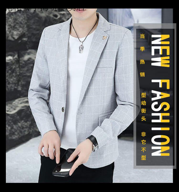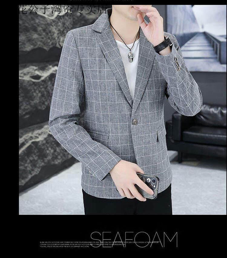 Playboy (PLAYBOY) Plaid Suit Men's Korean Style Trendy Handsome Casual Jacket New Spring Korean Style Personalized Small Suit Outer Clothes XF8815 Dark Gray L (105-120Jin Jin equals 0.5 kg)
