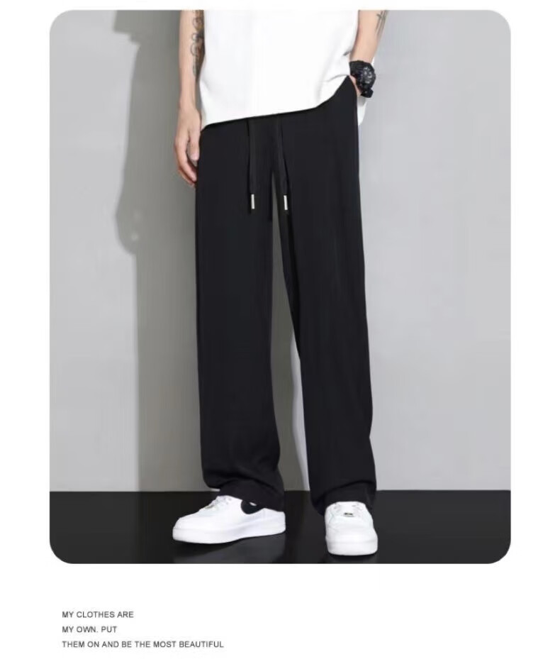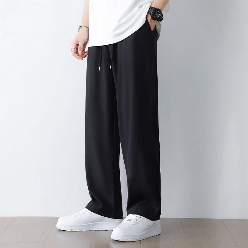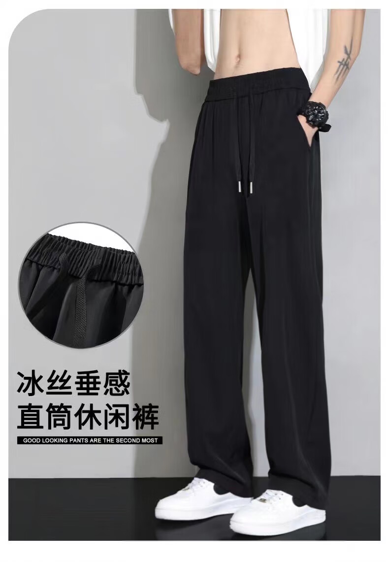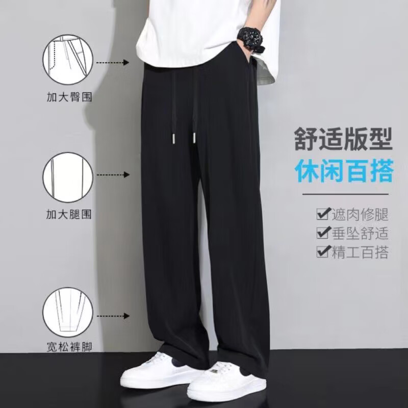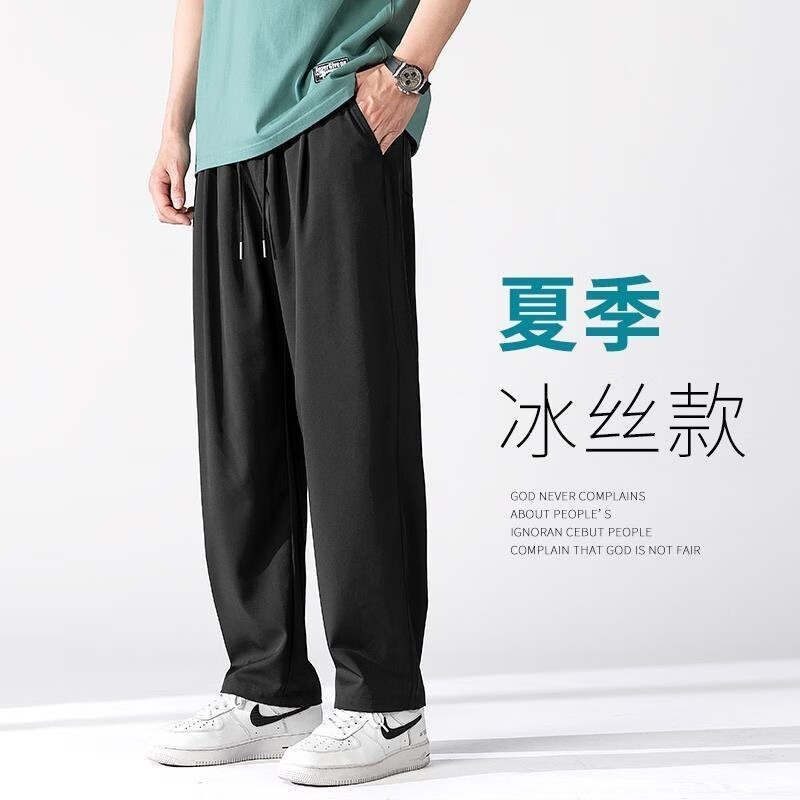 Pants men's 2025 new casual versatile loose straight pants summer ice silk quick-drying sports wide-leg men's pants black 2XL