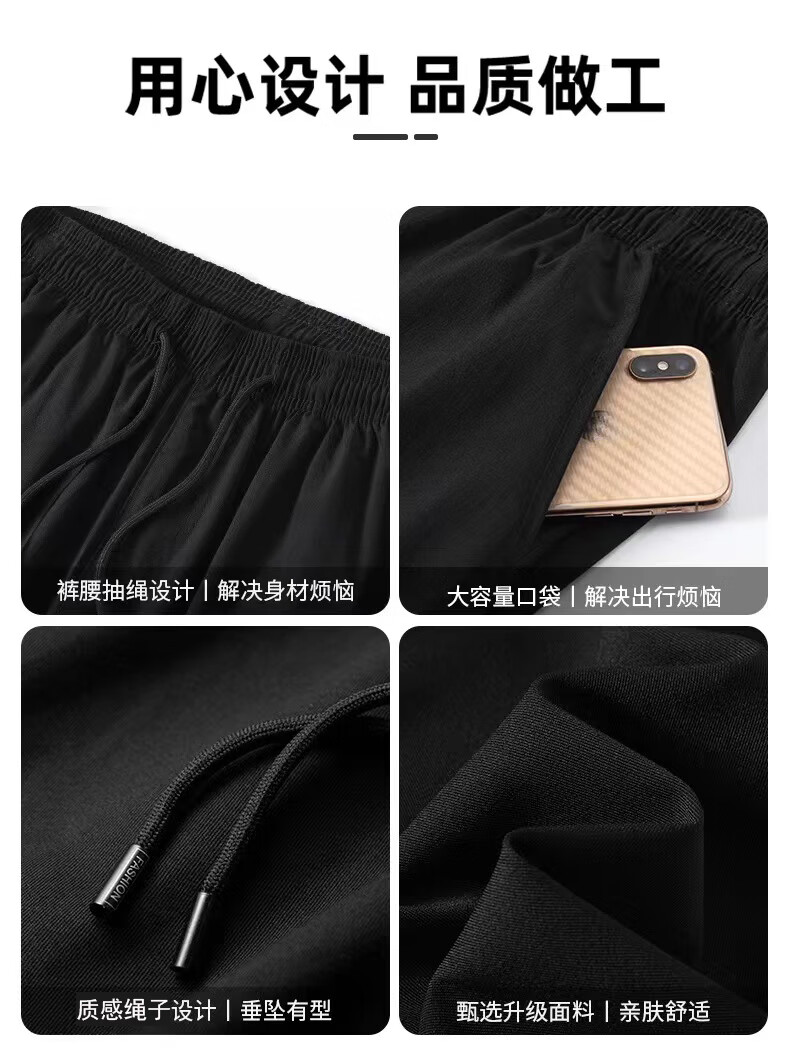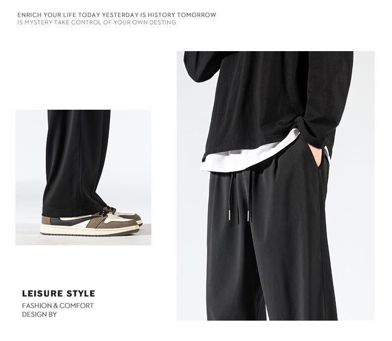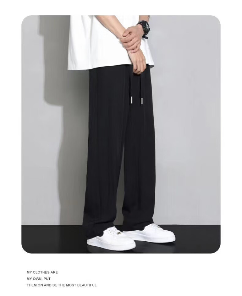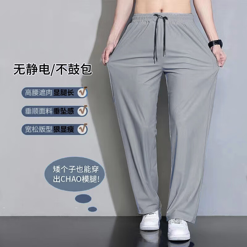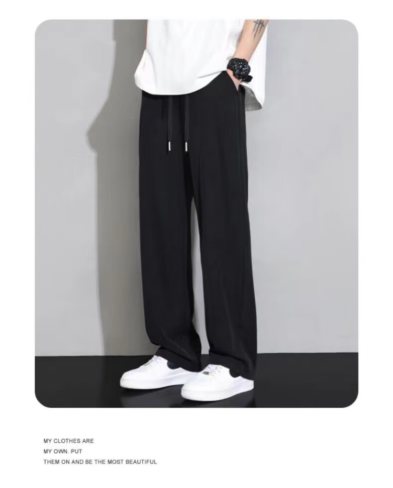 Pants men's 2025 new casual versatile loose straight pants summer ice silk quick-drying sports wide-leg men's pants black 2XL