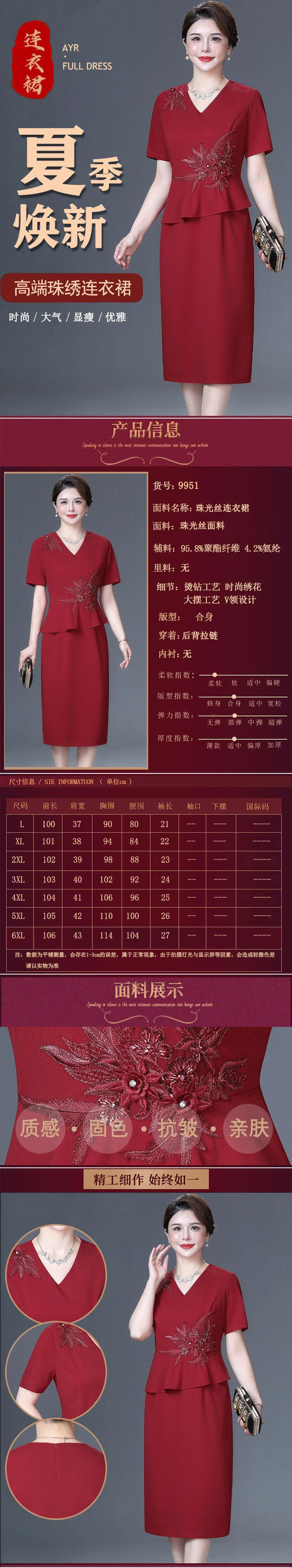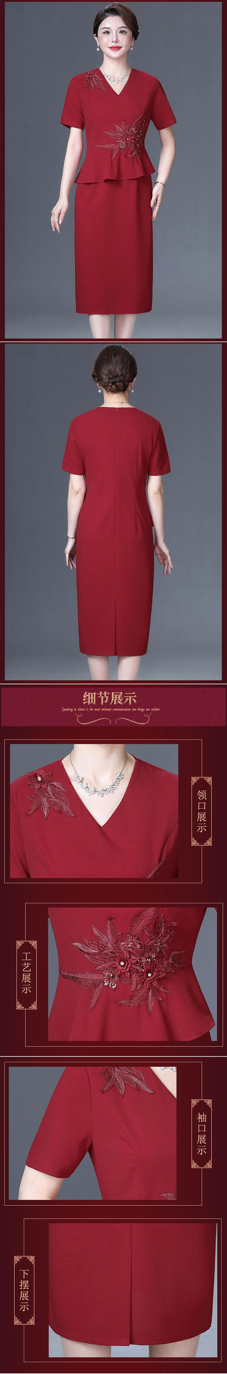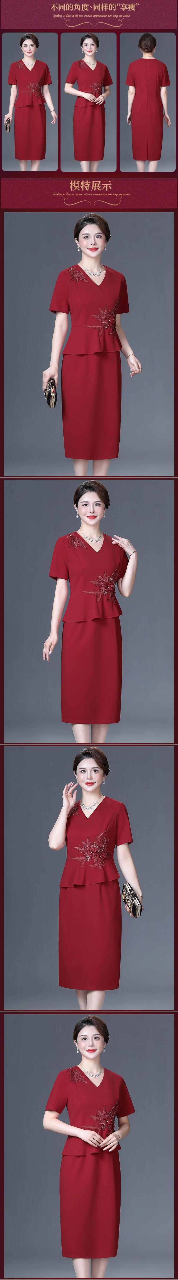 Saimandie Groom's Mother Wedding Banquet High-end Dress for Mother-in-Law Summer Noble Fake Two-piece Dress Large Size for Daily Wear Burgundy 4XL Recommended 135-147 Jin Jin equals 0.5 kg Wear left and right