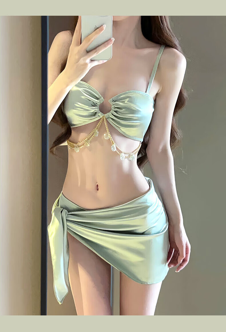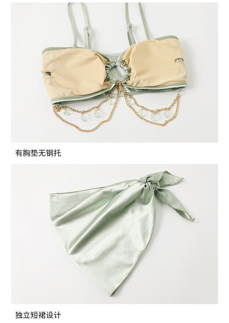 Juke swimsuit women's bikini hot spring sexy pure desire slimming fresh style pool beach swimsuit three-piece set light green bikini 3-piece set L 90-110Jin Jin equals 0.5 kg