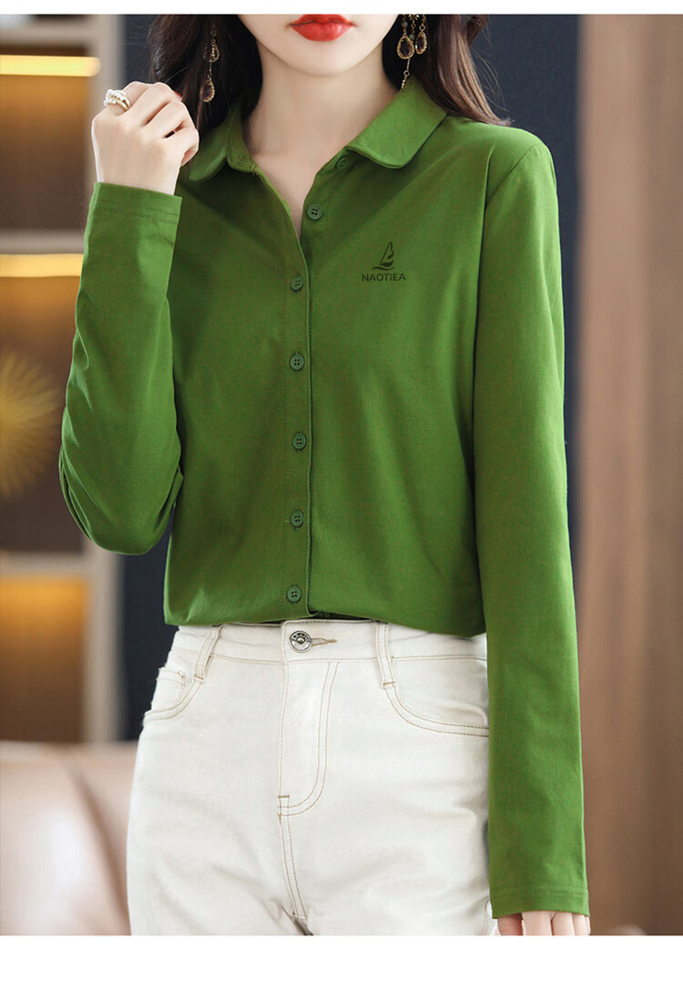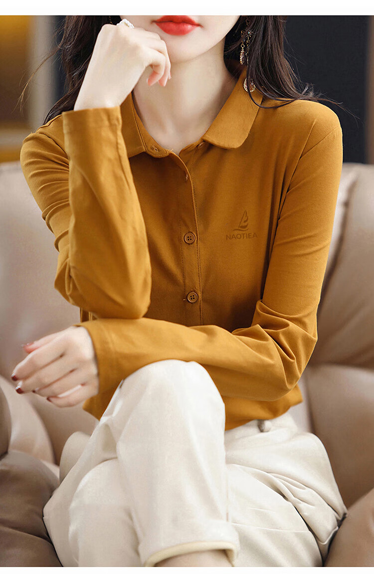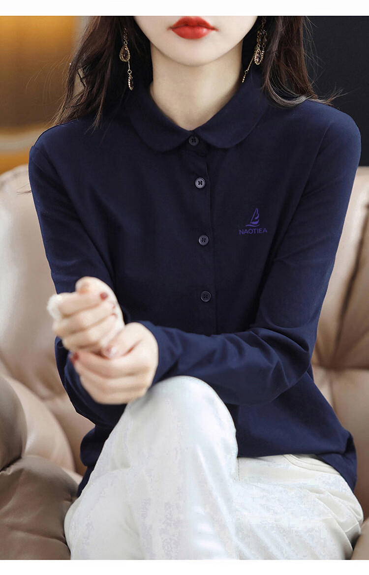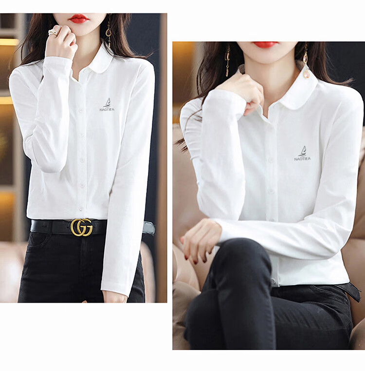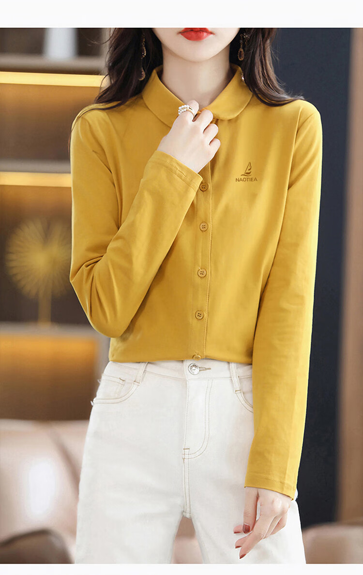 NAOTIEA Italian Sailboat Lapel Long Sleeve POLO Cardigan Women's 2025 Autumn and Winter New Brand Bottoming Top White L (Recommended 100-115 Jin Jin equals 0.5 kg)