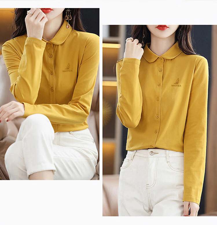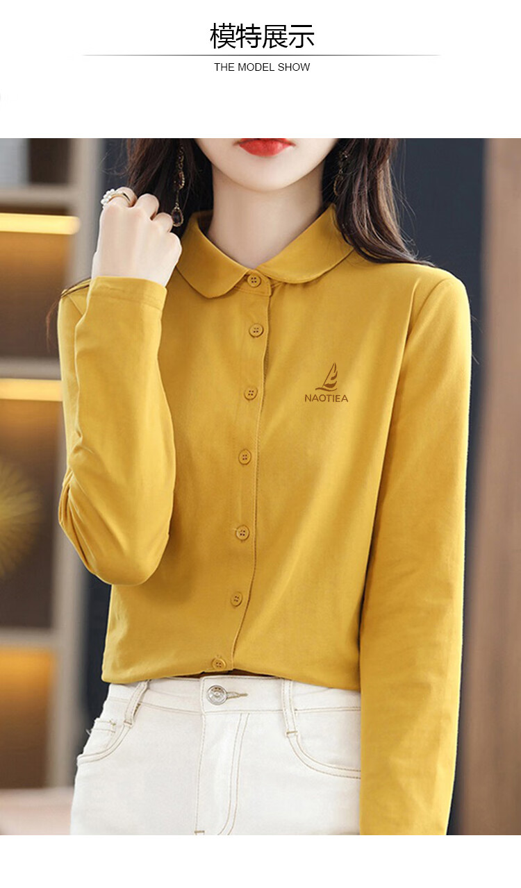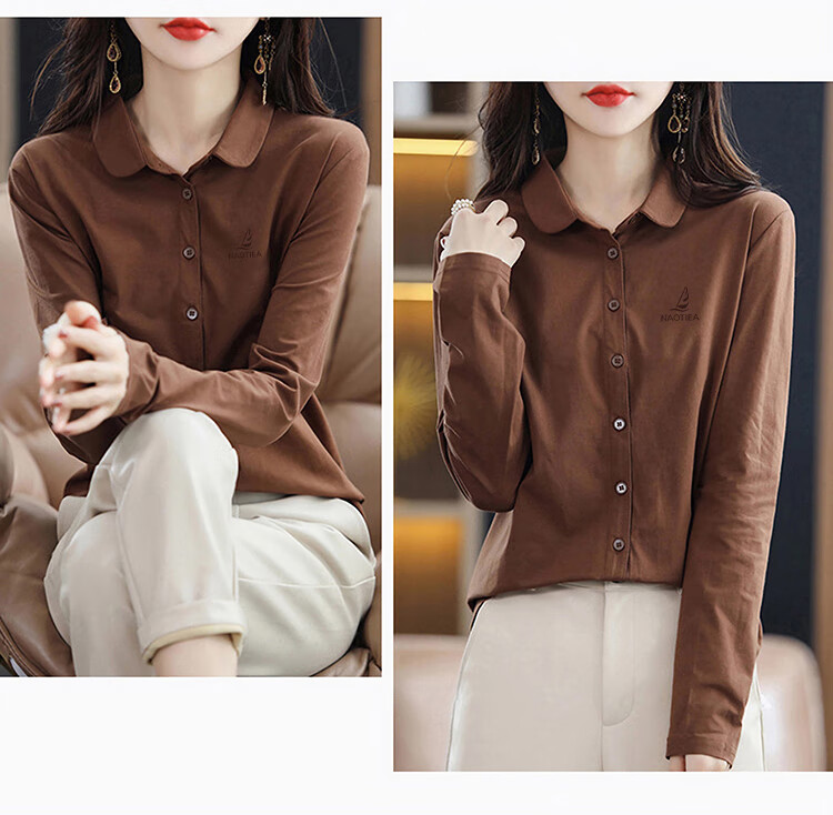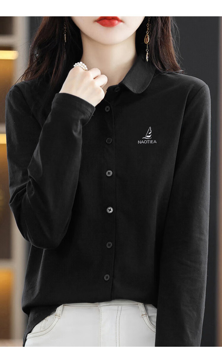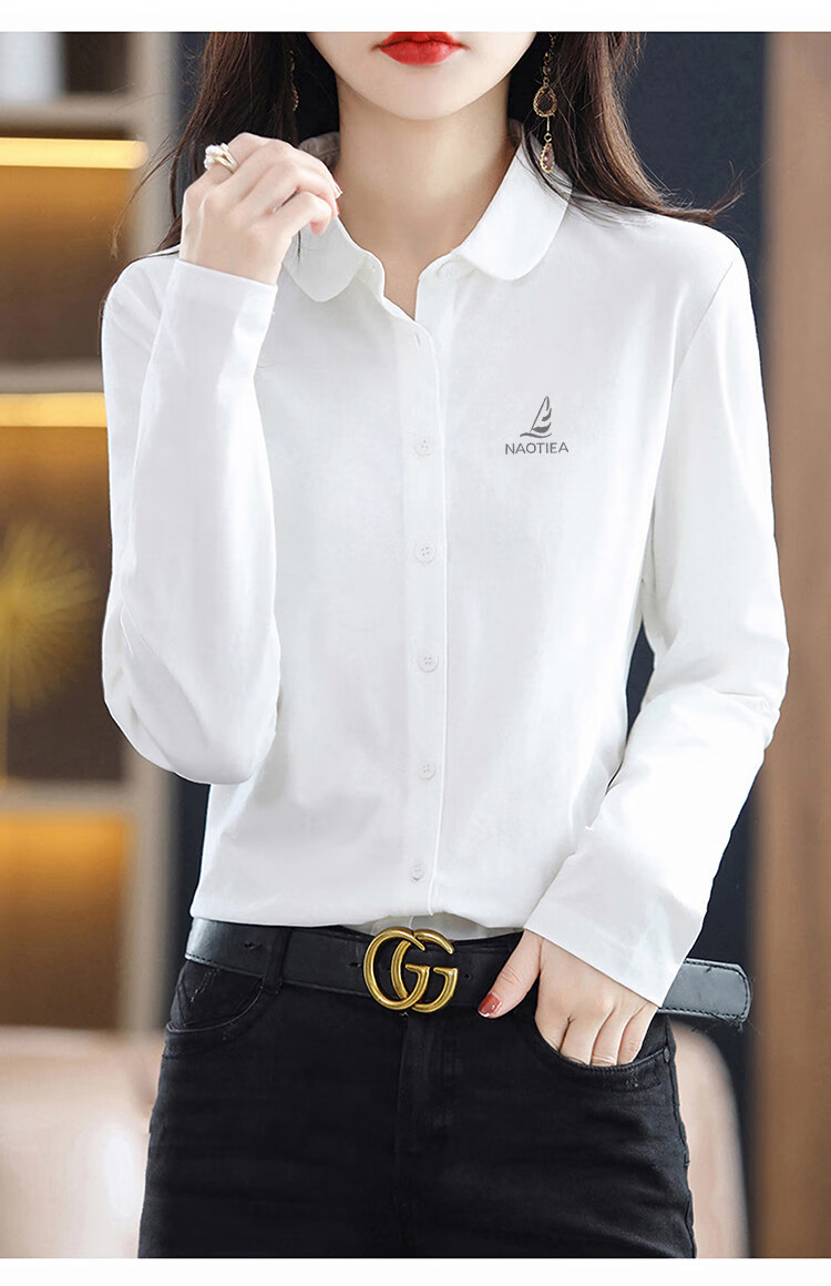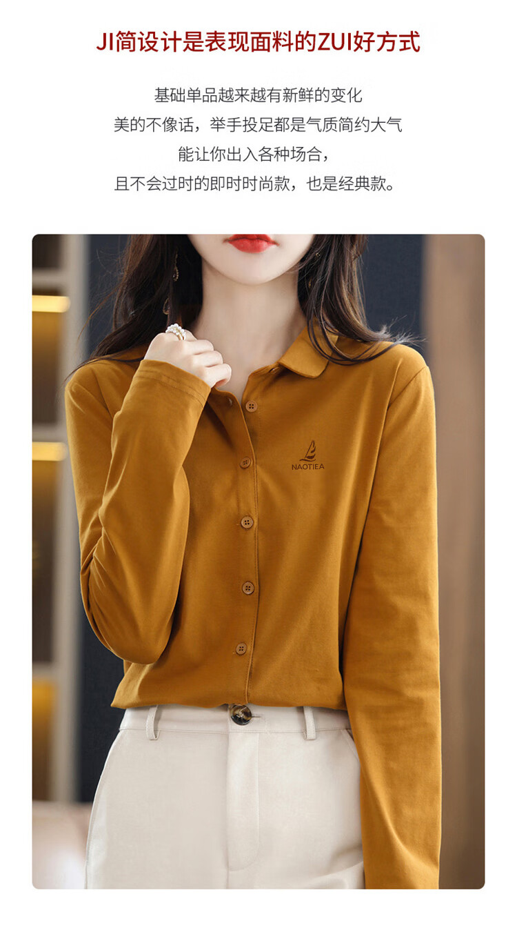 NAOTIEA Italian Sailboat Lapel Long Sleeve POLO Cardigan Women's 2025 Autumn and Winter New Brand Bottoming Top White L (Recommended 100-115 Jin Jin equals 0.5 kg)