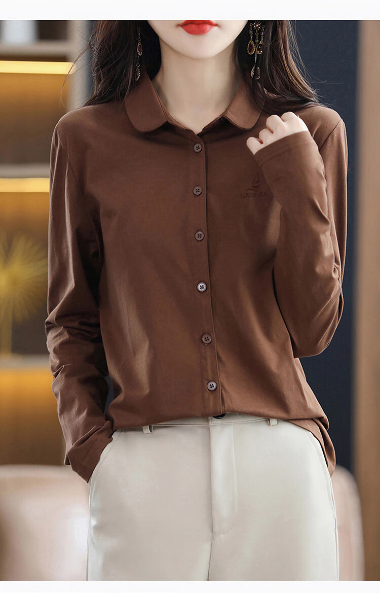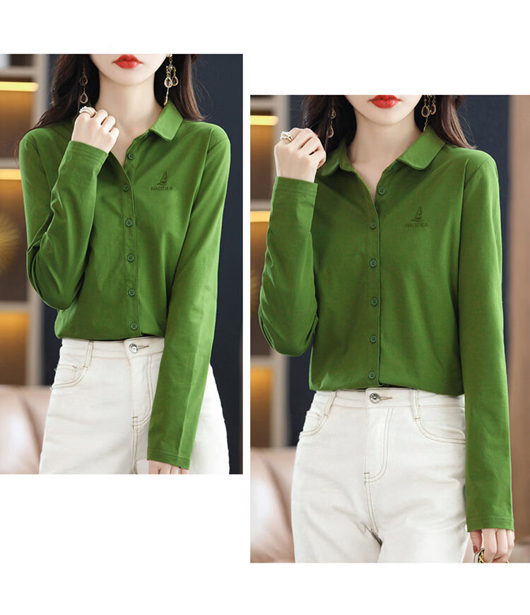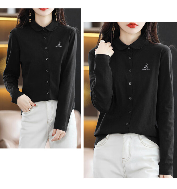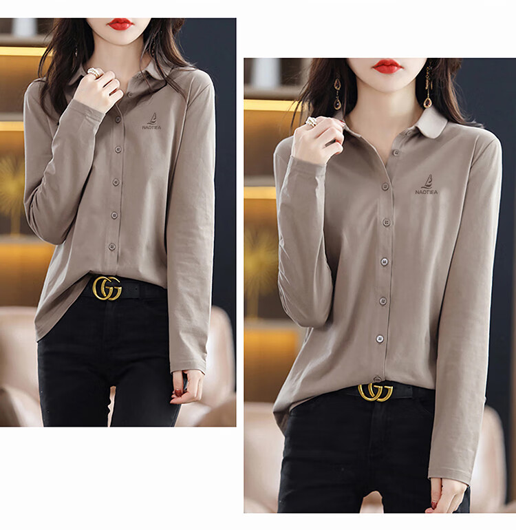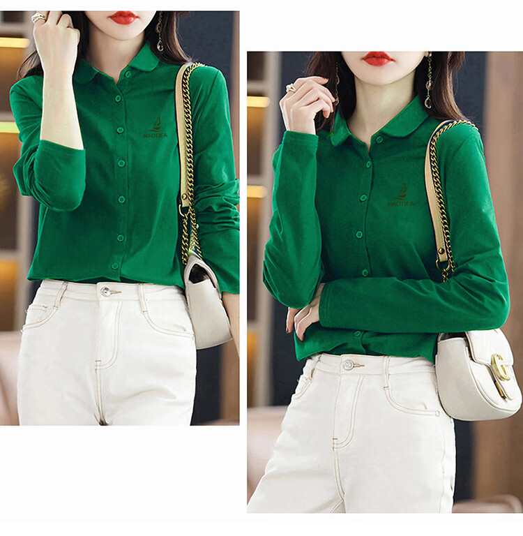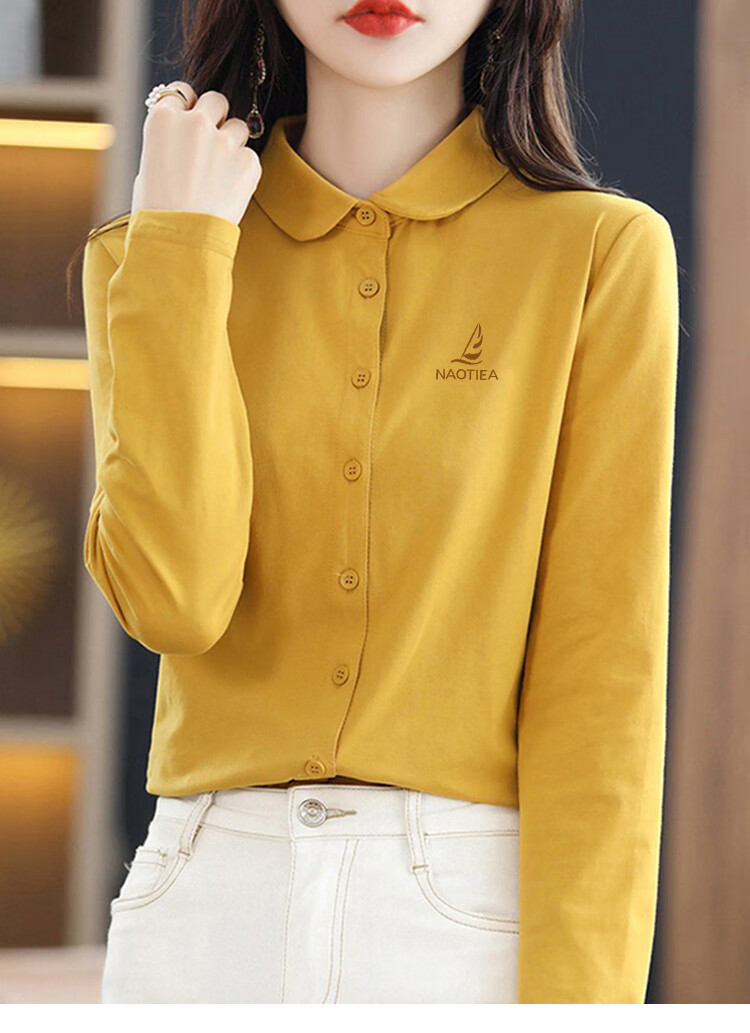 NAOTIEA Italian Sailboat Lapel Long Sleeve POLO Cardigan Women's 2025 Autumn and Winter New Brand Bottoming Top White L (Recommended 100-115 Jin Jin equals 0.5 kg)