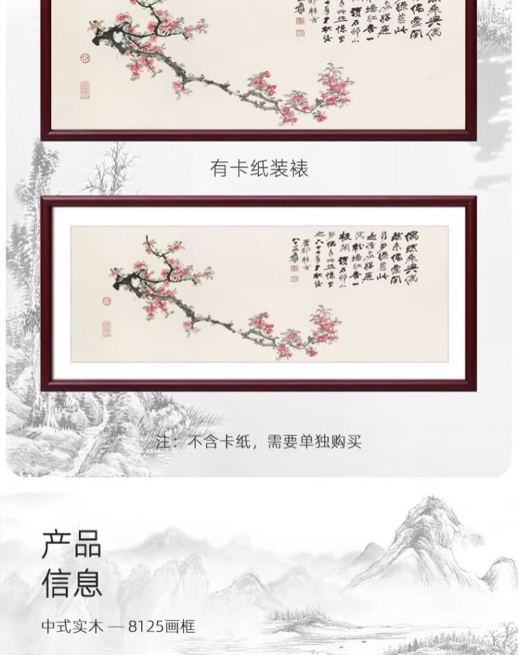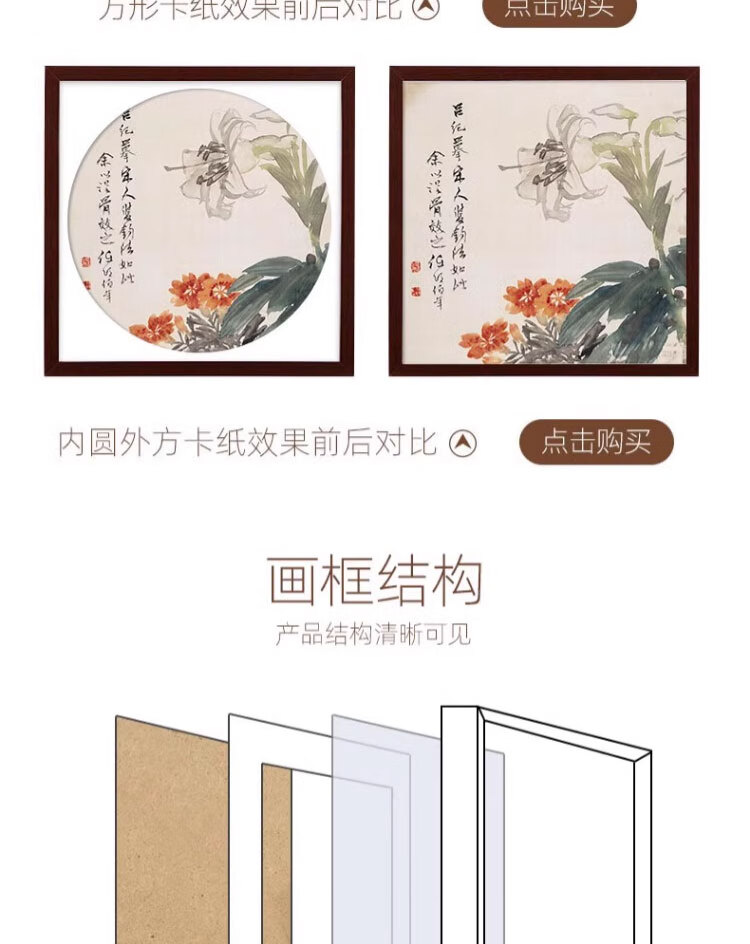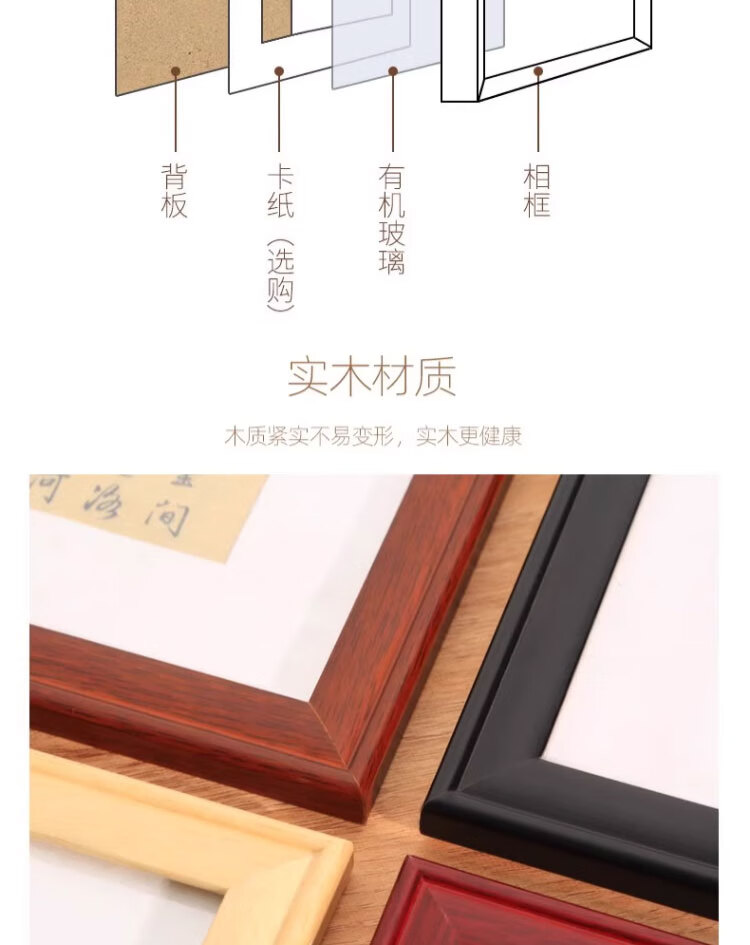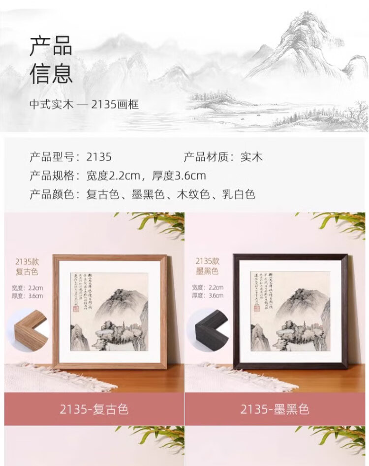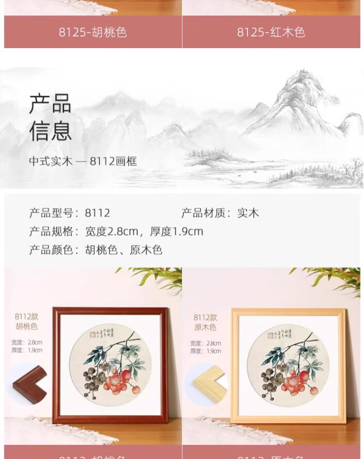 Weijia frame industry calligraphy and painting frame mounting Chinese solid wood large picture frame empty frame wall hanging 4k8 traditional Chinese painting calligraphy paper cutting self-assembled customization classic walnut color supports customization can be placed 50*50cm works-wall hanging