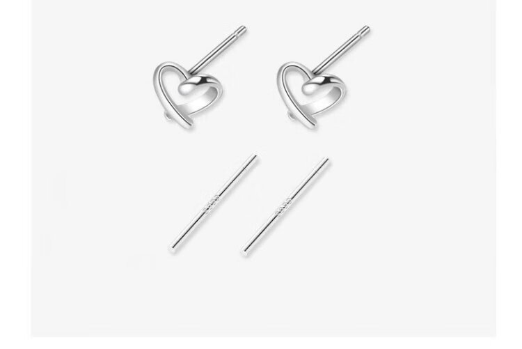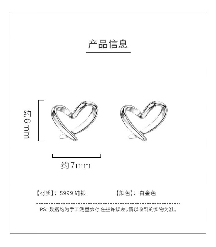 Think more about the remaining silver earrings, sterling silver 999 pure silver earrings, earrings, silver jewelry, light luxury, high-end sense, pierced ears, new temperament ear sticks, heart-shaped sterling silver earrings