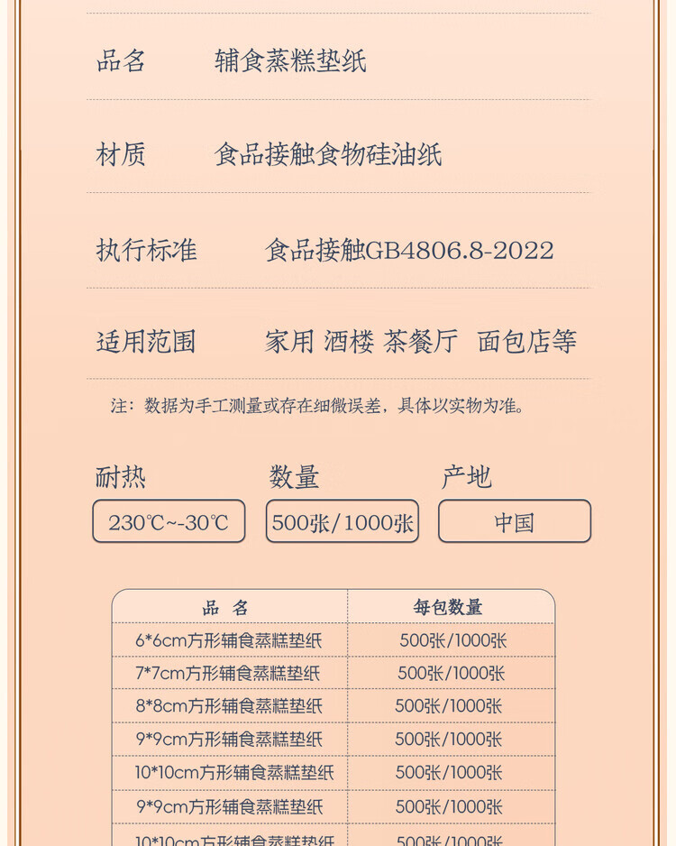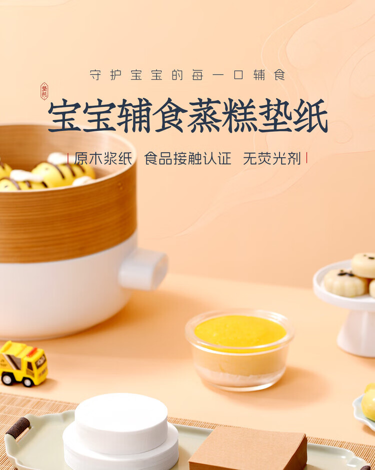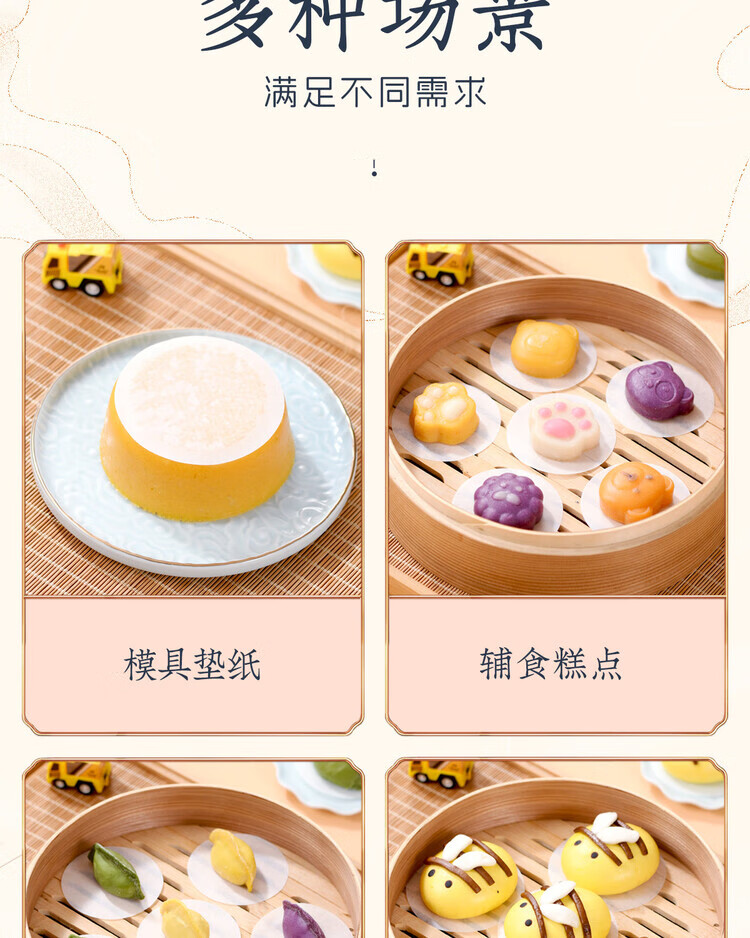 Lou Shang baby food supplement steamed paper steamed cake oil paper baby food grade silicone oil paper cake steamed bun bun pad paper steamer paper 10cm round 500 sheets