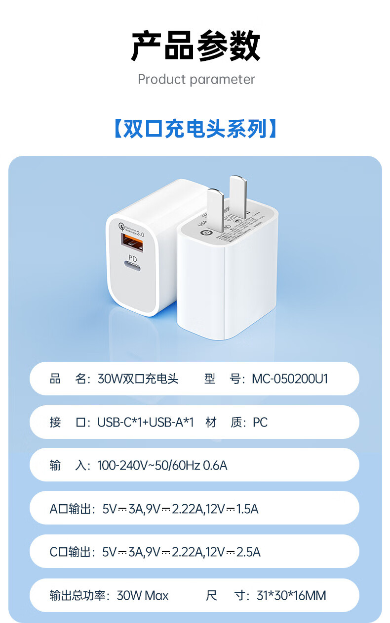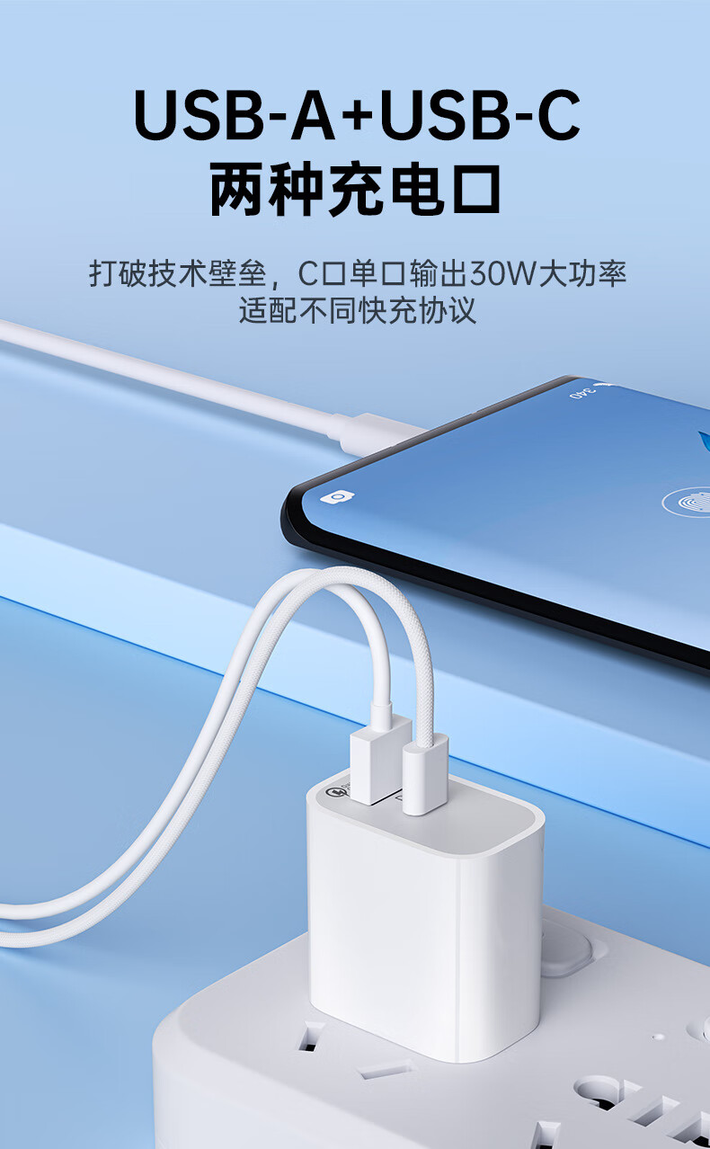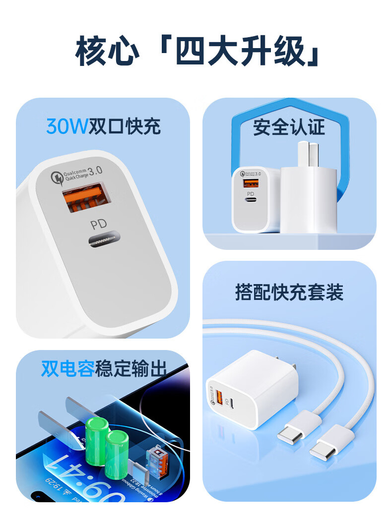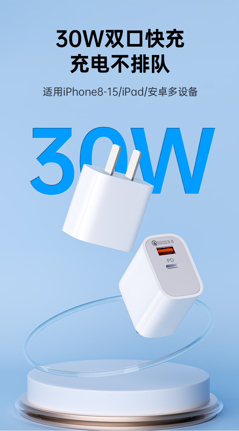 PD30W dual-port fast charging charging head is suitable for Apple 16/15/14/13/12 Huawei oppo fast charging Android mobile phone charger set 30W dual-port single head is suitable for Apple/Huawei/oppo full series