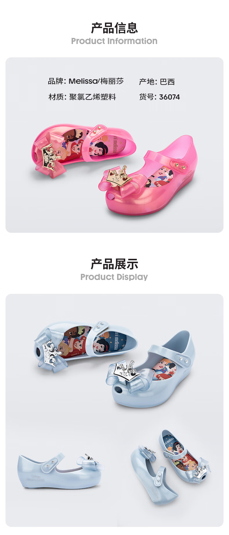 Melissa Melissa 25 new children's Disney Princess ballet shoes bow fish mouth shoes 36074 pearlescent pink size 25 10.5