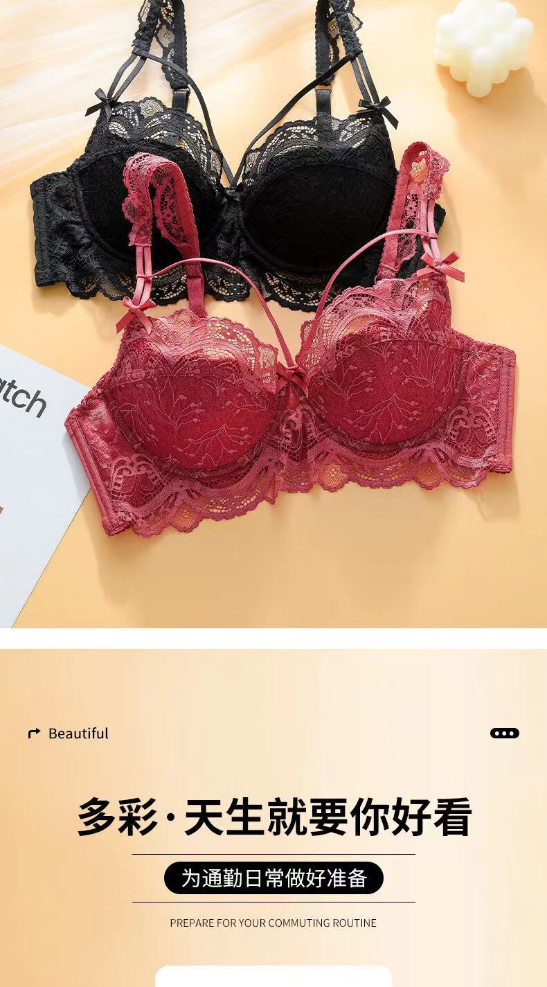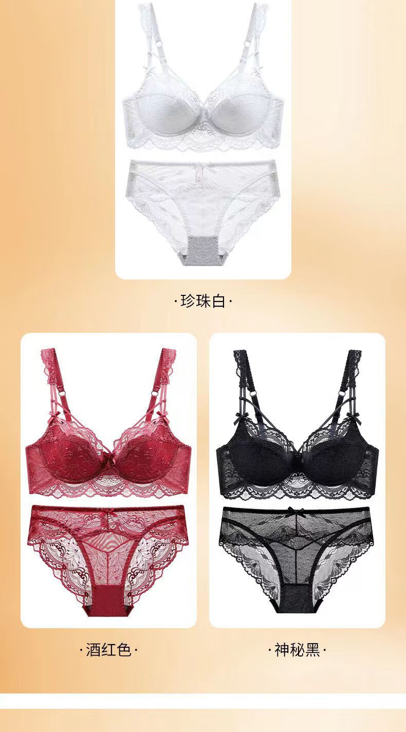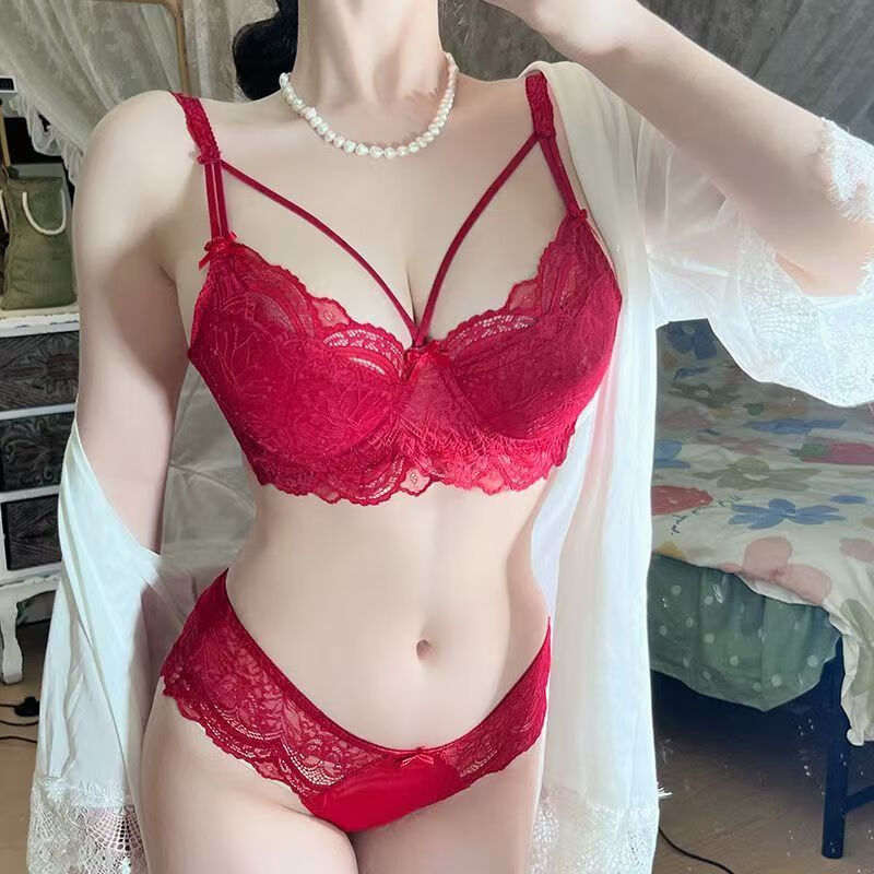 Langsha Sexy Lace Beautiful Back Pure Desire Underwear Women's Suit Push Up Breasts Anti-Sagging Date Sexy Thin Bra Burgundy Suit 75A 34/B